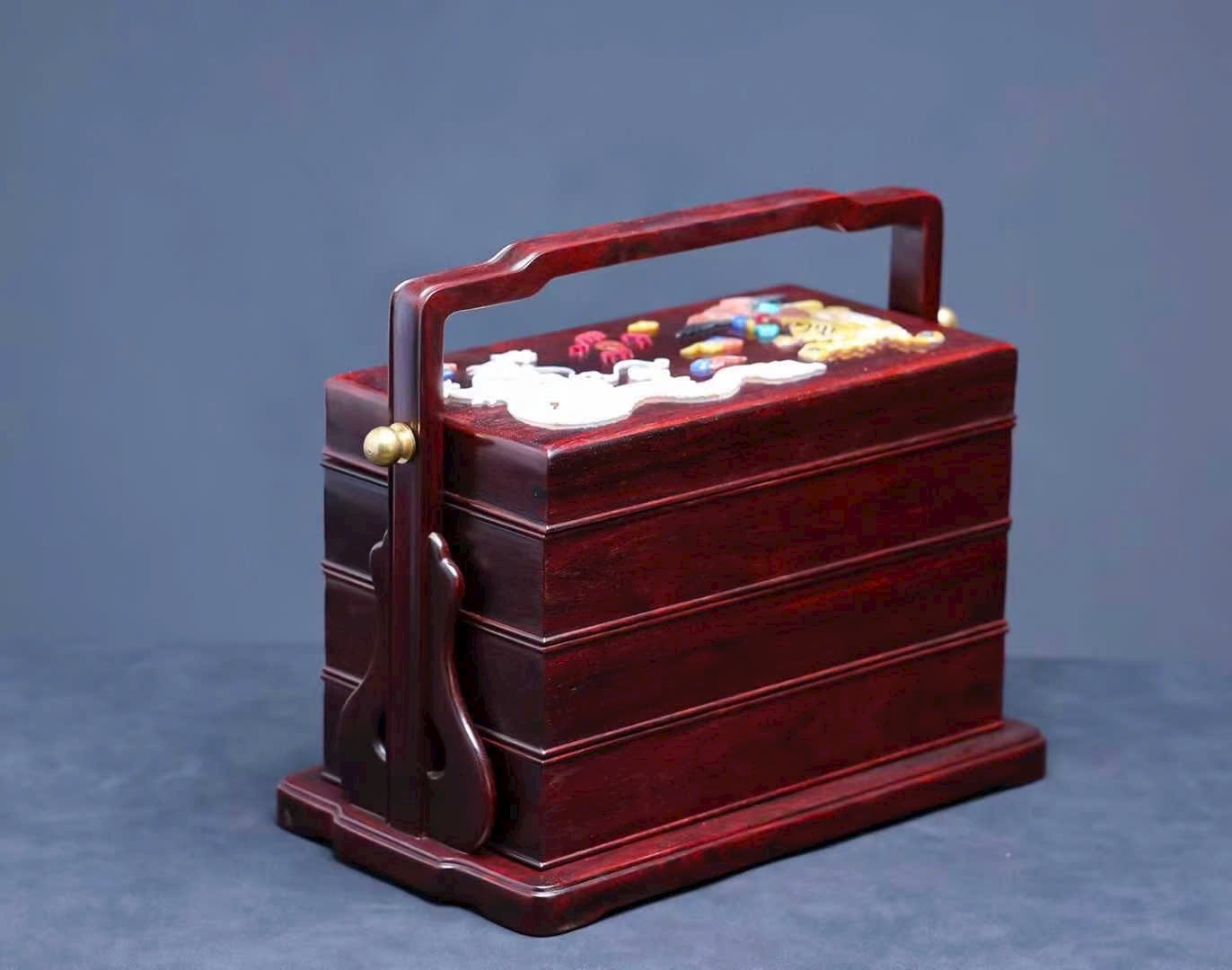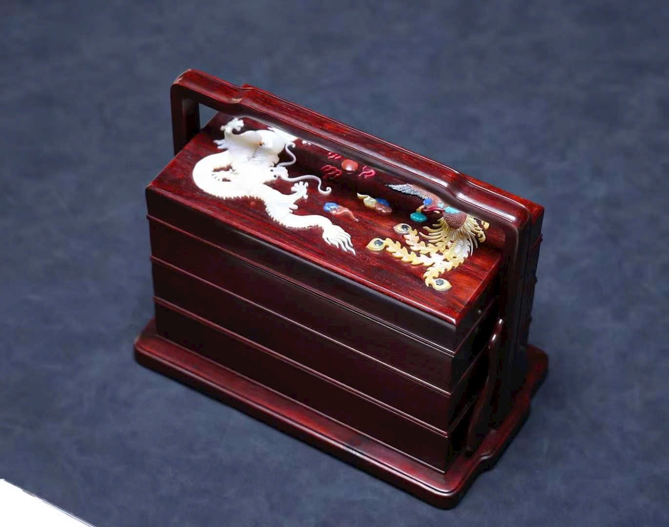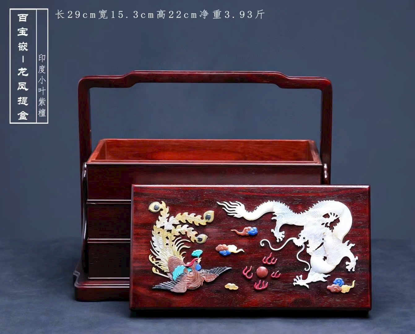 Gỗ tử đàn Ấn Độ lá nhỏ 《Hộp xách Long Phụng Trình Tường》