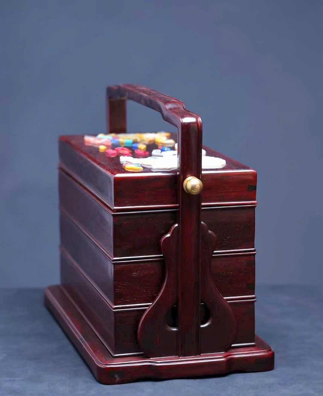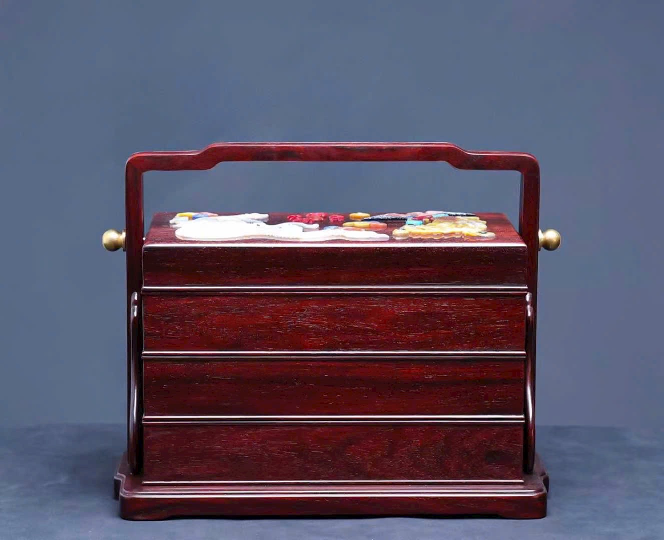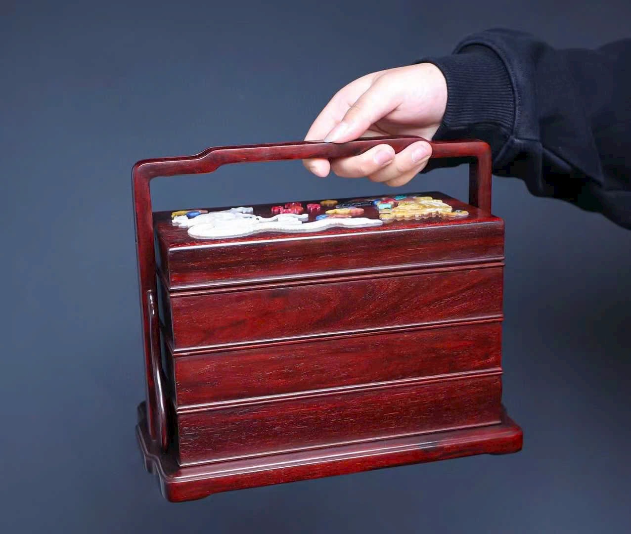 Gỗ tử đàn Ấn Độ lá nhỏ 《Hộp xách Long Phụng Trình Tường》
