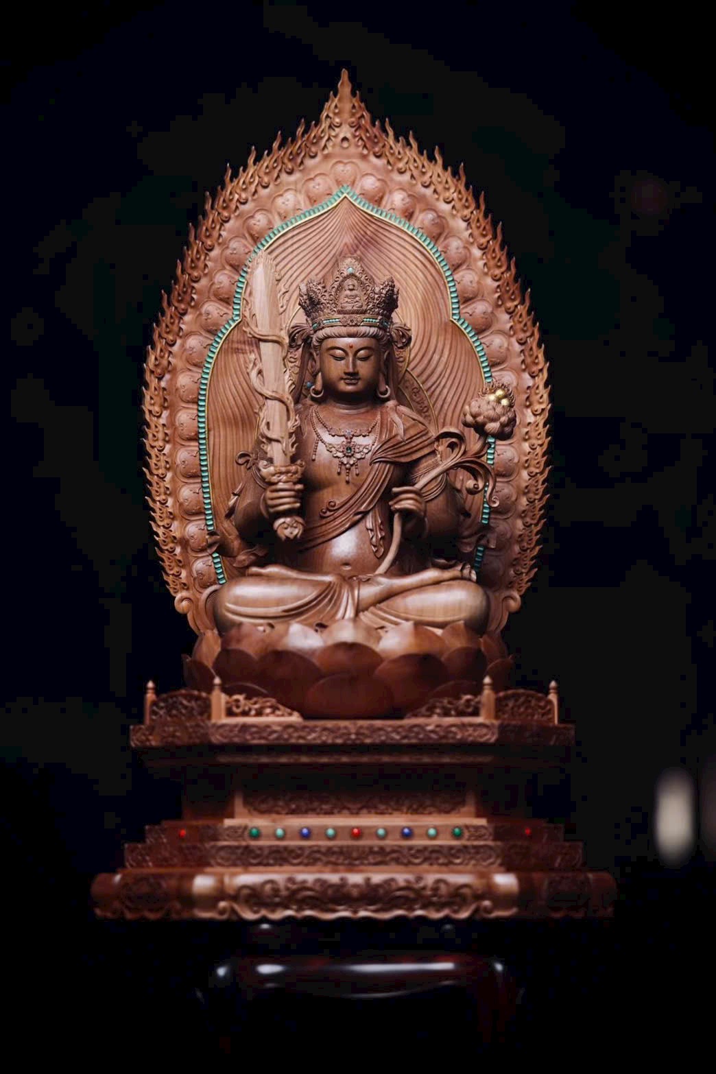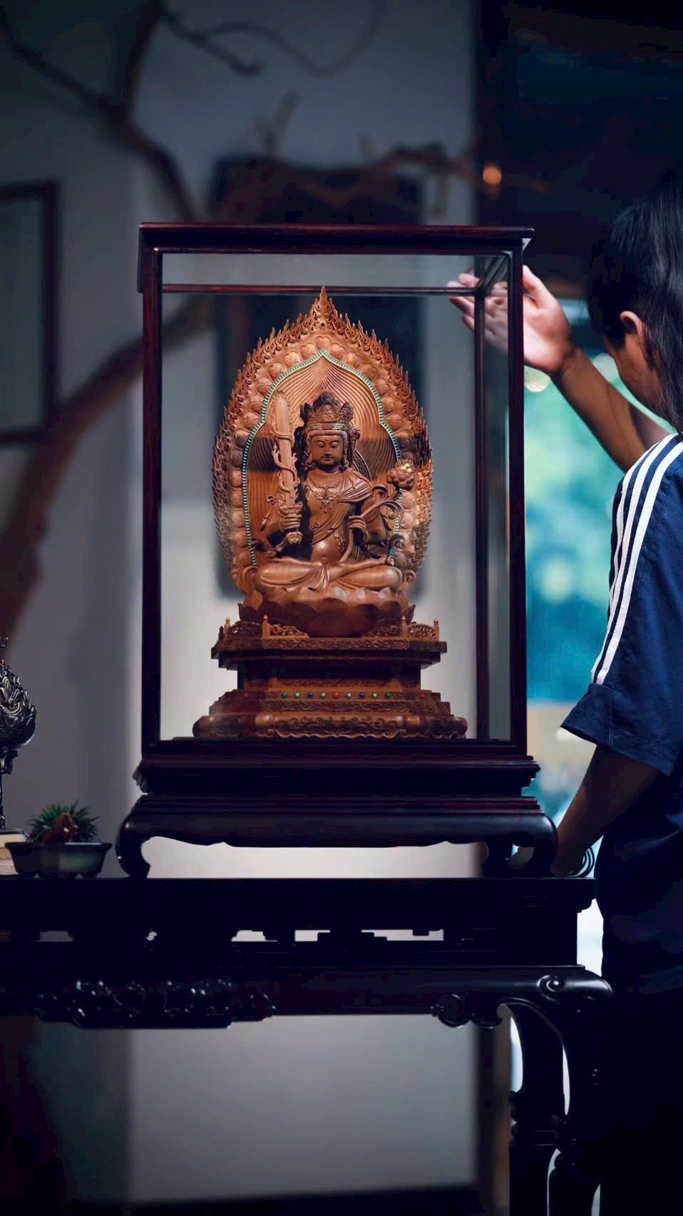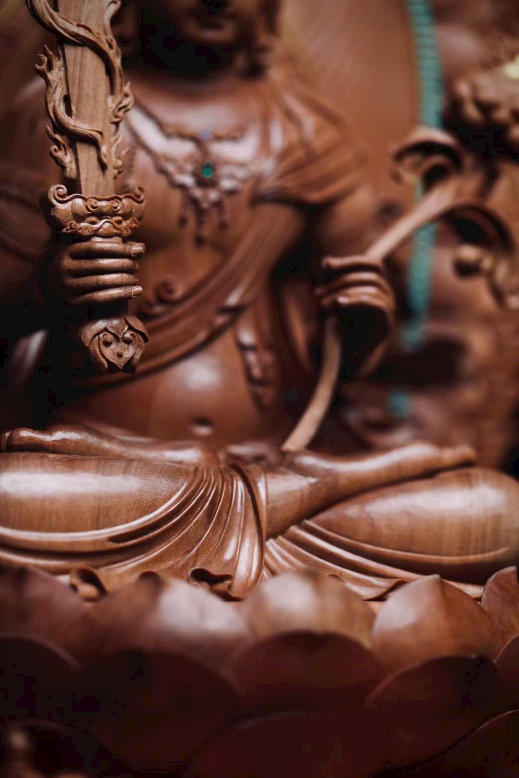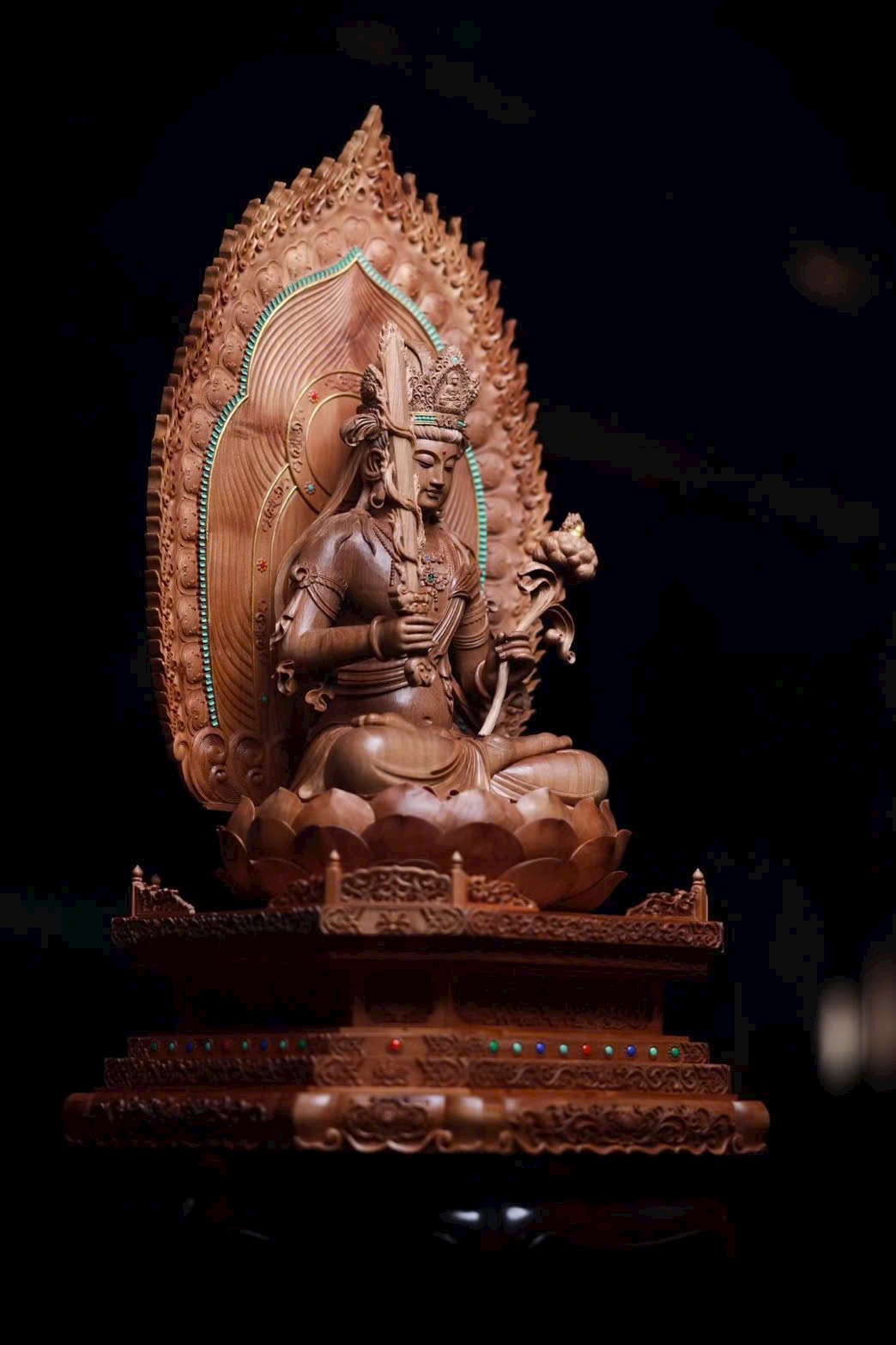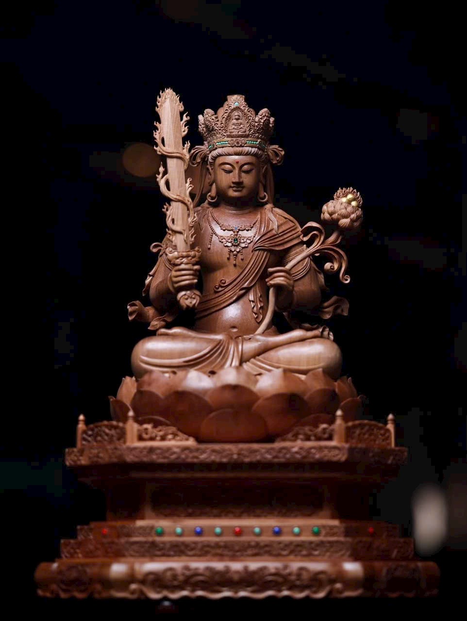 【Hư Không Tạng Bồ Tát | lão sơn Đàn Hương Ấn Độ đặc vân đen – tác phẩm khắc dao trần của đại sư