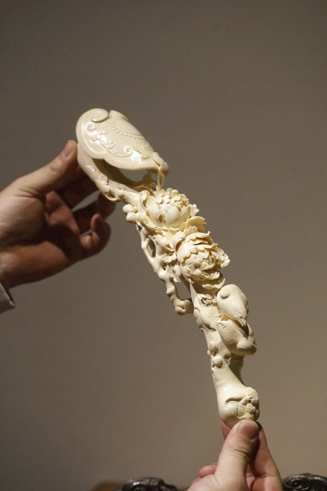 • Đế: Đế gỗ trắc đen khắc mây thủ công, tổng thể tinh xảo, hài hòa.