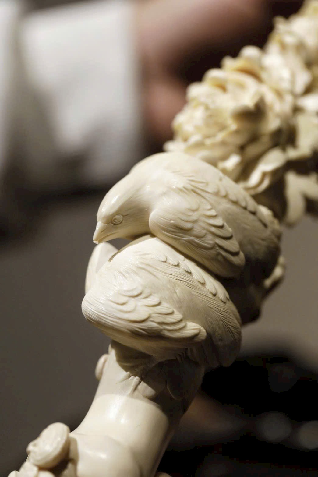 • Thiết kế: Hình dáng như ý mềm mại, hoa mẫu đơn chạm nổi sâu, ba chiều, đôi chim nhạn sinh động như thật.