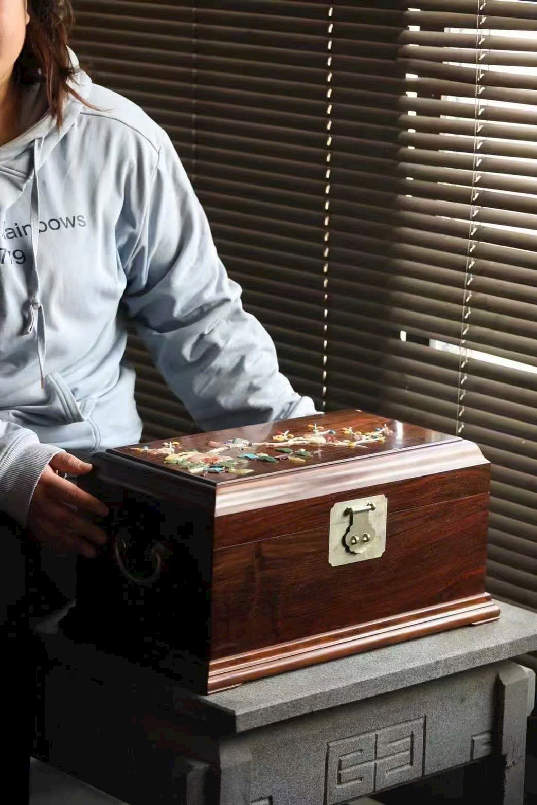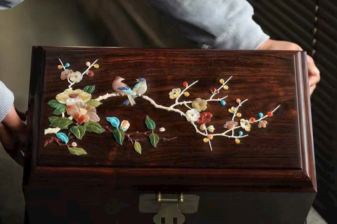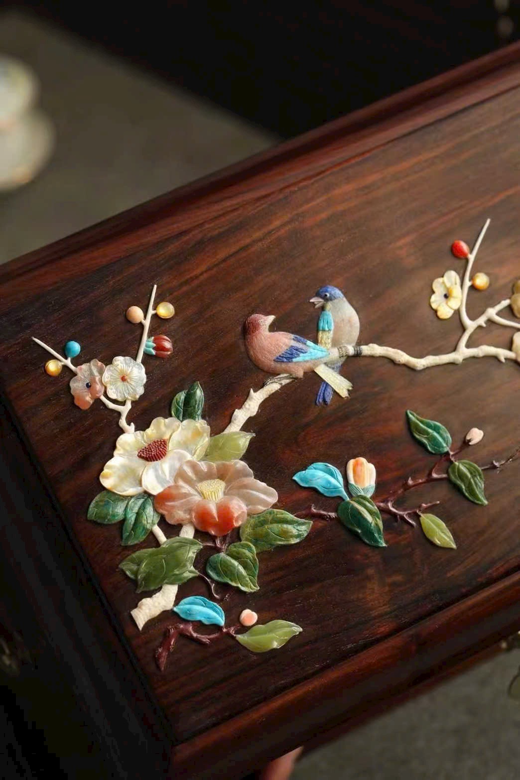Khảm bách bảo tinh xảo, đường nét chế tác tỉ mỉ. Kết cấu mộng – tenon truyền thống chắc chắn, phong vị cổ điển tao nhã, vừa đẹp mắt vừa tiện dụng cho việc cất giữ trang sức và đồ quý.