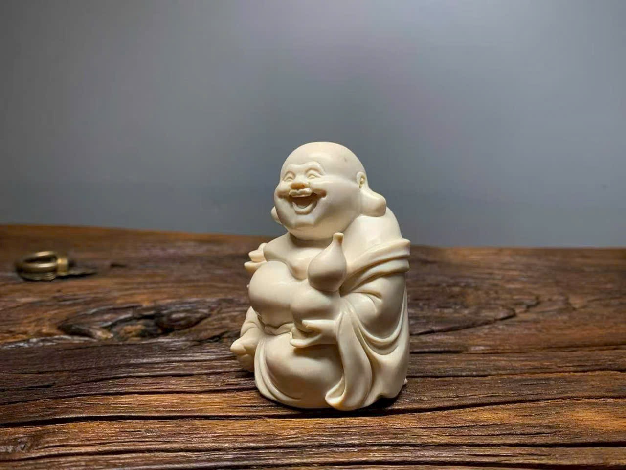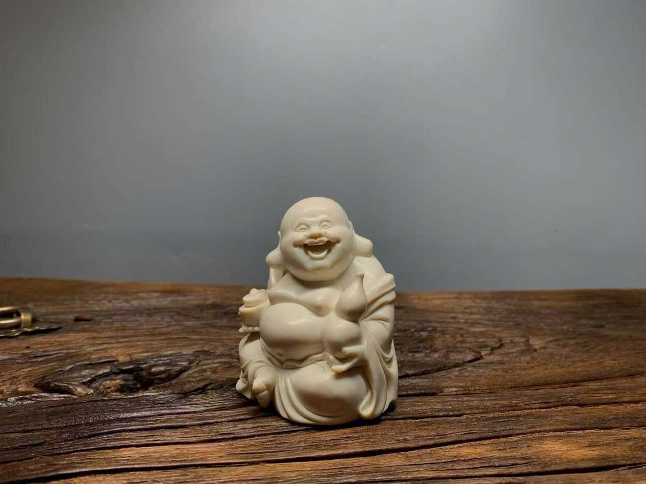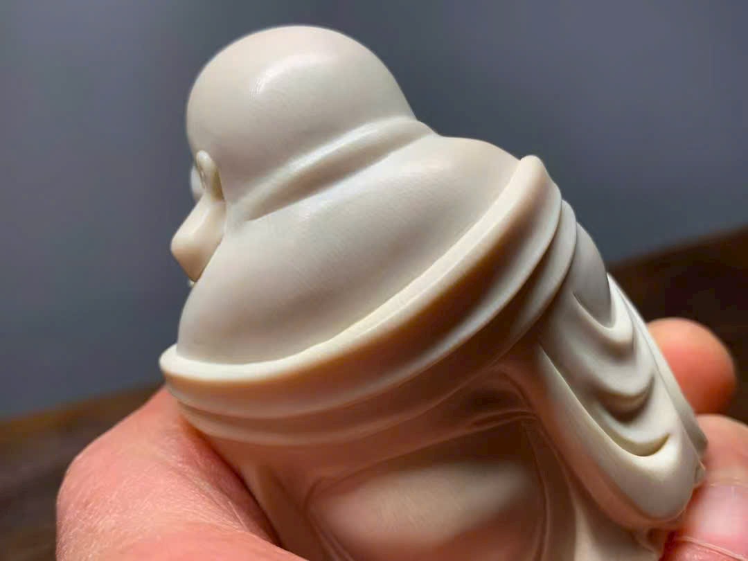 Tác phẩm khắc họa hình tượng Phật Di Lặc với nụ cười hoan hỷ, biểu trưng cho niềm vui, phúc lộc và an khang.