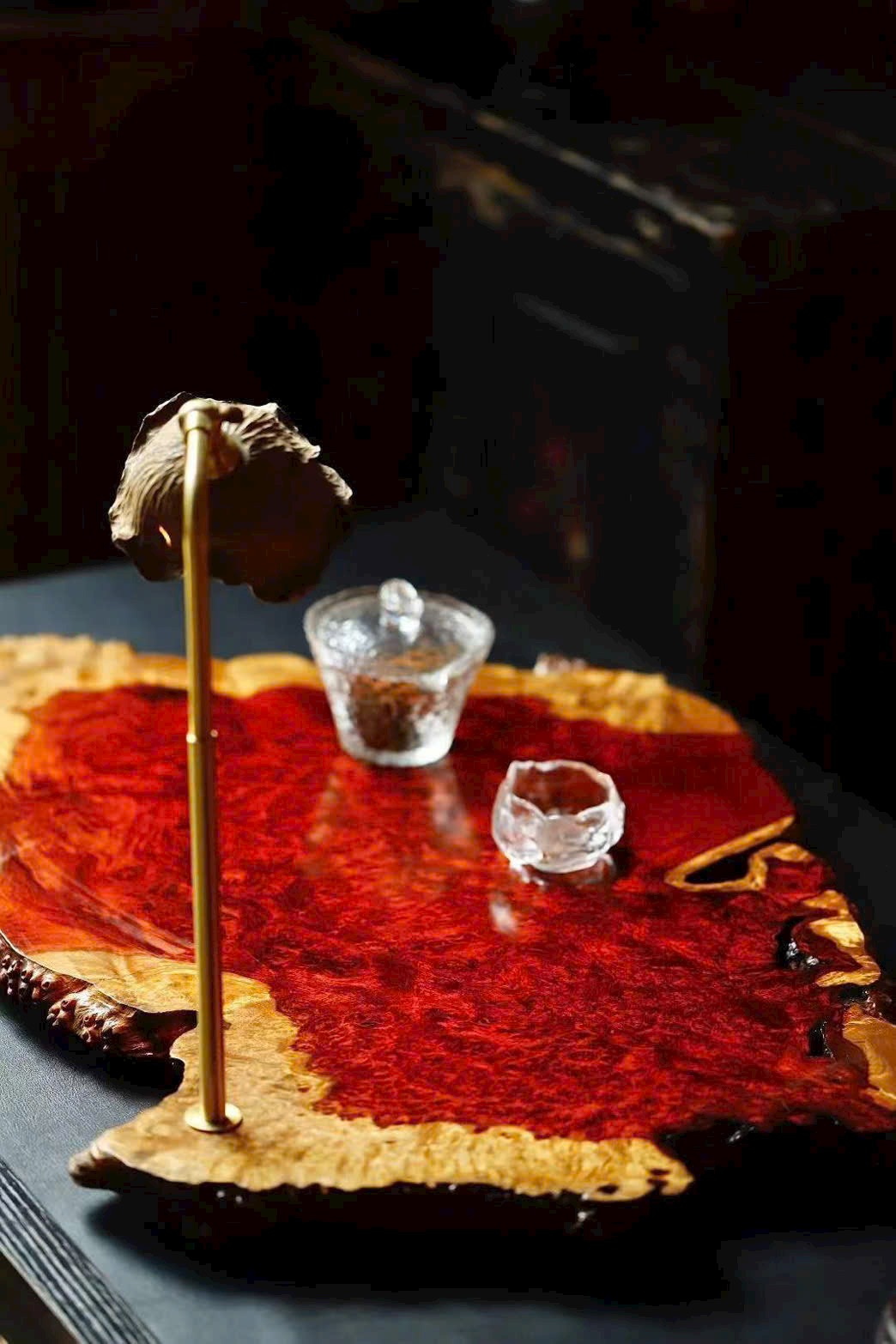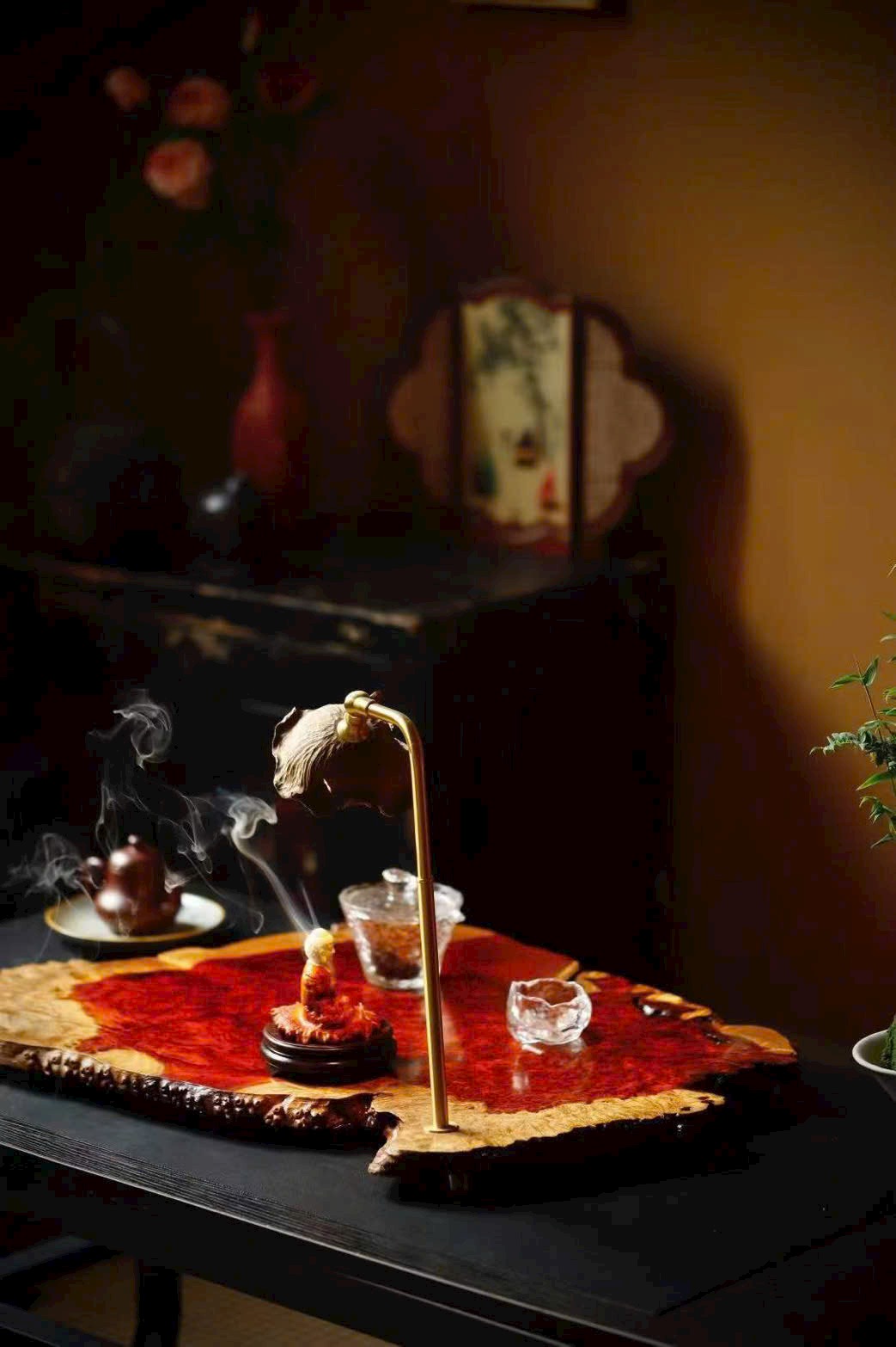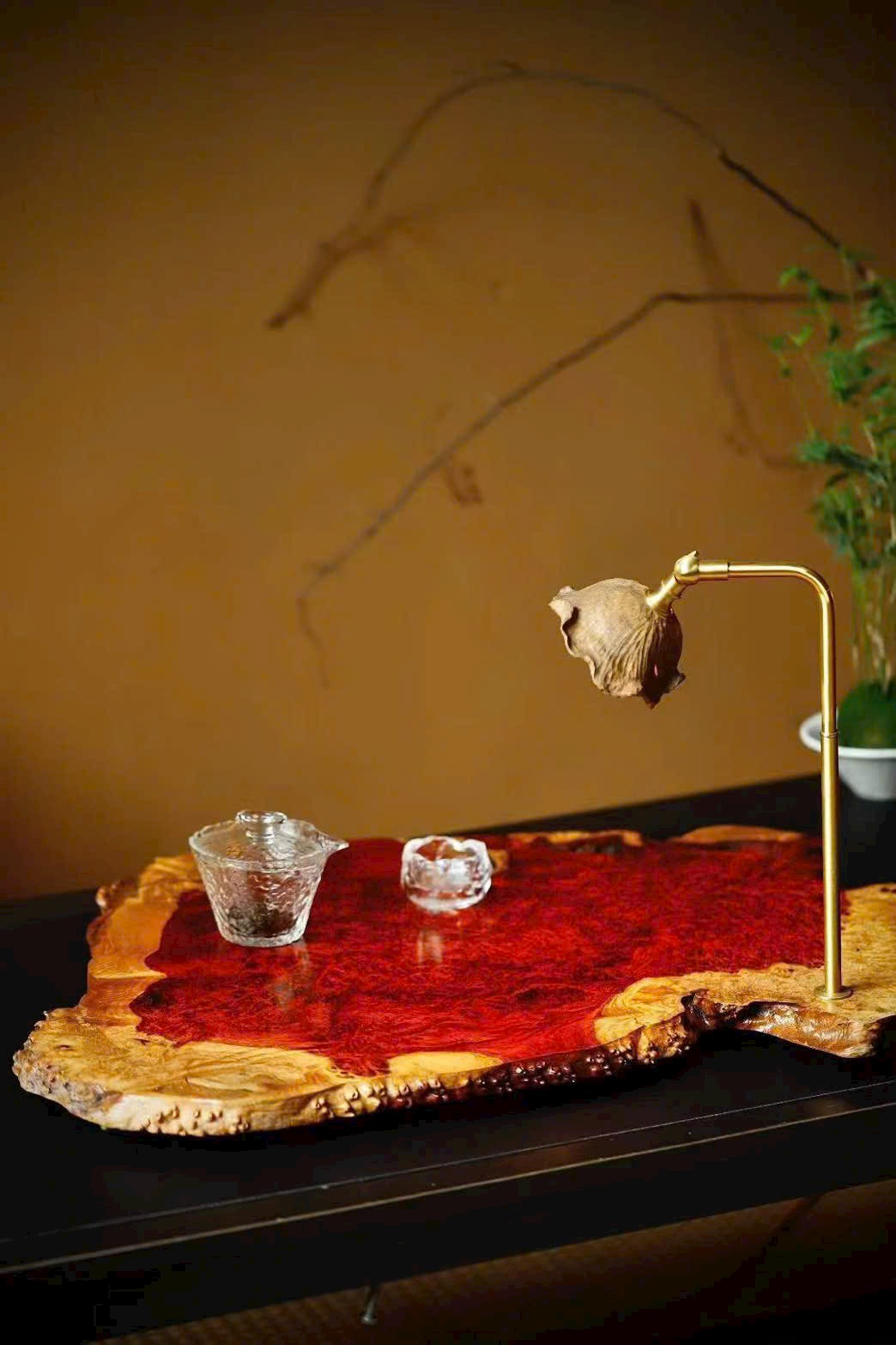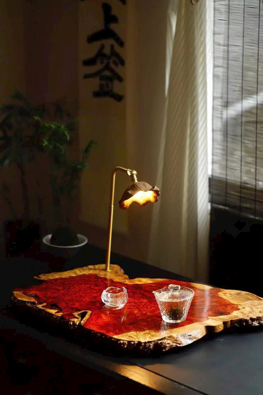 Khay trà thu nạp sơn thủy, đèn bàn sưởi ấm thời gian;