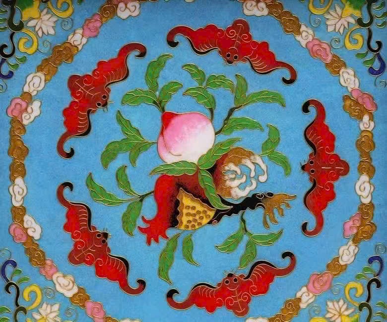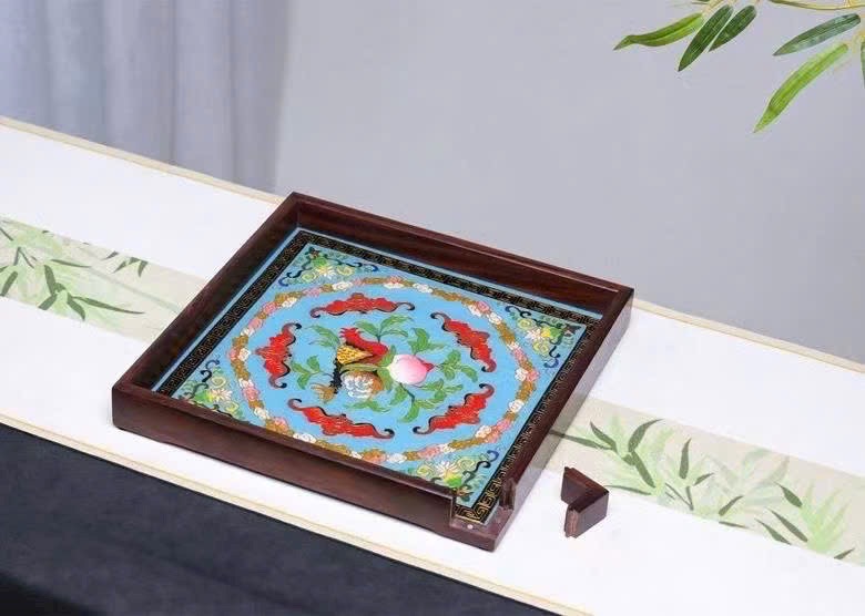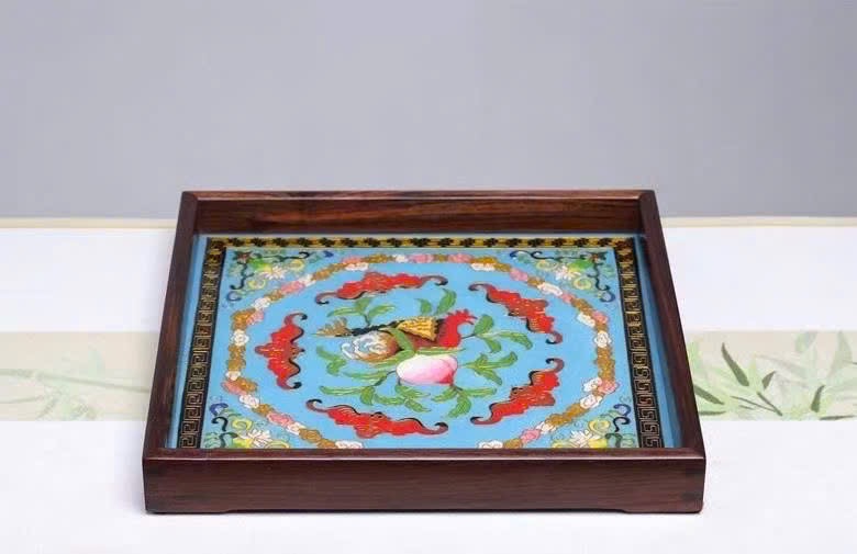 Khay pháp lam “Ngũ Phúc Bồng Thọ”