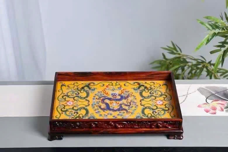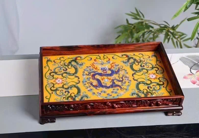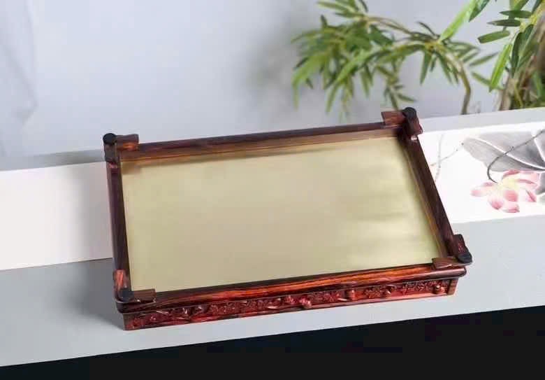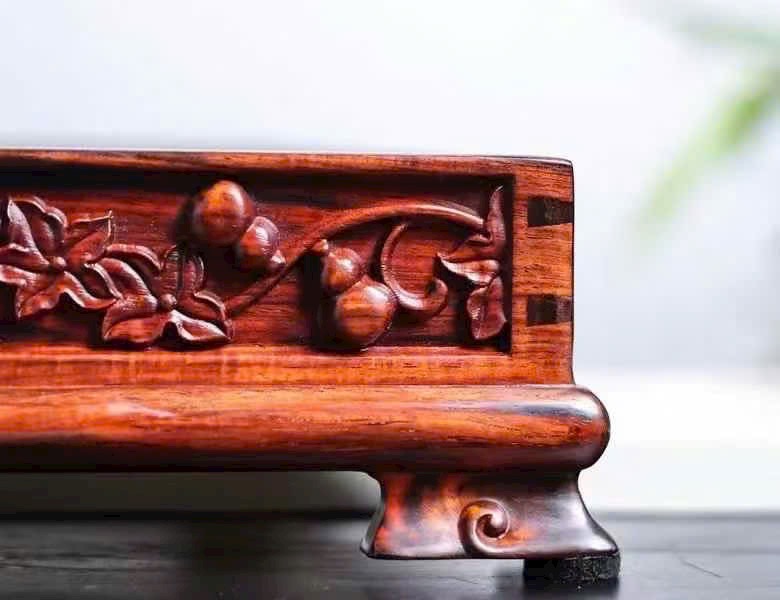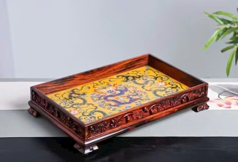 Đặc điểm: Chế tác tinh xảo từ gỗ trắc Lào bằng kỹ thuật mộng truyền thống, dáng chữ nhật, đường nét trơn tru thanh thoát. Có thể dùng làm khay thư phòng, vừa trang nhã, khí chất nho nhã, vừa có giá trị trưng bày và sử dụng.