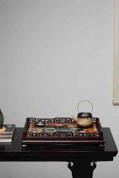 Khay Trà bằng gỗ trắc đỏ + khảm men Cảnh Thái Lam