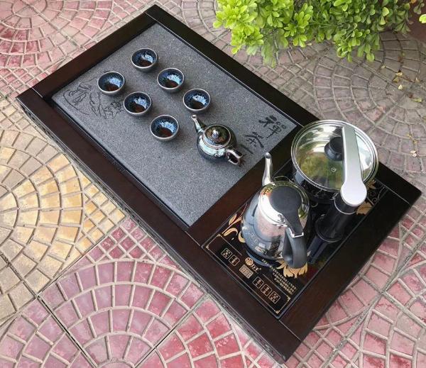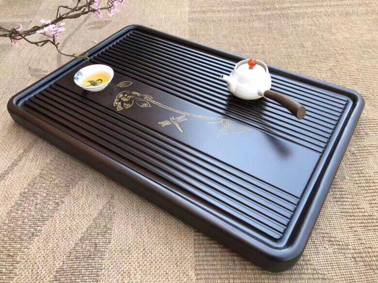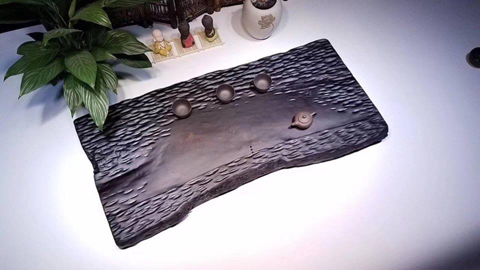 Khay trà gỗ hắc đàn nguyên tấm, vẽ thủ công