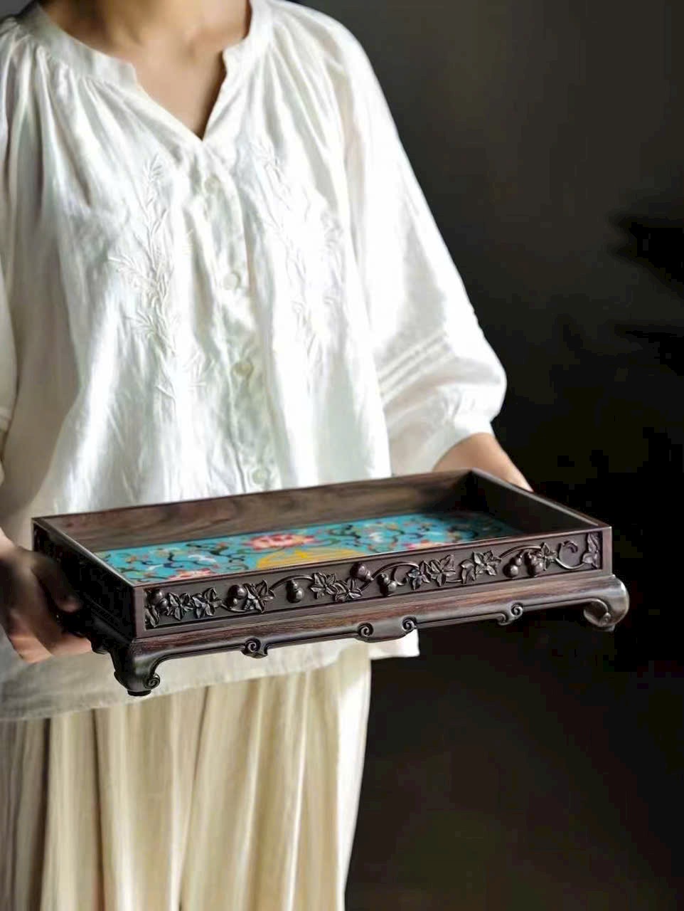 Có thể dùng làm khay văn phòng phẩm trong thư phòng, vừa trang nhã vừa toát lên khí chất nho nhã, kết hợp hài hòa giữa giá trị thẩm mỹ và công năng sử dụng.