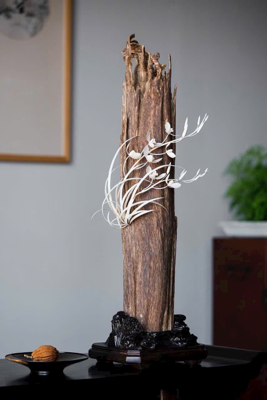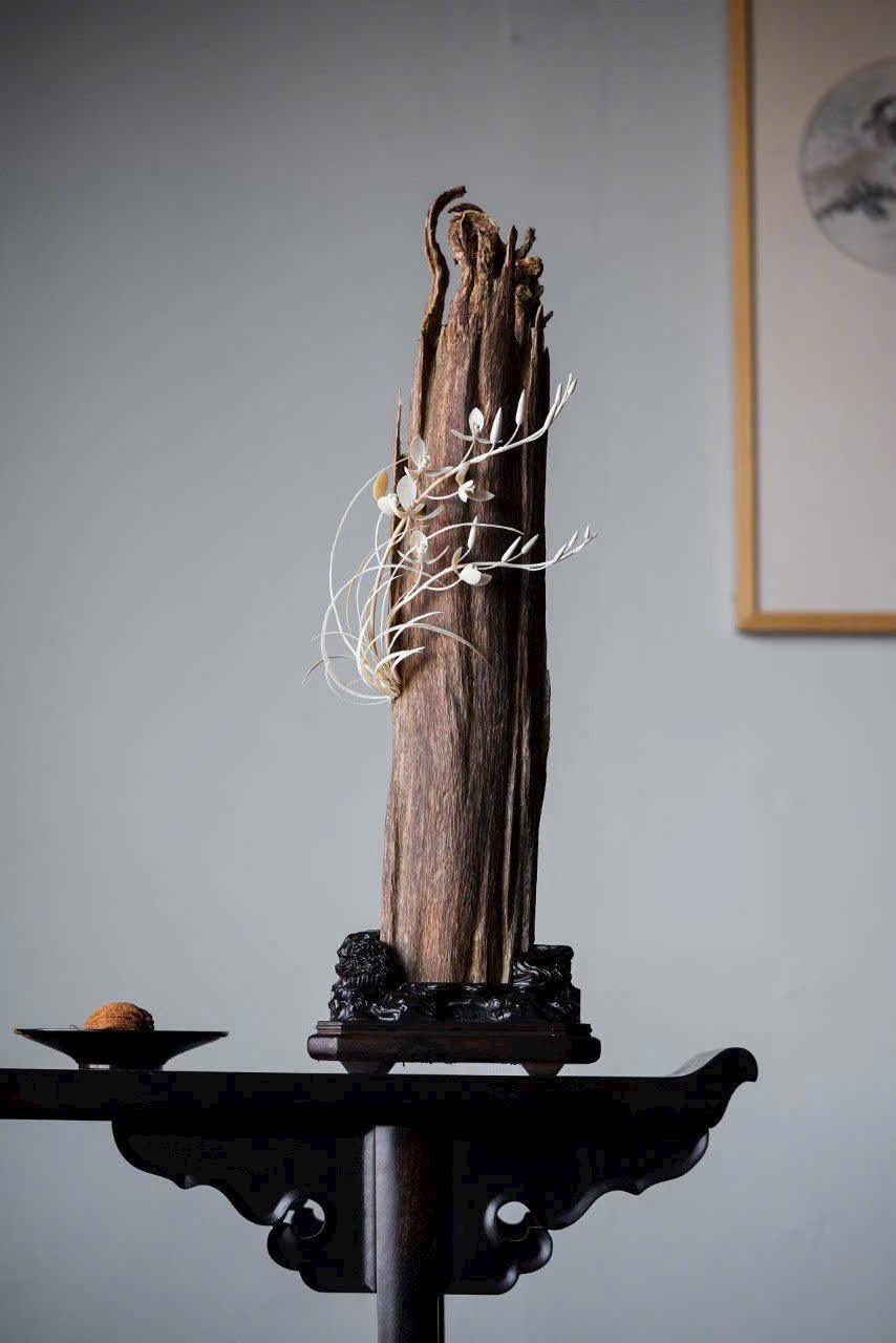 Hương trầm quyện cùng vẻ thanh khiết của lan, tạo nên một ý cảnh tĩnh lặng thiền vị như trong thung lũng vắng, nơi hương và sắc hòa làm một, an nhiên tự tại.