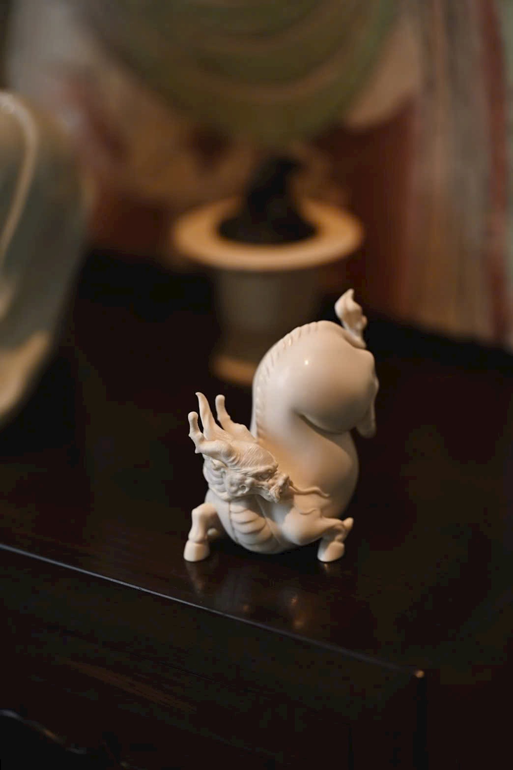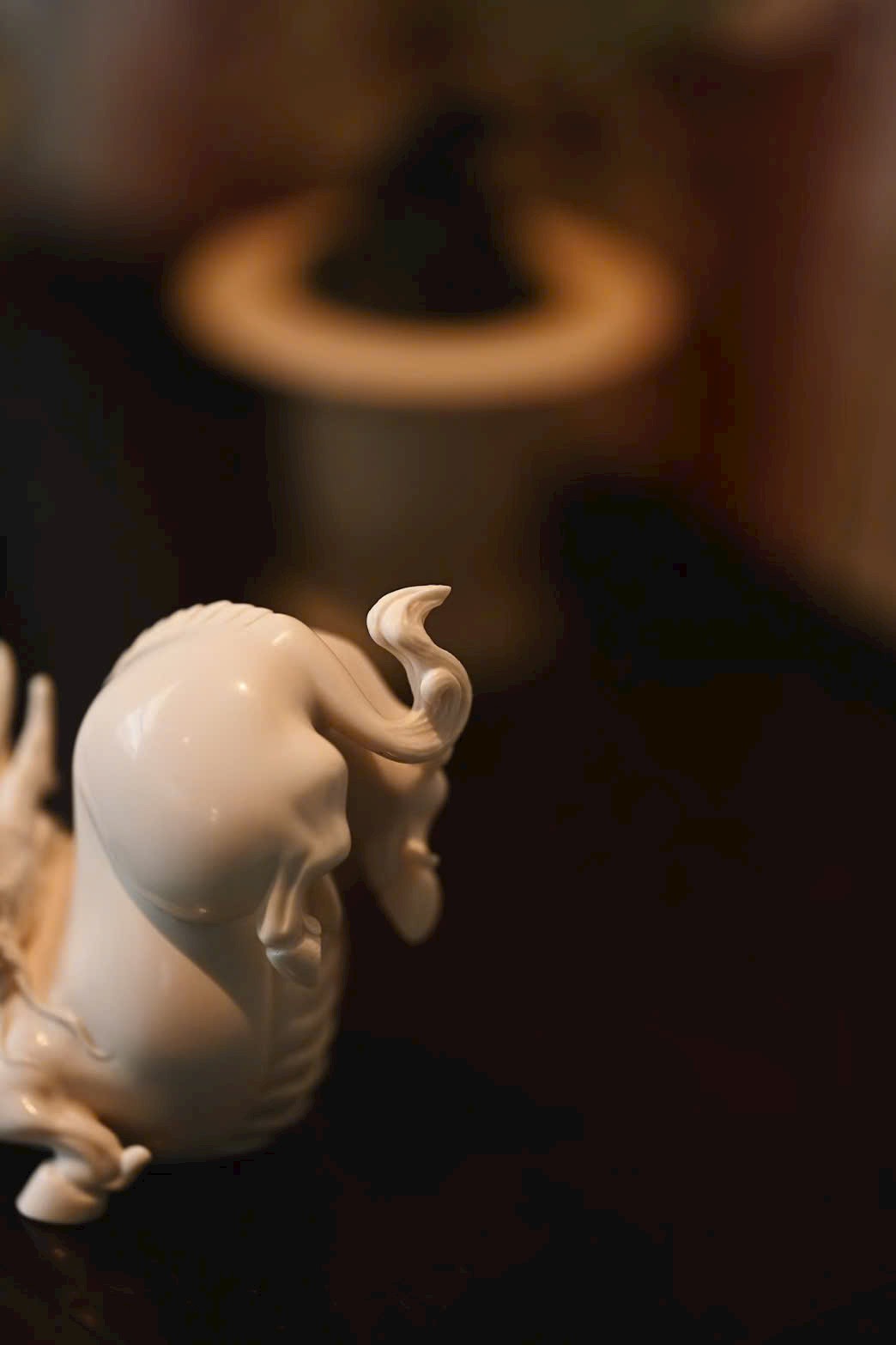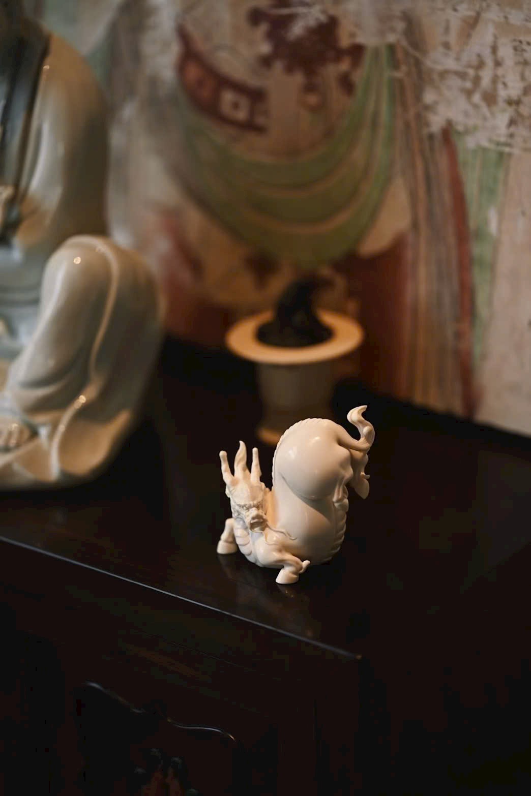 Kì lân đôi mắt sáng rực, bờm cổ tung bay, khí thế uy mãnh nhưng vẫn pha chút dáng vẻ đáng yêu.