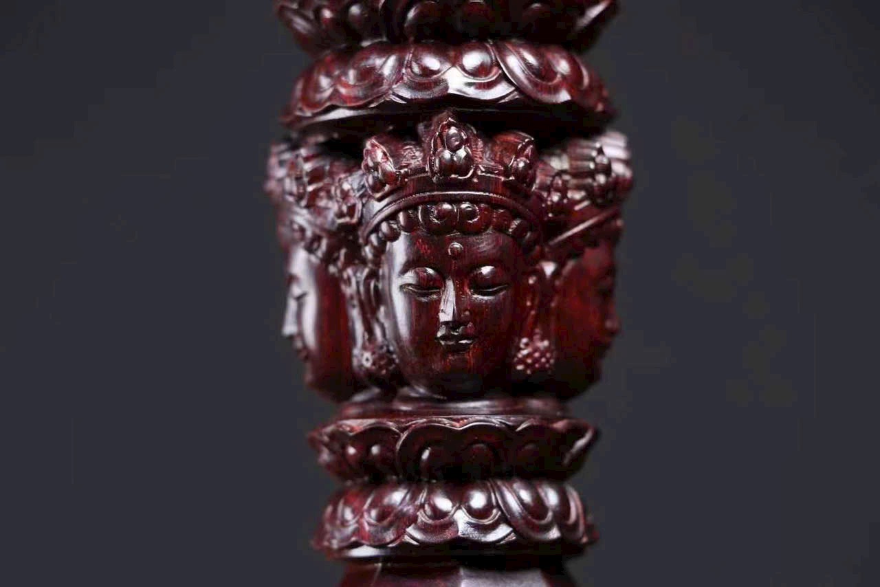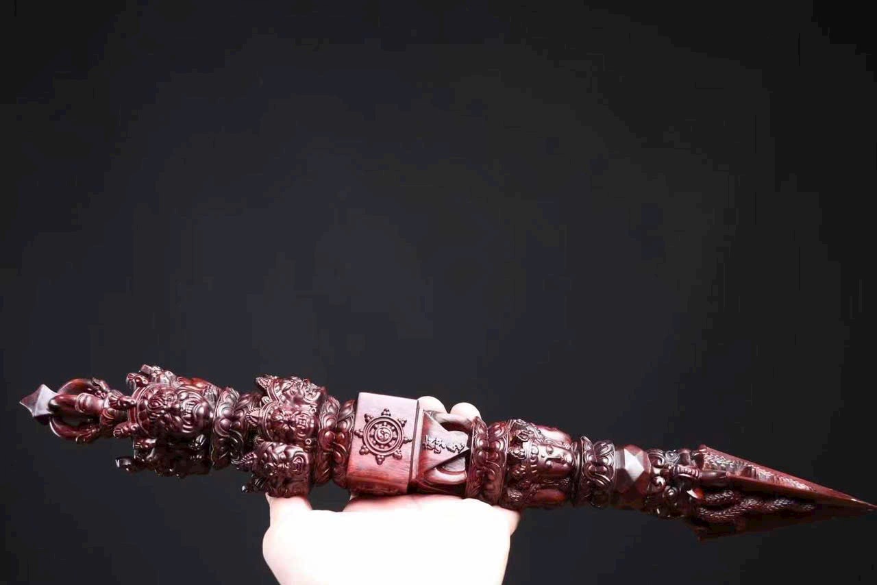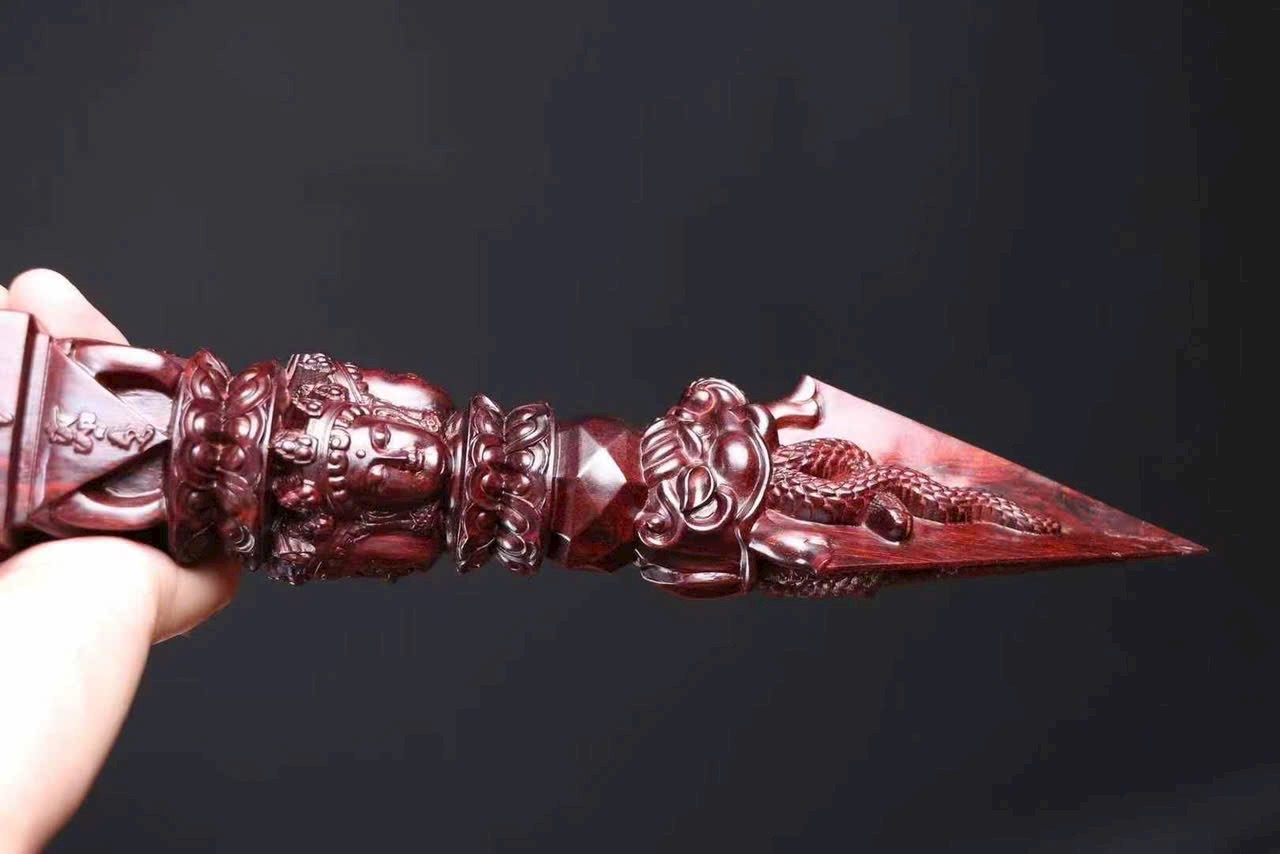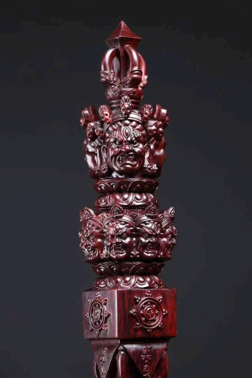 Chế tác từ gỗ tiểu diệp tử đàn Ấn Độ nguyên khối, kim cang xử mang hình thức cổ điển với tỷ lệ cân đối, từng đường nét chạm khắc sắc sảo, mạnh mẽ mà trầm tĩnh.