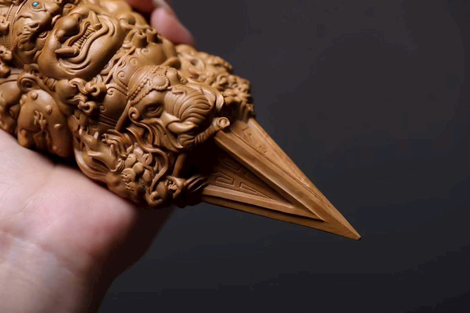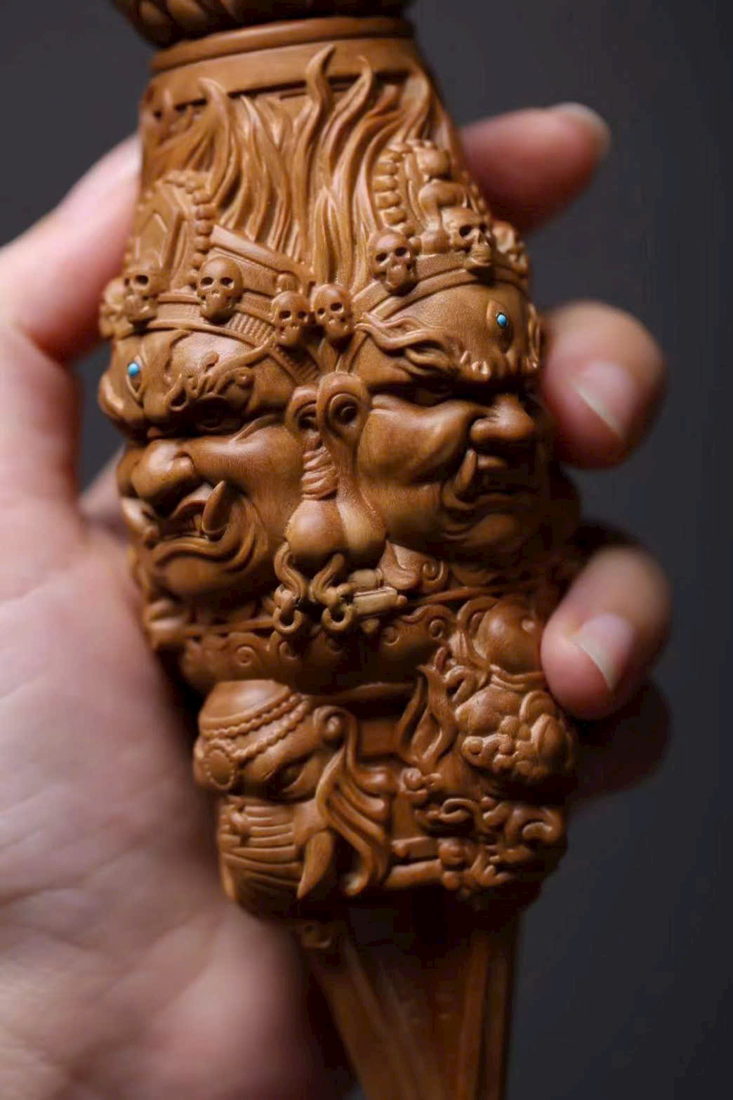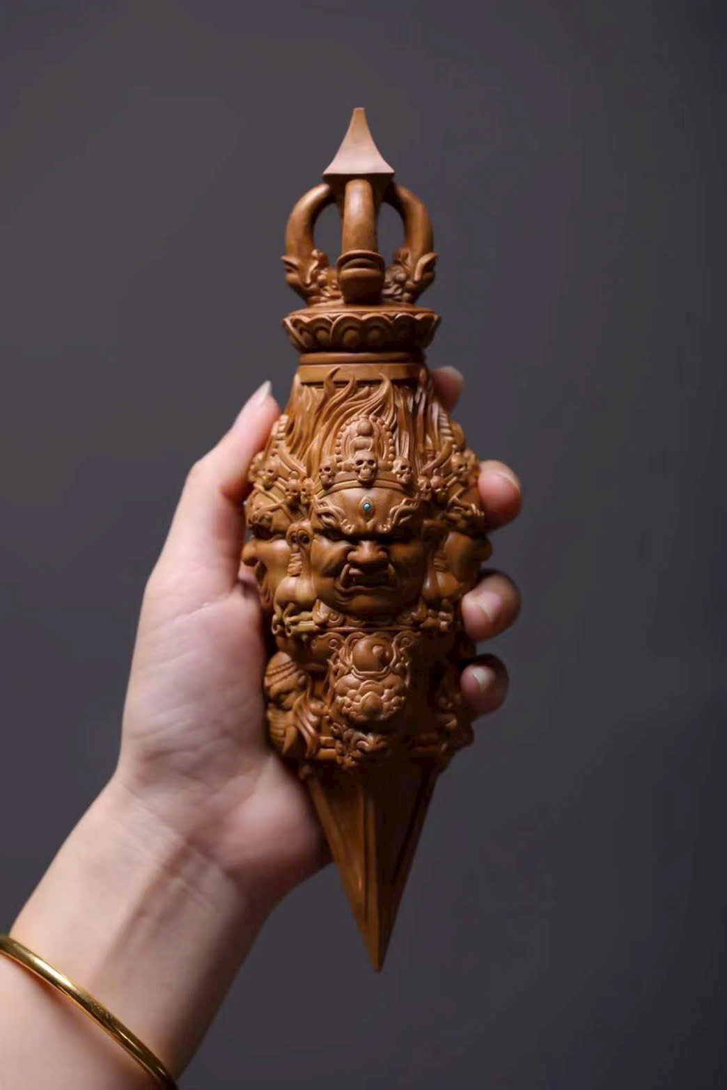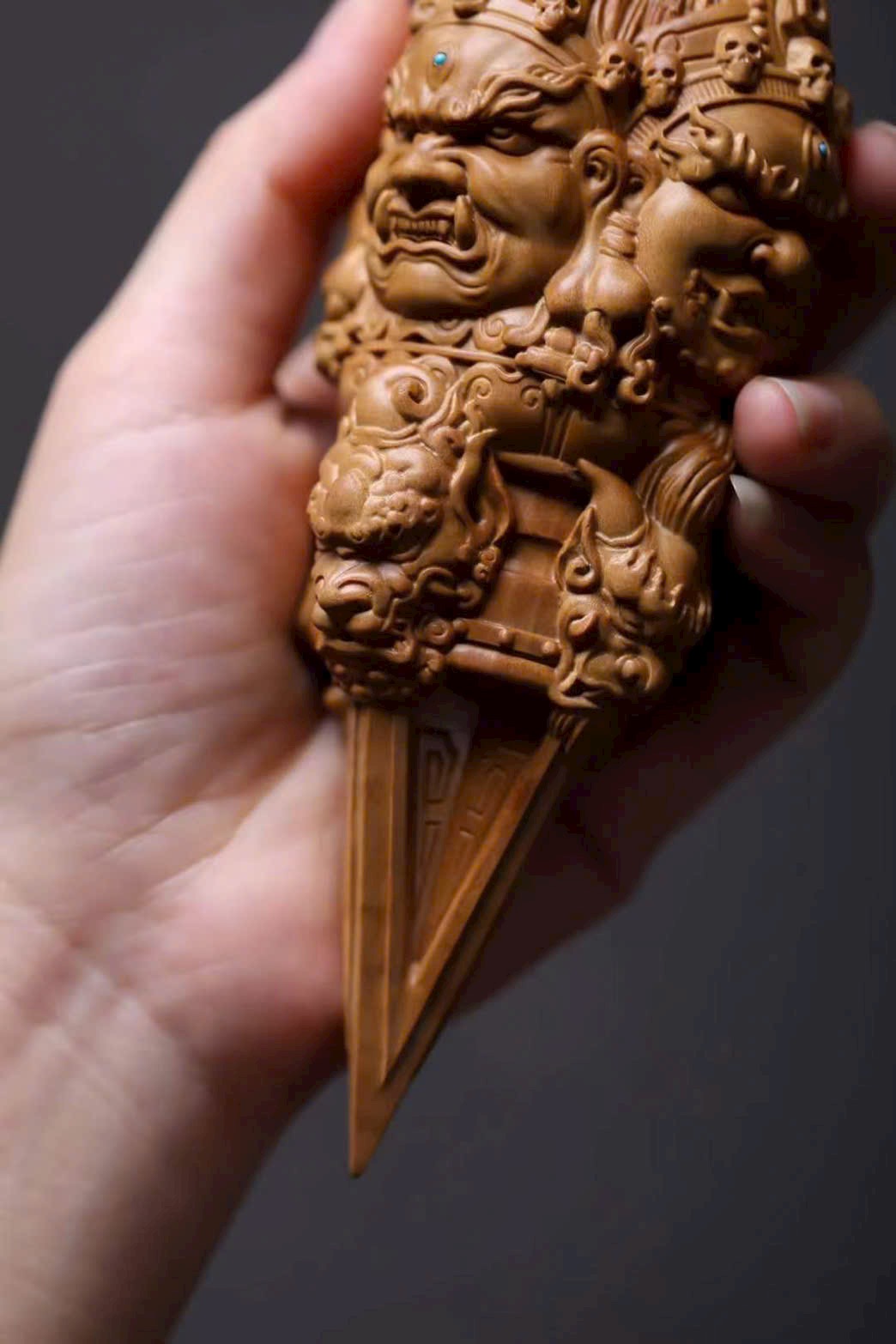 🌿 Tác phẩm làm từ đàn hương Ấn Độ (lão sơn), khắc hình Kim Cang Hàng Ma Chử – pháp khí Phật giáo tượng trưng cho sức mạnh trí tuệ, trừ tà diệt ác, hộ thân bình an. Họa tiết thần linh thể hiện ý nghĩa bảo hộ và trừ tai giải nạn.
