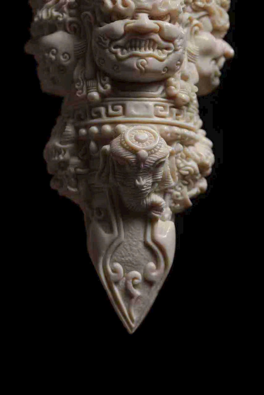 Tác phẩm chạm khắc từ n.gà voi ma mút, khắc họa pháp khí Kim Cương Chử – một trong những pháp khí quan trọng trong Phật giáo, còn gọi là Đa Cát. Đây là pháp khí hàng ma của chư thần, đồng thời là một trong “Thất bảo trừ tà”, tượng trưng cho năng lực trấn áp tà ma, hộ thân an lành, tăng phúc thọ.
