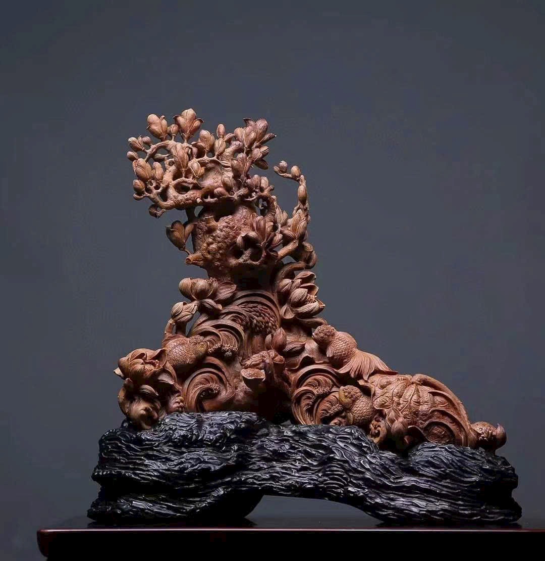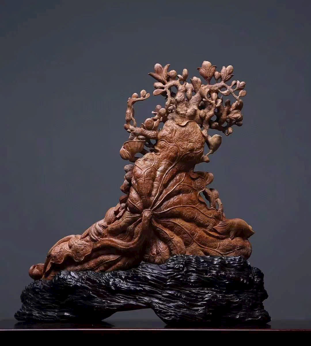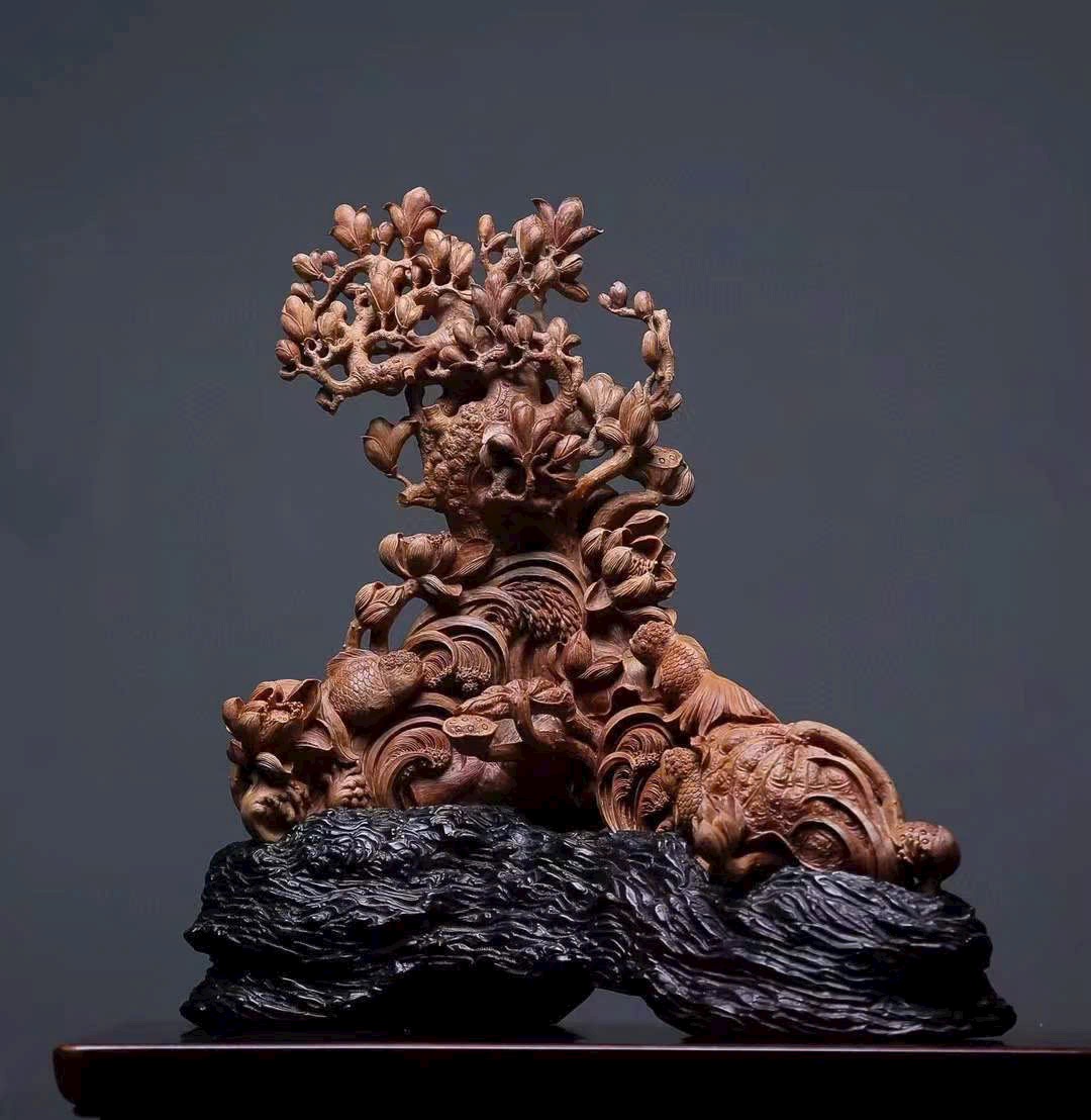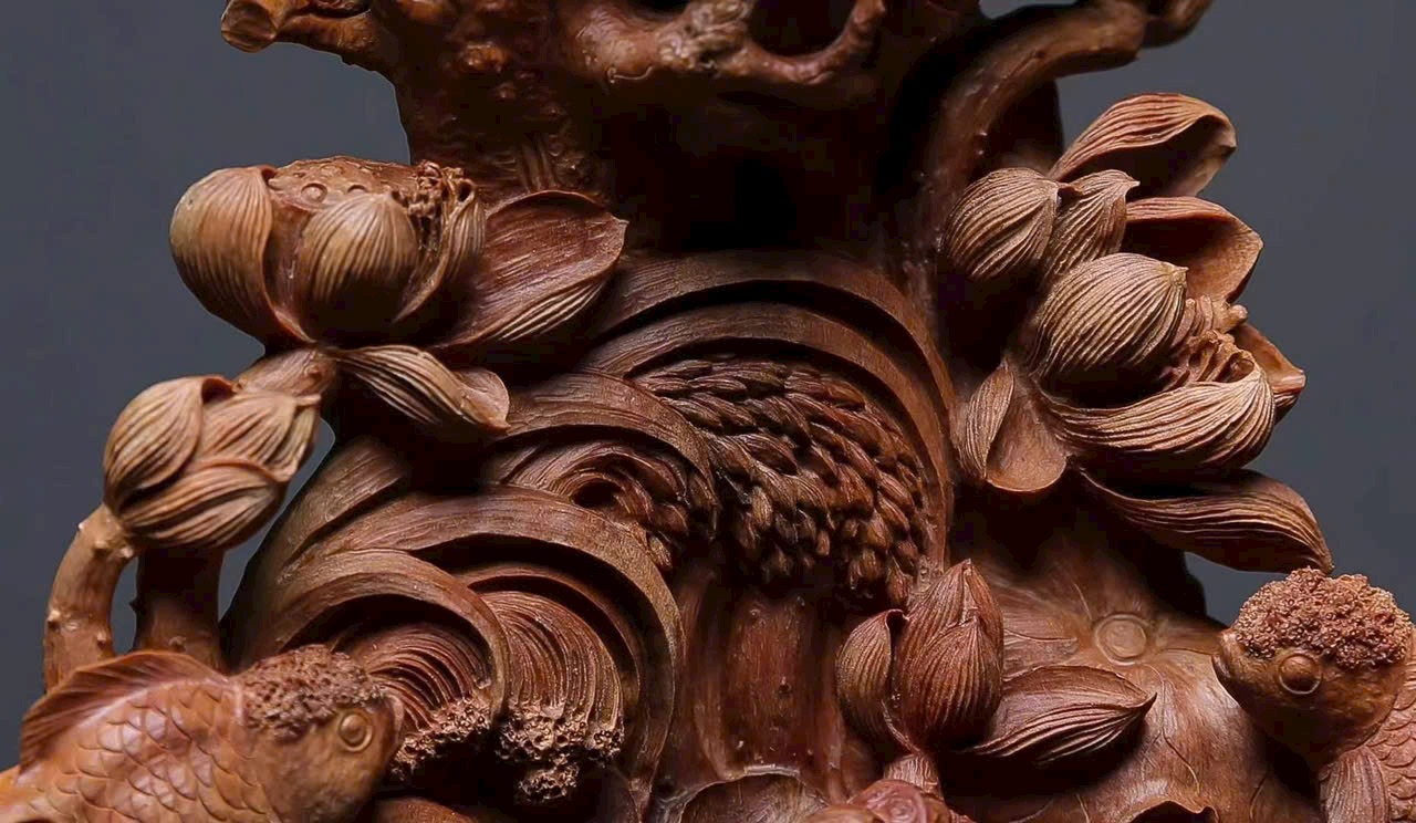 Từng đường chạm khắc như bút họa, tái hiện cảnh hoa nở rực rỡ, cá vàng tung tăng trong dòng nước – gửi gắm ước nguyện cuộc sống phú quý, tươi đẹp và viên mãn. Tác phẩm cũng là biểu tượng của tri thức phong phú, phúc lộc đủ đầy.