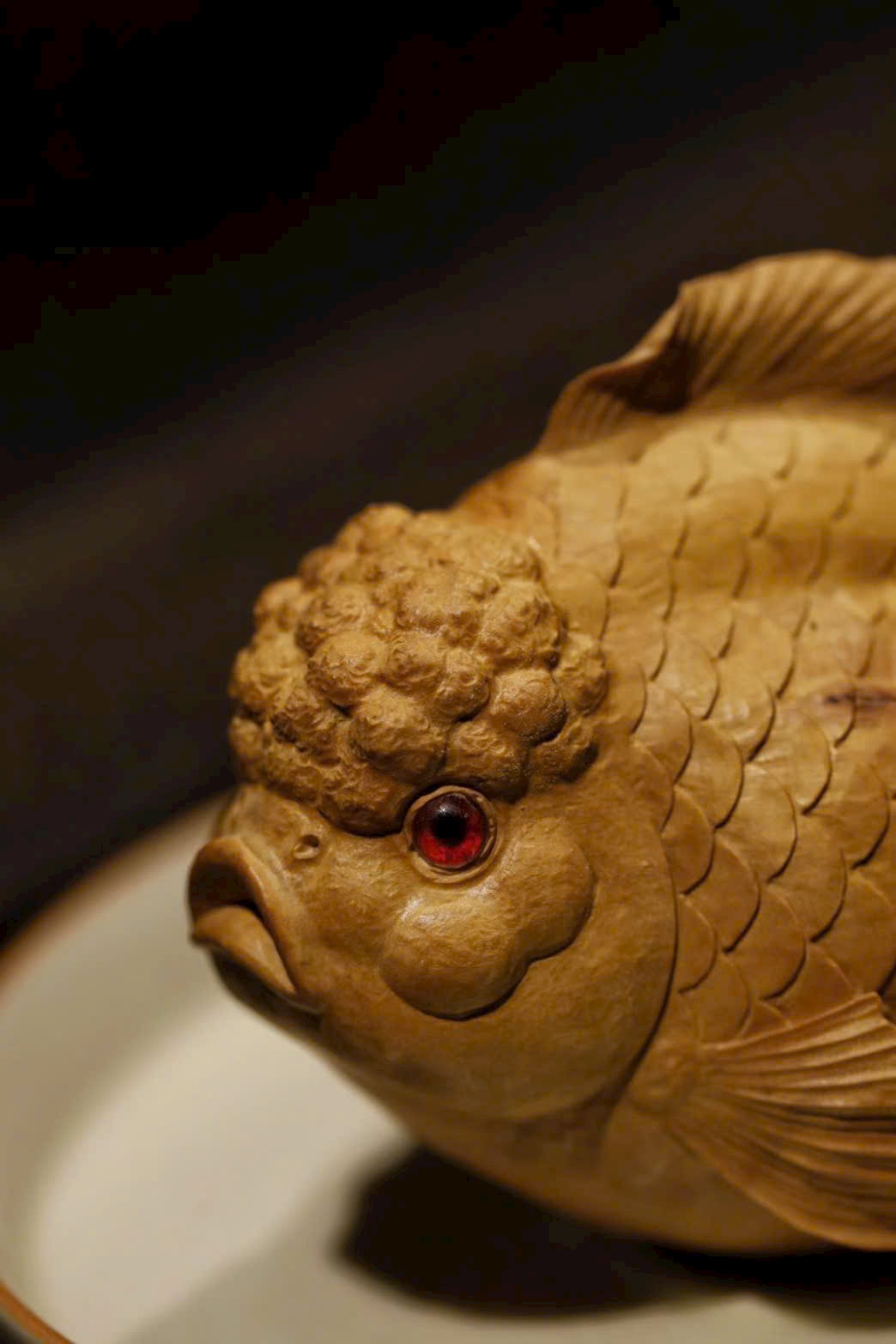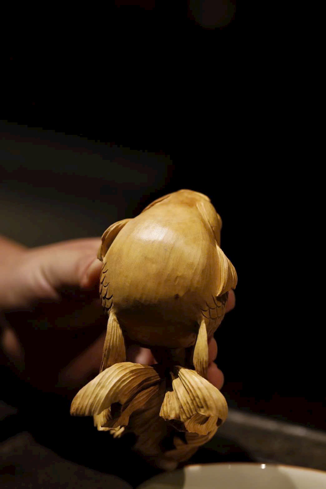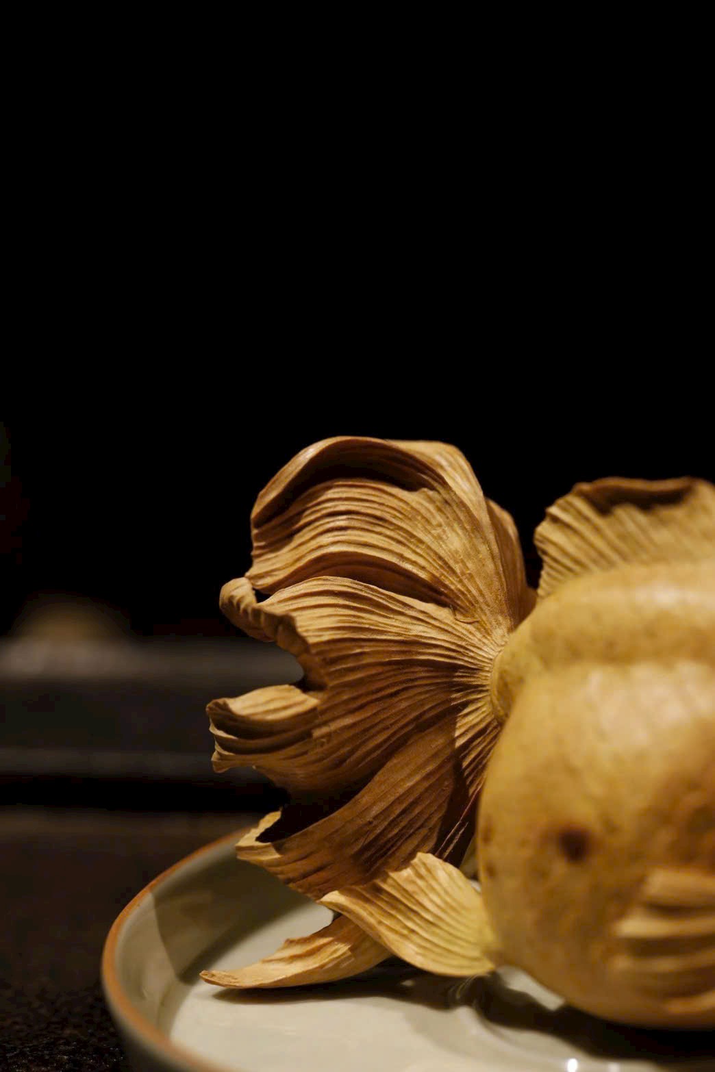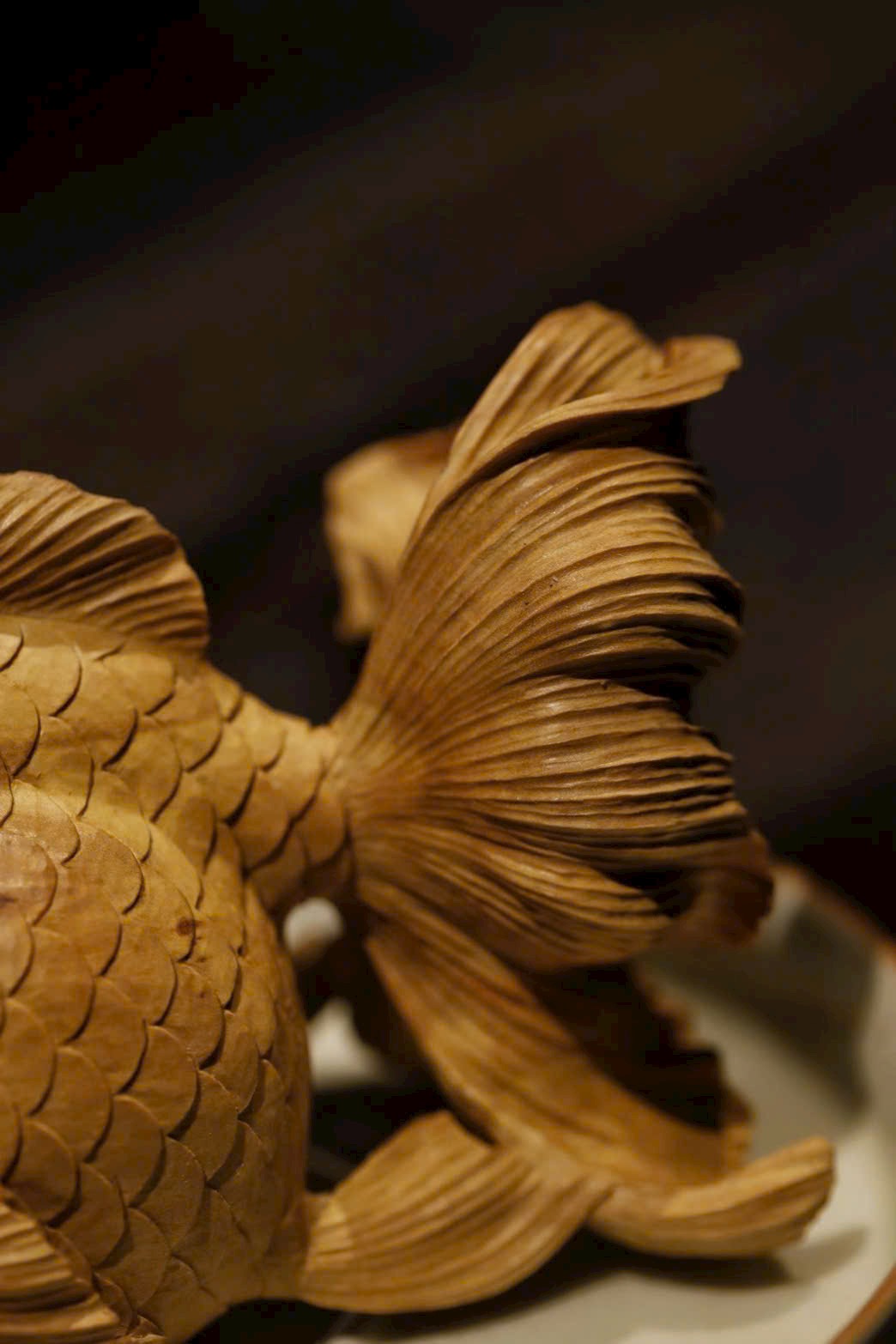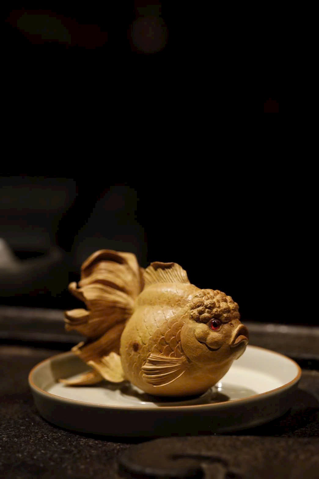 Thân cá vàng đầy đặn, vảy xếp lớp rõ ràng, đuôi xoè mềm mại như dải lụa, đôi mắt đỏ linh động sinh thần. “Ngư” đồng âm với “dư”, vì vậy cá vàng mang ý nghĩa “kim ngọc mãn đường, năm nào cũng dư dả”. Đây là món phẩm văn phòng vừa ngắm vừa chơi, đặt trên án thư đem lại điềm lành bền lâu.