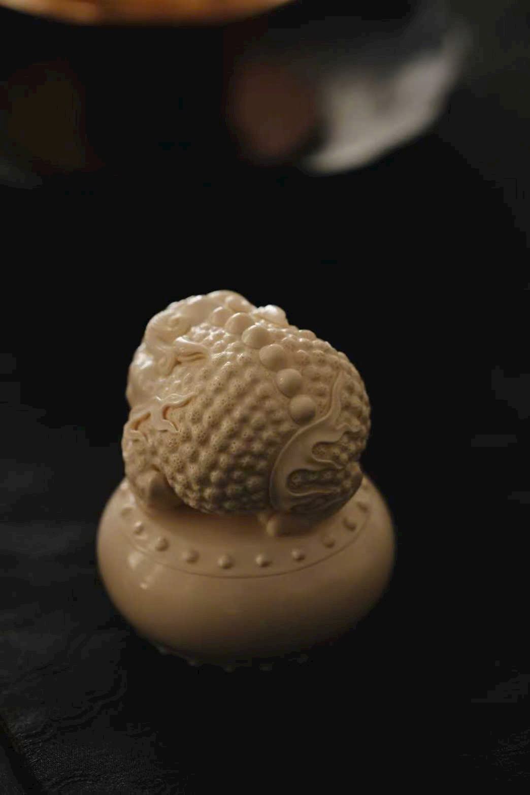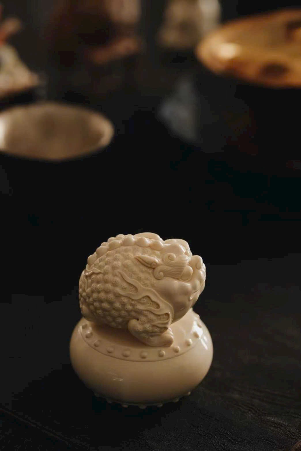 Chất n.gà mịn màng, toàn bộ được chạm khắc thủ công. Kim thiềm đầy đặn khỏe khoắn, thần thái linh hoạt sáng rõ, mang ý chúc tài vận hanh thông, phú quý nối tiếp.