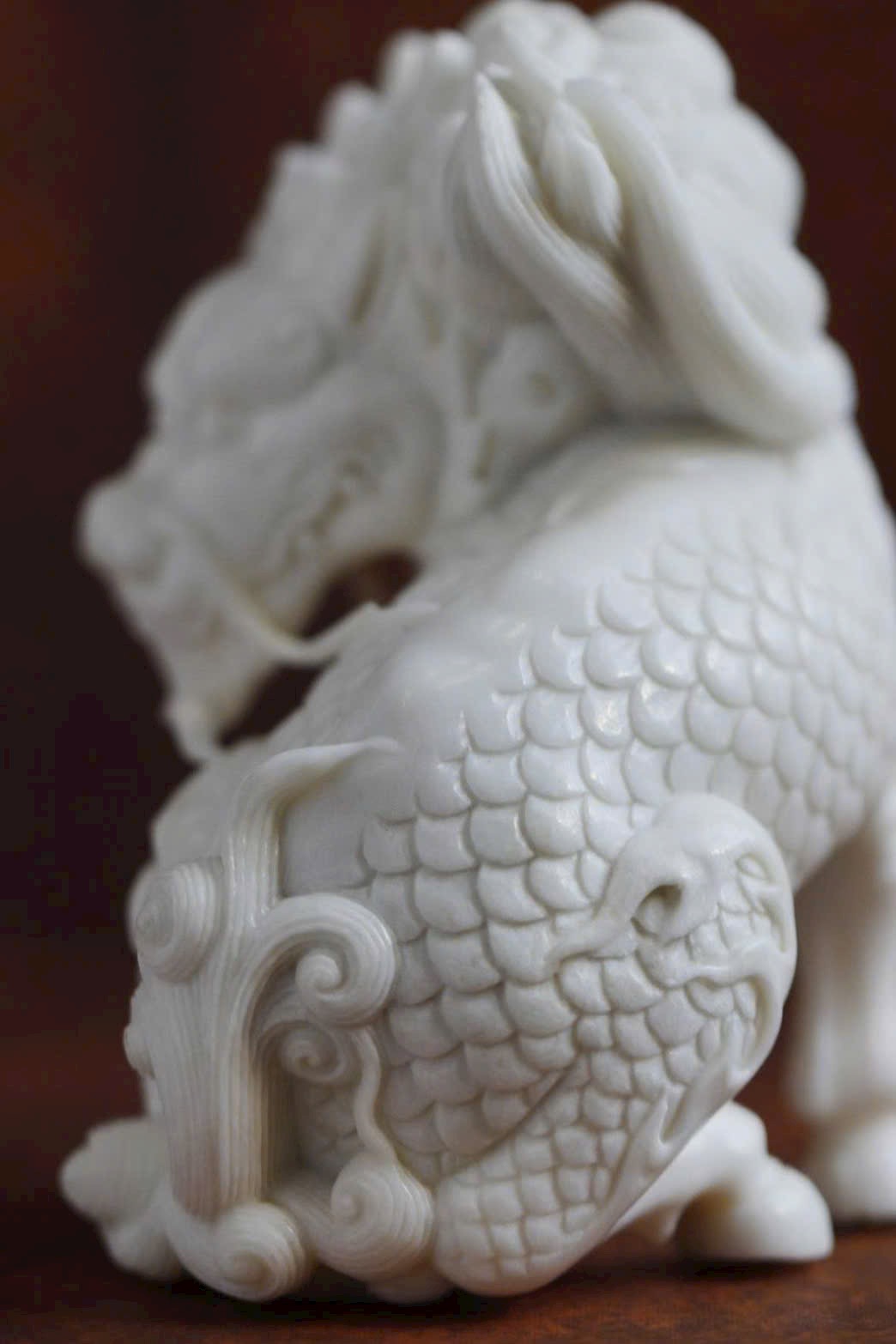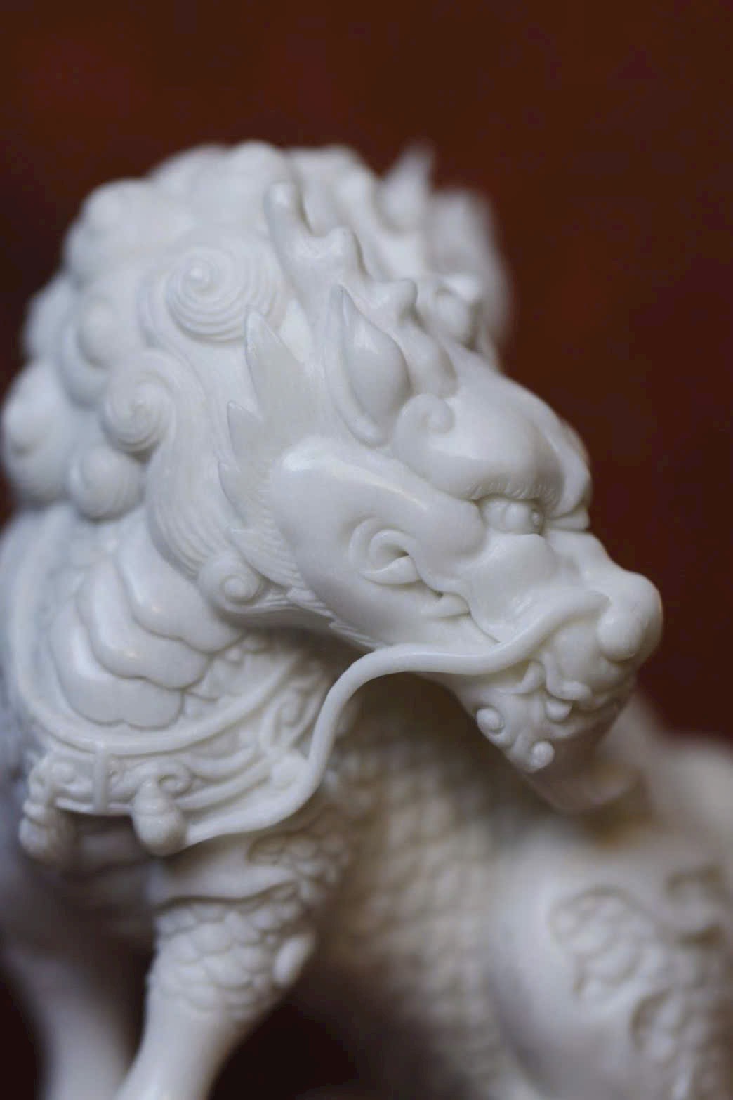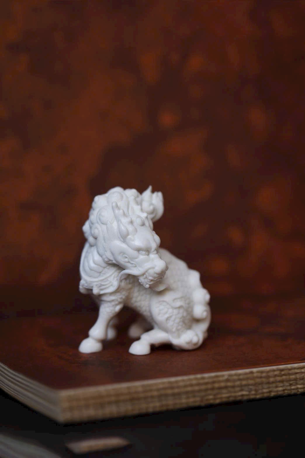 Chất liệu mịn màng, ấm sắc; tác phẩm được tỉ mỉ chạm khắc thủ công. Từng phiến vảy kỳ lân nổi rõ, sắc nét, toát lên thần thái linh động sinh khí. Đặt trên bàn thưởng lãm vừa đẹp mắt, vừa mang ý nghĩa chiêu tài nạp phúc.
