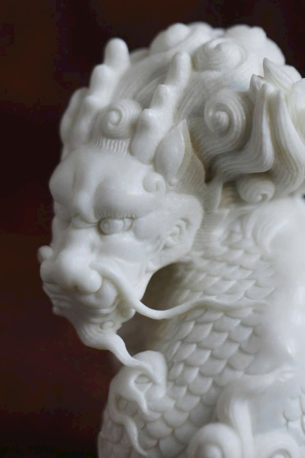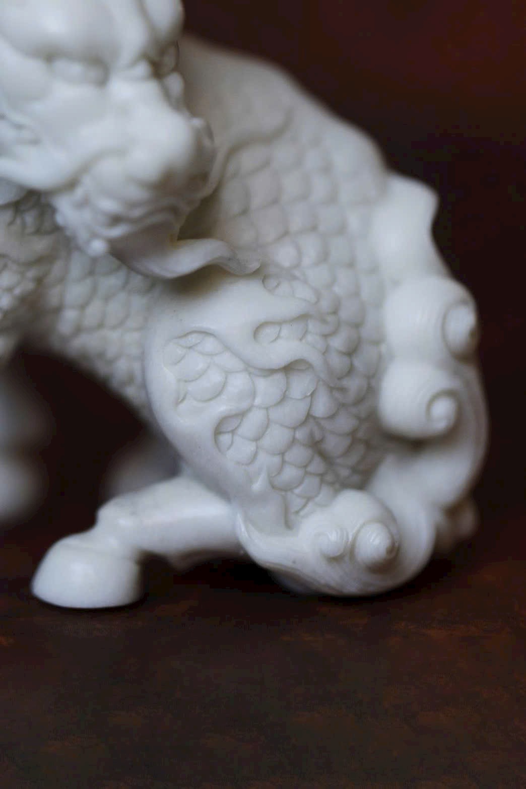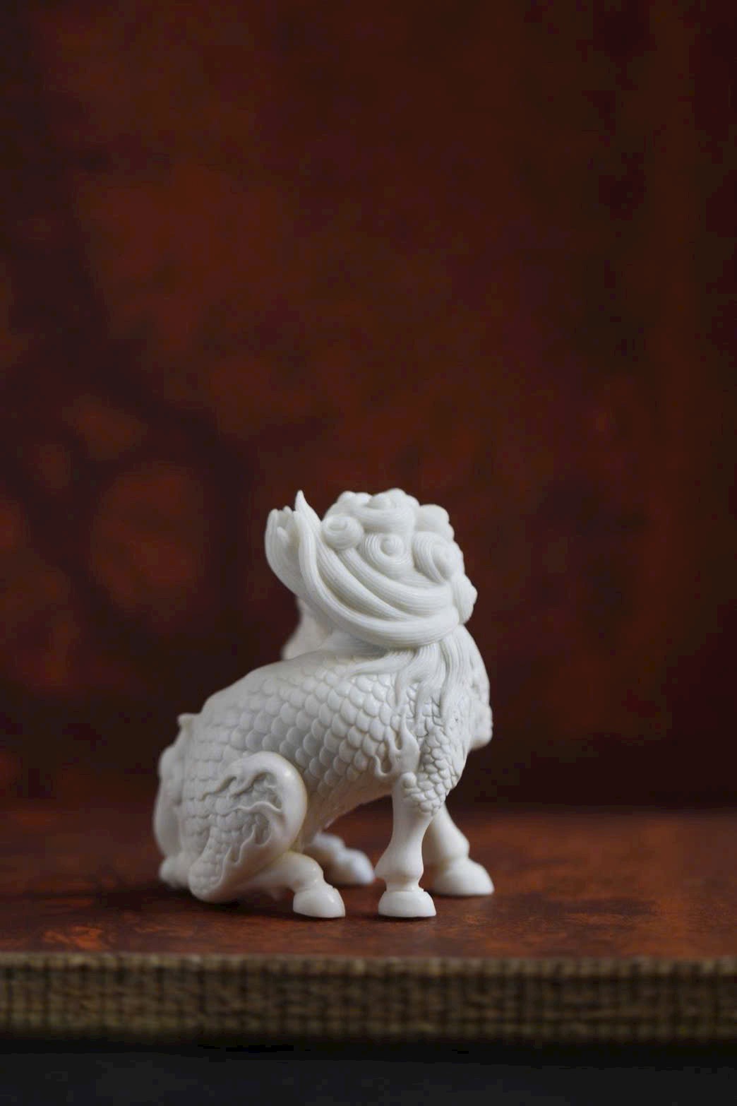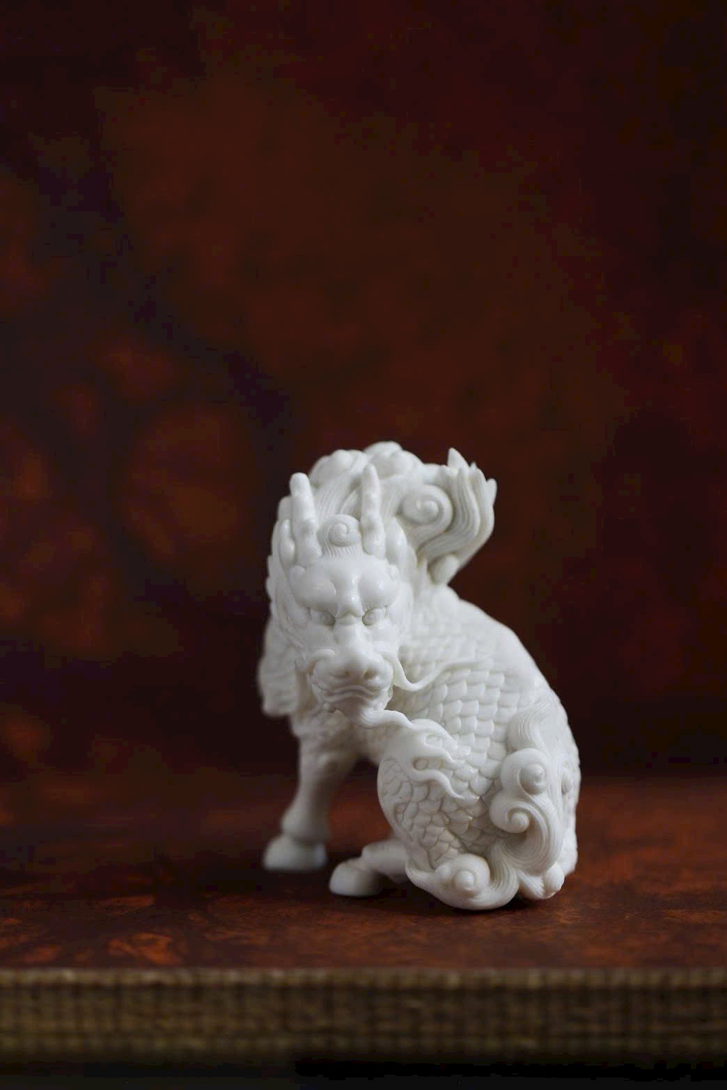 Chất liệu mịn màng, ấm sắc; tác phẩm được tỉ mỉ chạm khắc thủ công. Từng phiến vảy kỳ lân nổi rõ, sắc nét, toát lên thần thái linh động sinh khí. Đặt trên bàn thưởng lãm vừa đẹp mắt, vừa mang ý nghĩa chiêu tài nạp phúc.