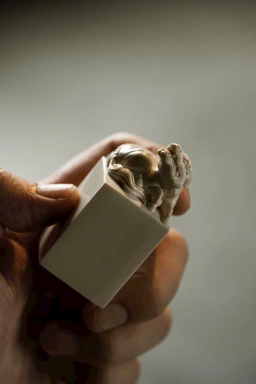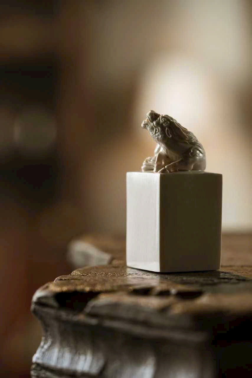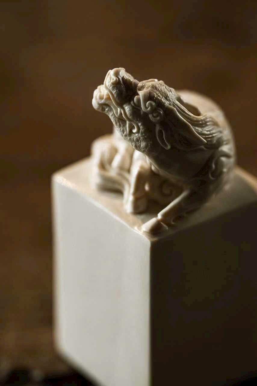 “Lấy đao làm bút, lấy n.gà làm thạch, khắc ấn thú linh cát tường. Kế thừa cổ pháp mà cũng phá cách, kỹ pháp giải cấu, như mây ngoái đầu, công nghệ đúc hồn, ấn đài chứa đạo, đường đao ẩn thú vị. Một chứng tích thời gian thấm đẫm ‘vị kim thạch’.”