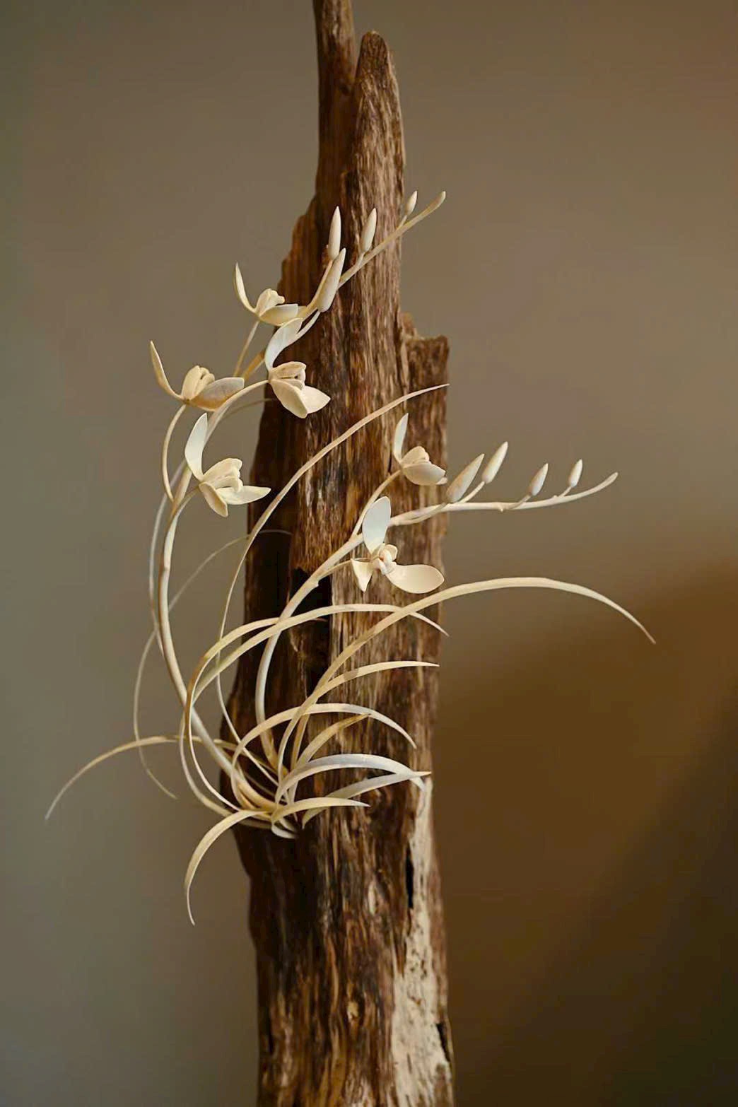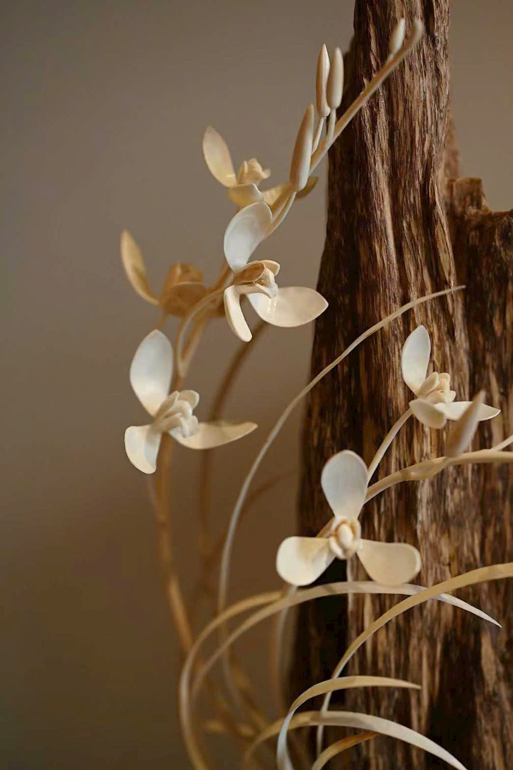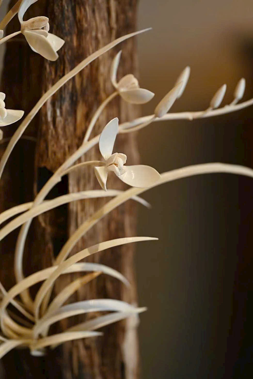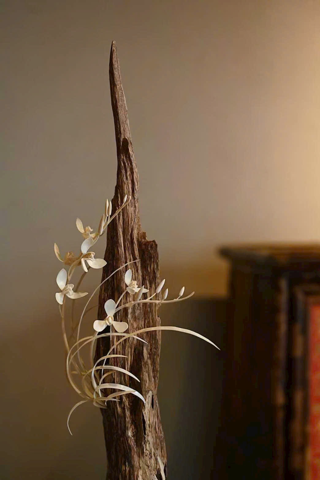 Chất liệu trầm hương ấm dịu, mùi hương thanh thuần quyện với sắc ngà ma mút mịn bóng.