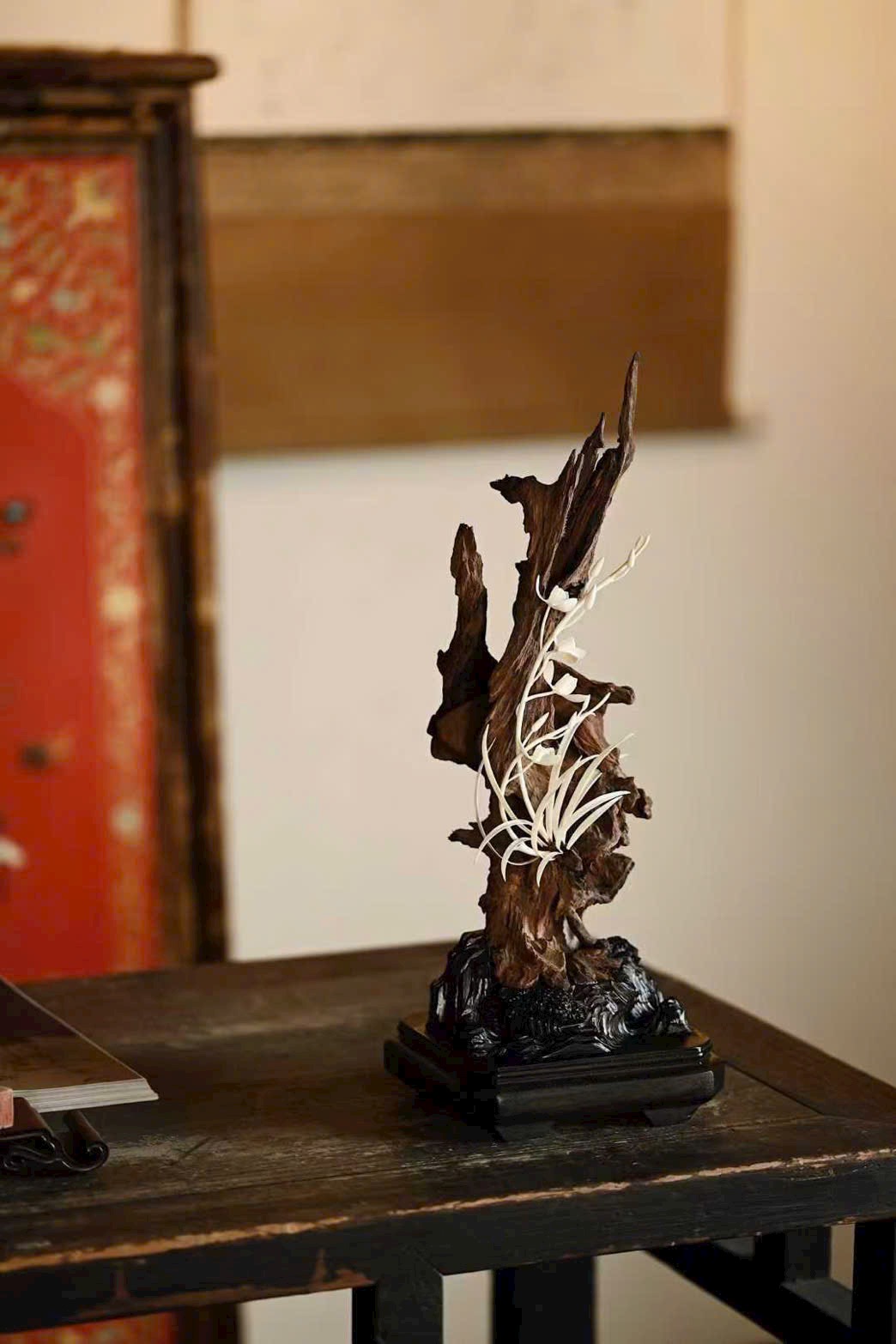 Chạm khắc từ chất liệu tự nhiên quý hiếm, lan hoa khảm tinh tế, dáng uyển chuyển như mỹ nhân, toát lên vẻ thanh tao, thoảng hương gió nhẹ.