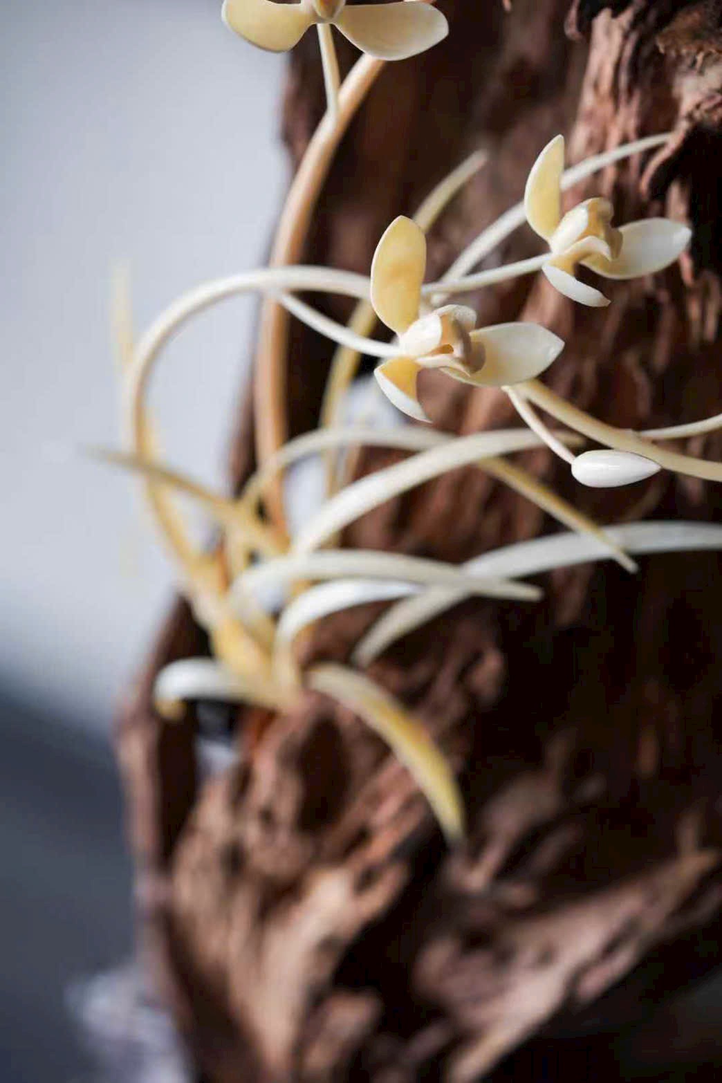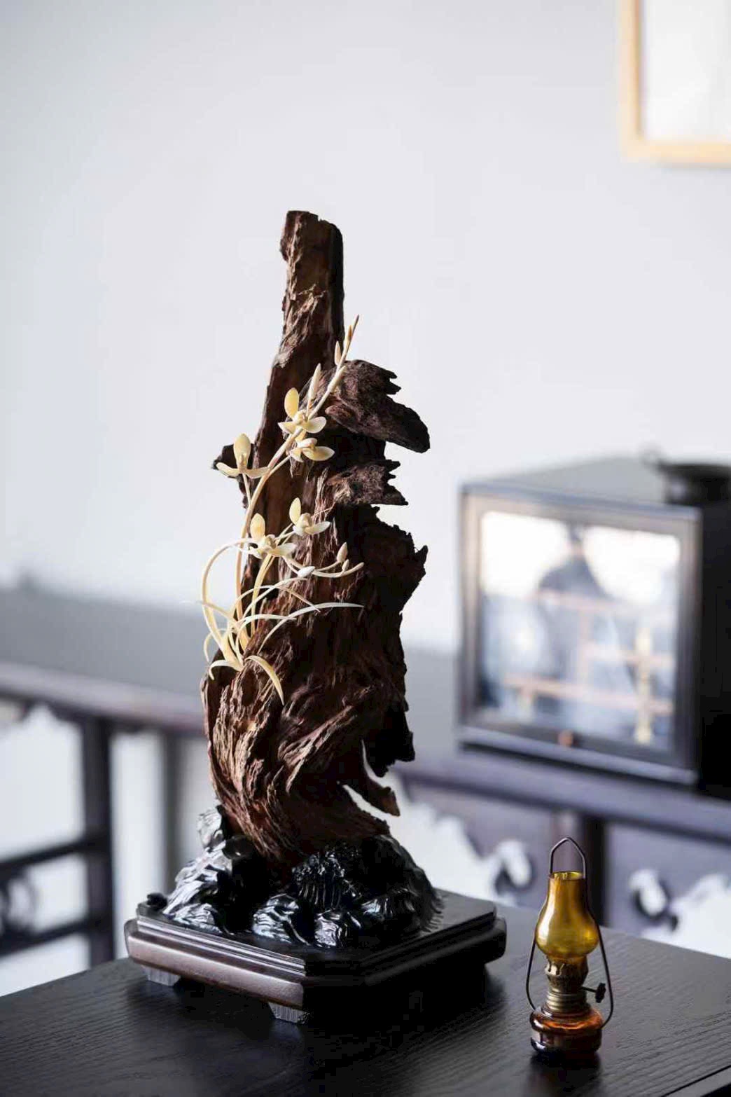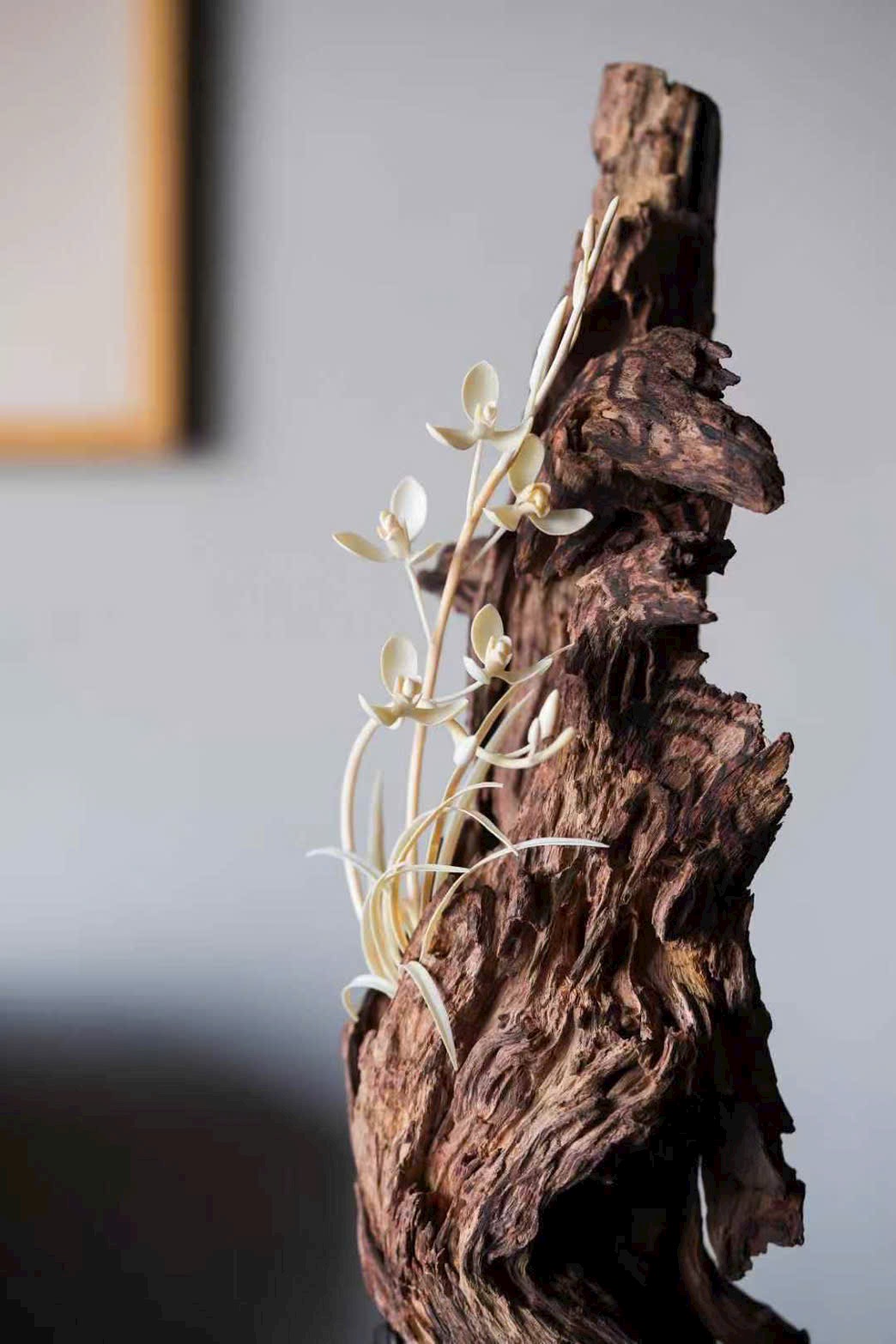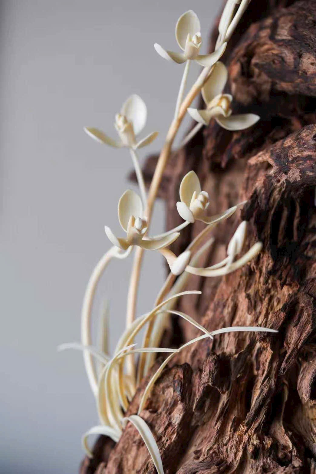 Với thiết kế hoa lan thanh tao, cánh hoa xếp chồng như những con bướm nhẹ nhàng bay lượn, từng chi tiết lá cây được chạm khắc tỉ mỉ, sắc nét.