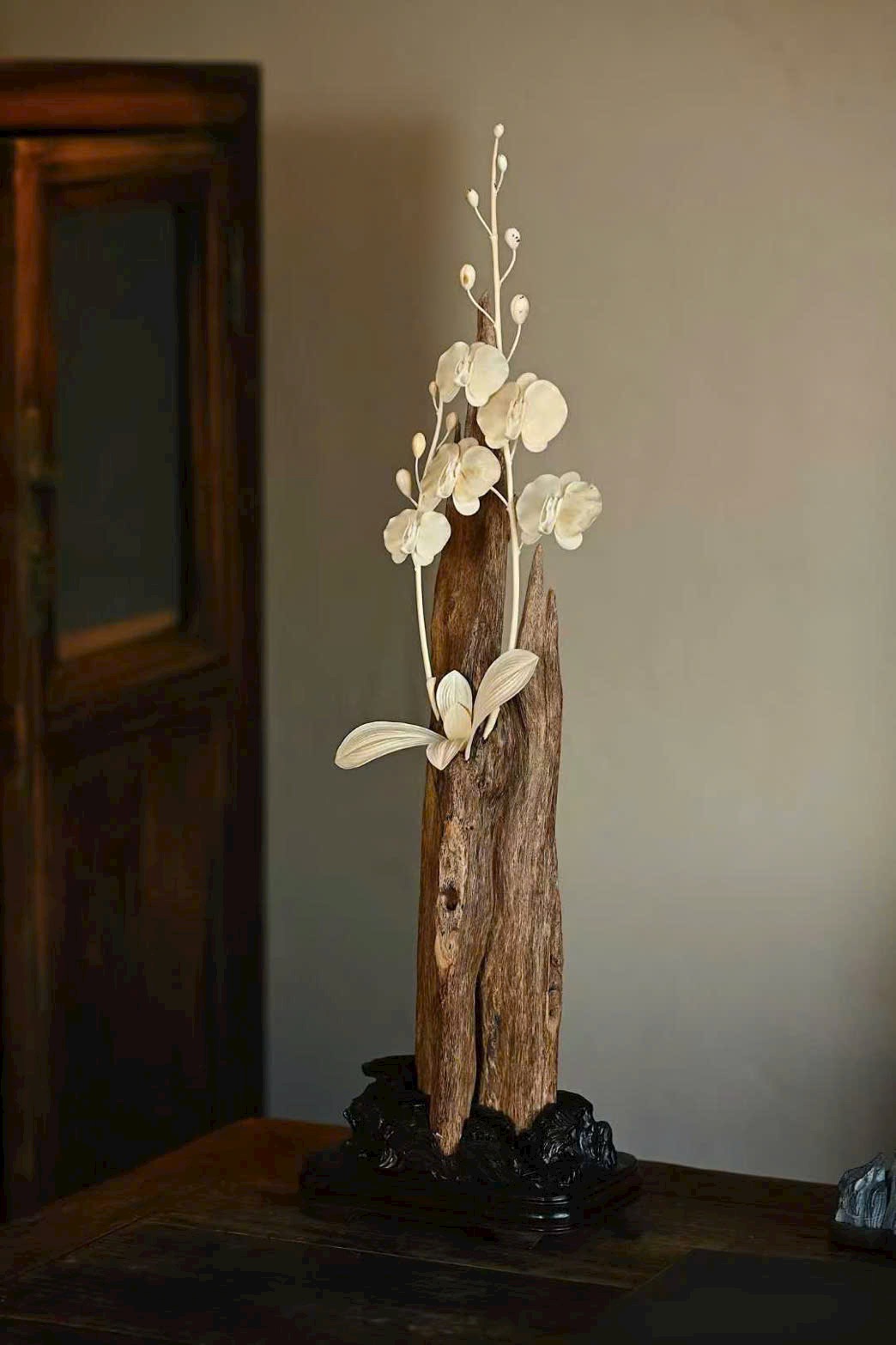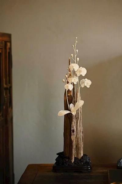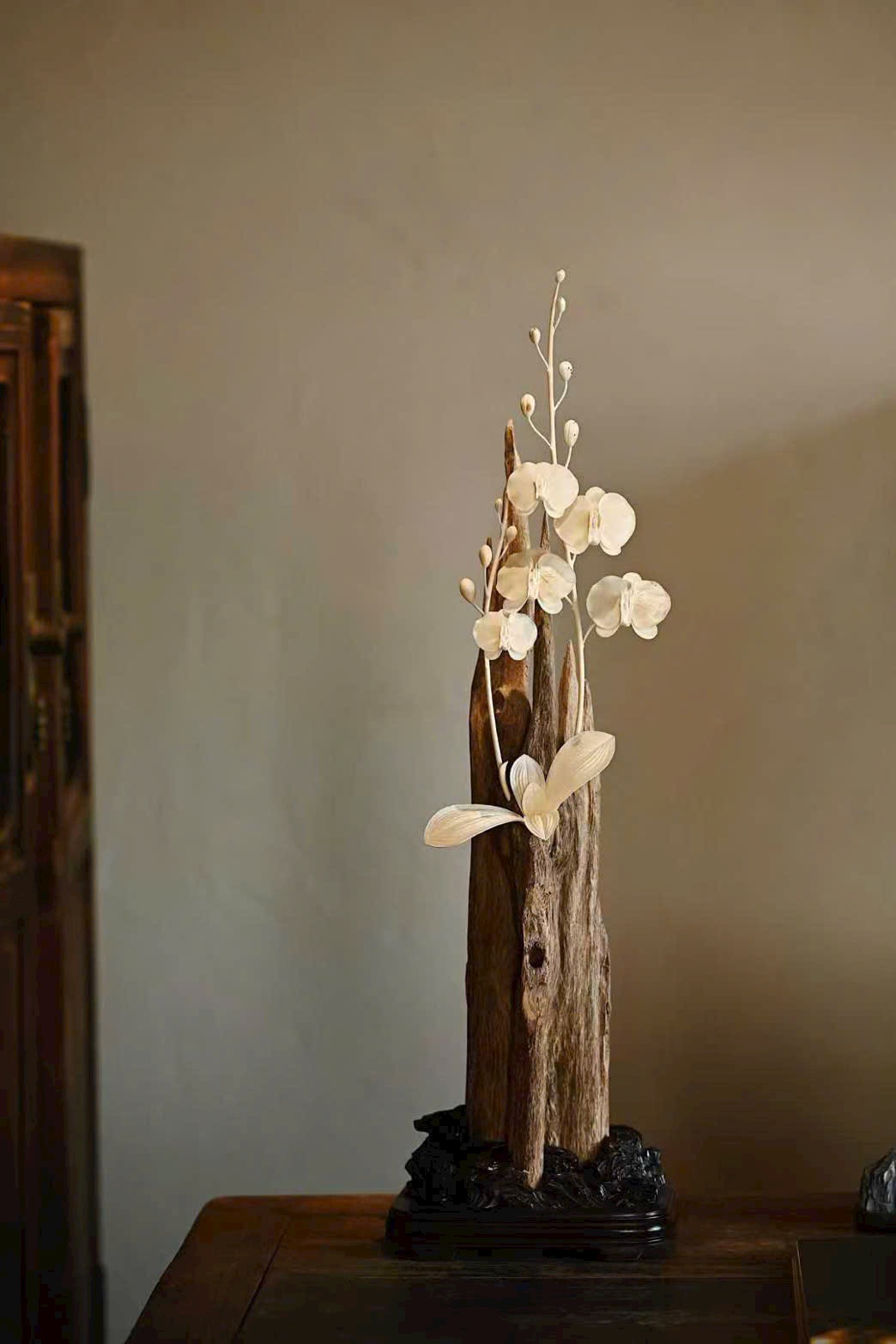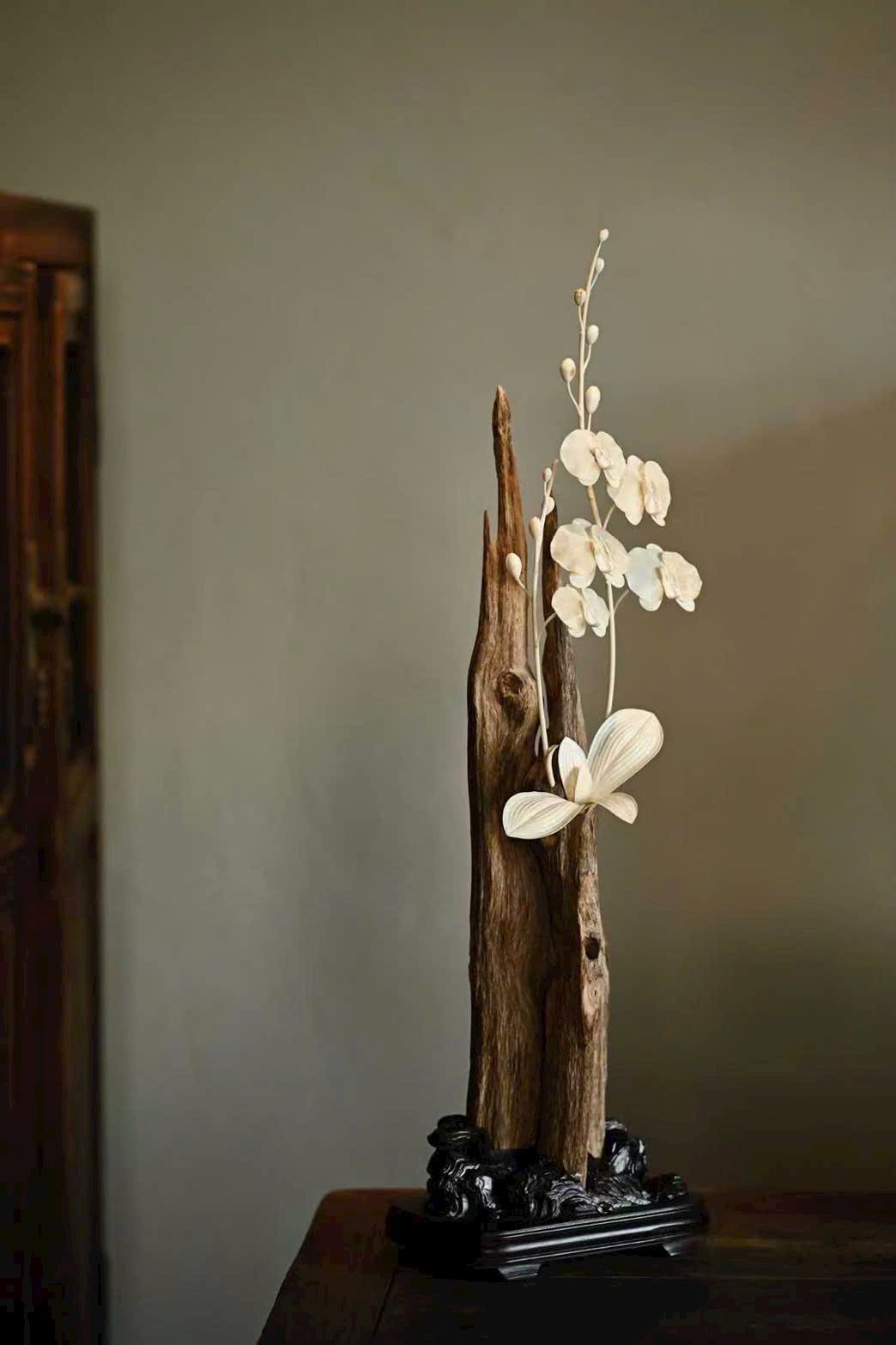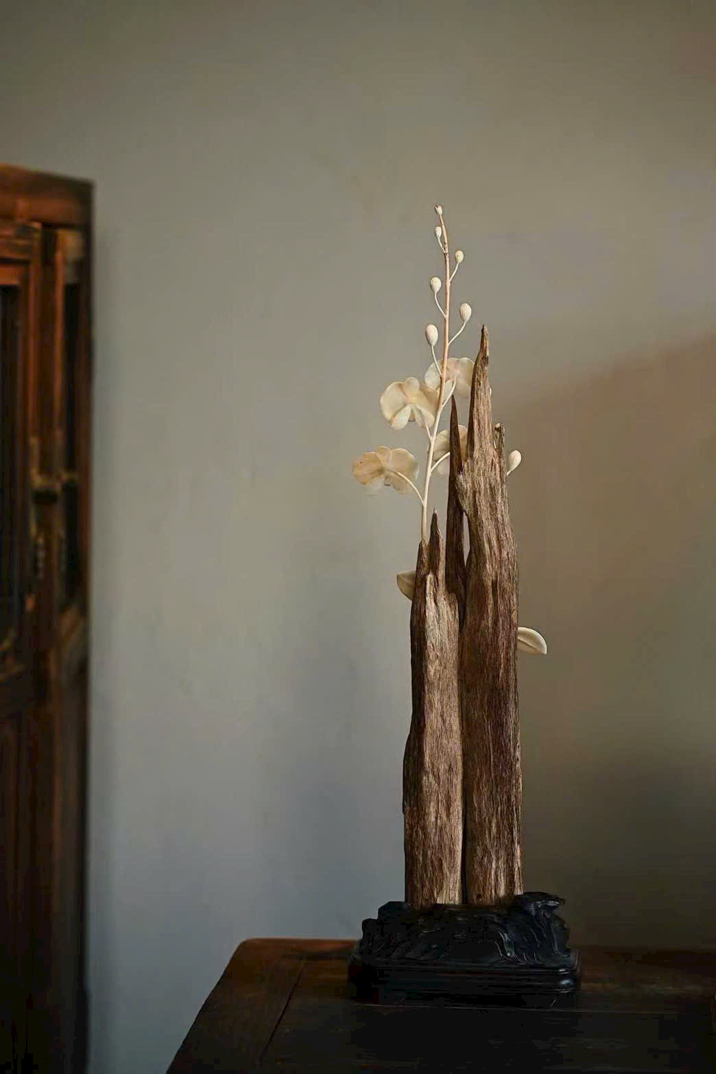 Trầm hương Brunei x ng.à ma mút – “Lan hoa • Vô nhân dã tự phương”, hương thơm nhã nhặn, dáng tự nhiên sinh động, hoa lan thanh khiết kiều diễm, bày án thư ý nhã vượt trội.