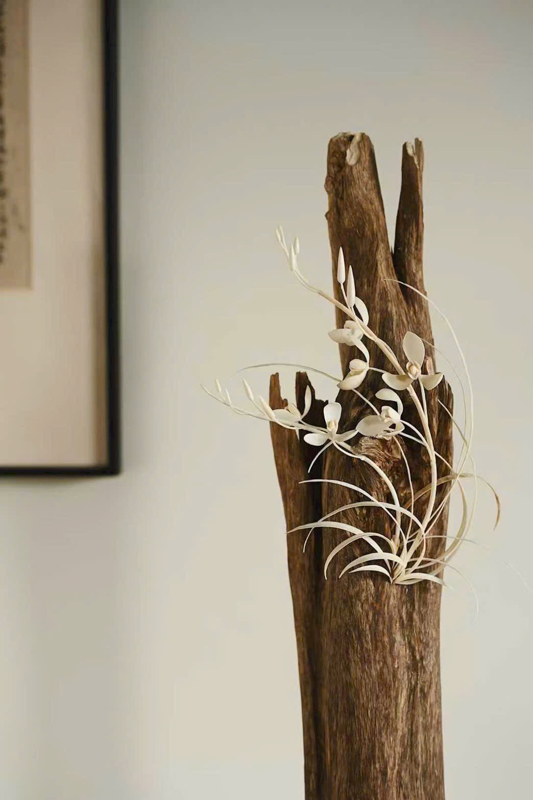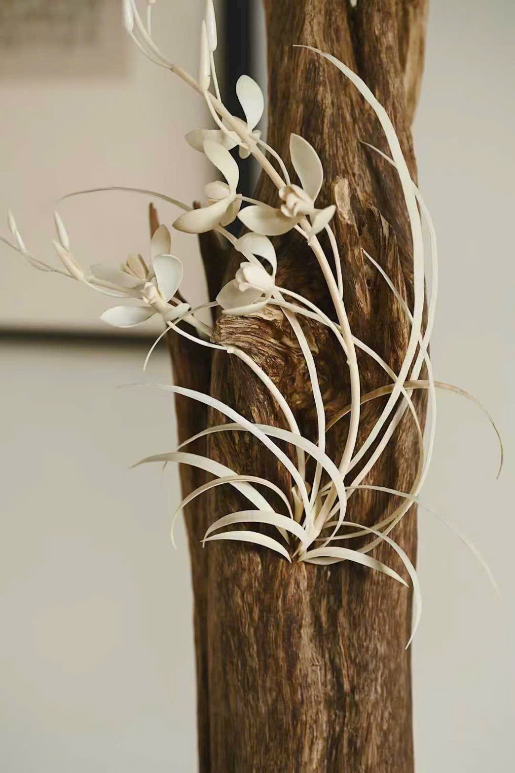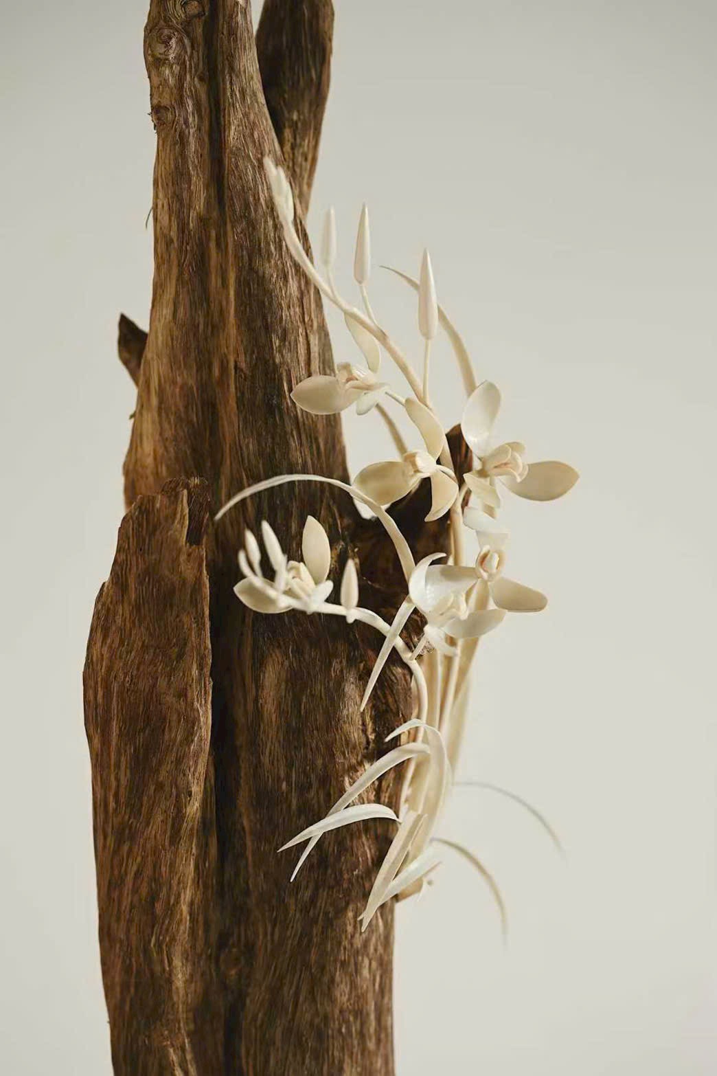 Hình dáng độc đáo cổ nhã, vân tự nhiên như vết tích vách đá, dung hòa hoàn mỹ giữa vẻ đẹp hoang sơ núi rừng và tinh xảo thủ công. Lá lan dài như tay áo của bậc quân tử, uốn lượn uyển chuyển, ẩn chứa linh khí sinh động, khắc họa nên vẻ thanh tĩnh thanh khiết tựa lan nở trong thung vắng.