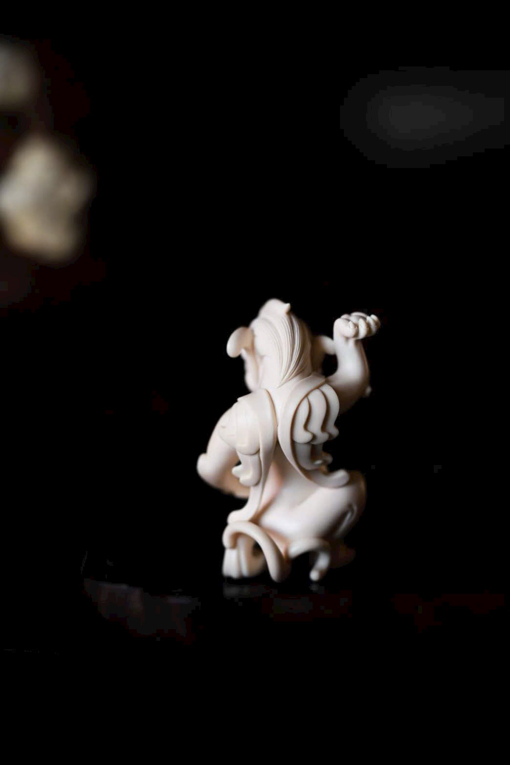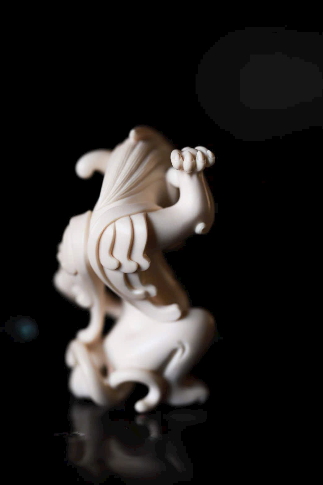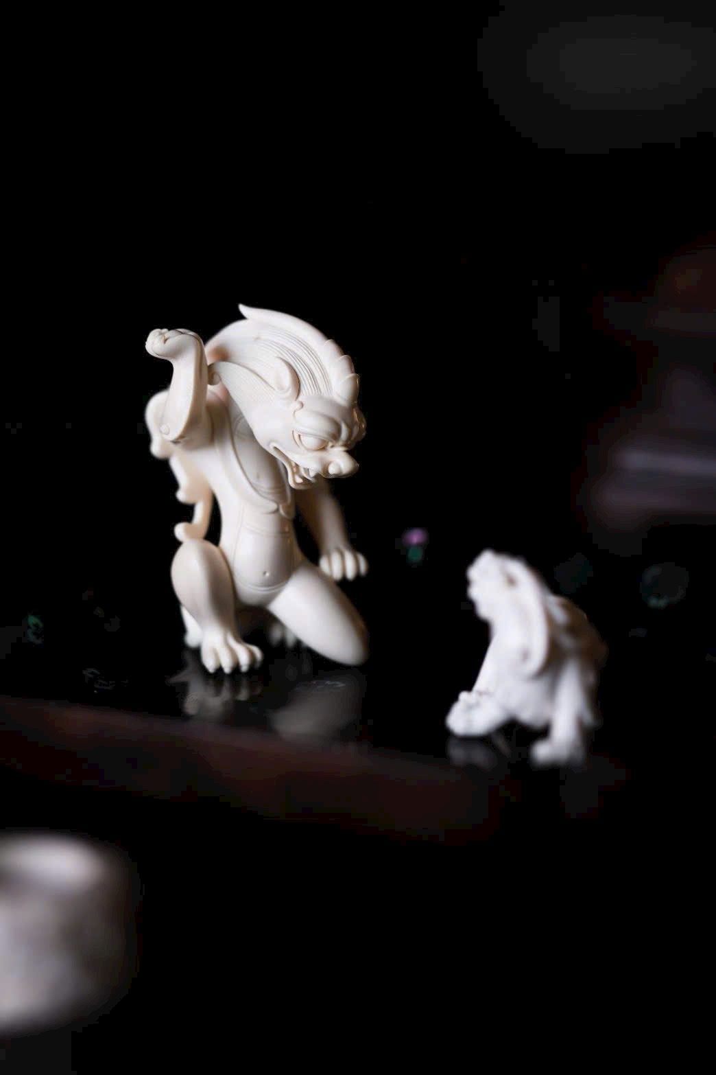Phỏng tác theo hình tượng Li long bằng đồng thời Hán, ngà mịn như mỡ ngọc thấm ánh trăng, tư thế trấn giữ uy nghi. Đầu rồng vươn cao hút mây khí tứ phương, đuôi cuộn gom tài tinh cửu tiêu. Bày nơi án thư giúp chiêu tài tụ bảo, mang lại khí tượng cát tường cho không gian.