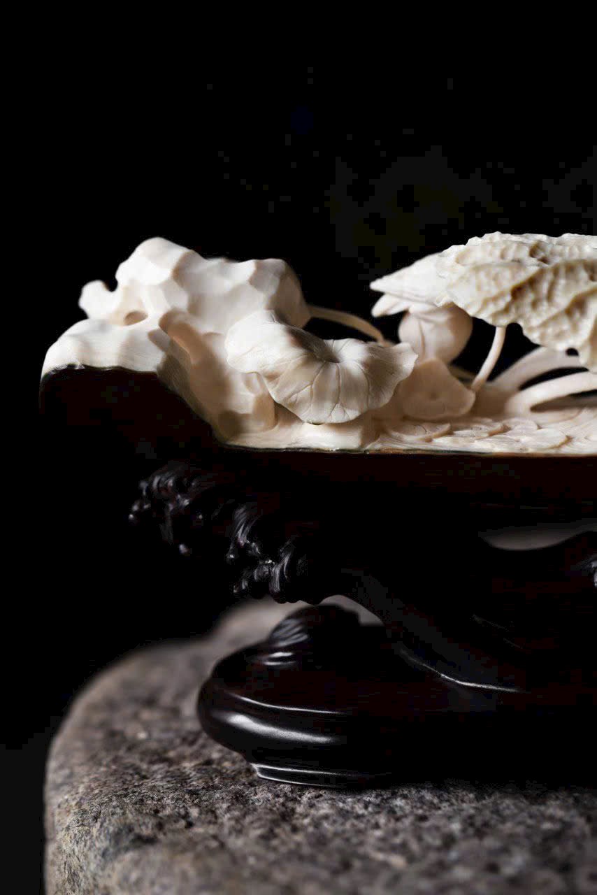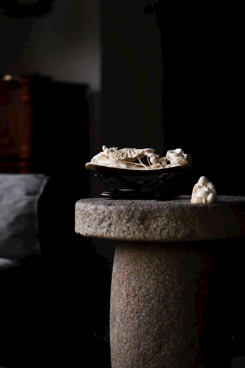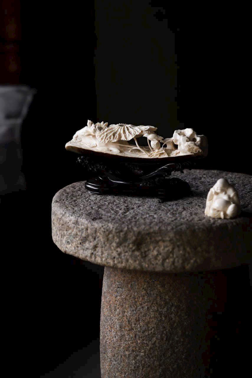 Đặt trên bàn trà hoặc bàn trưng bày, bức tượng hiện lên khung cảnh thiền tịnh, như gió nhẹ lay động lá sen.