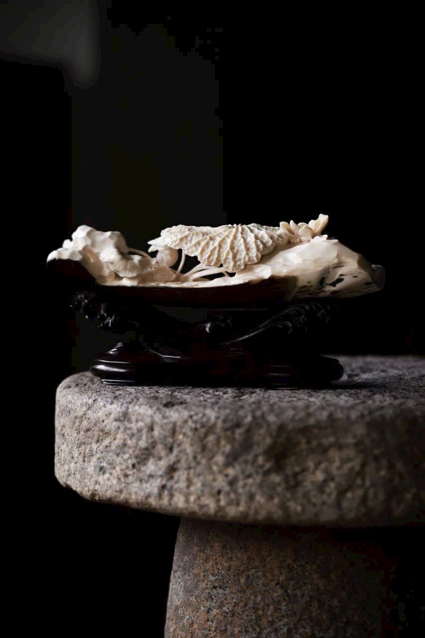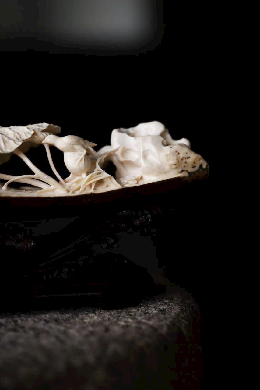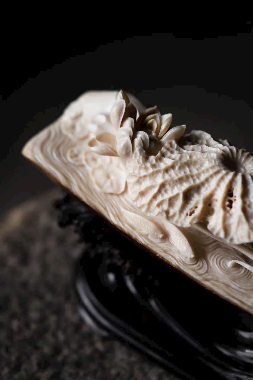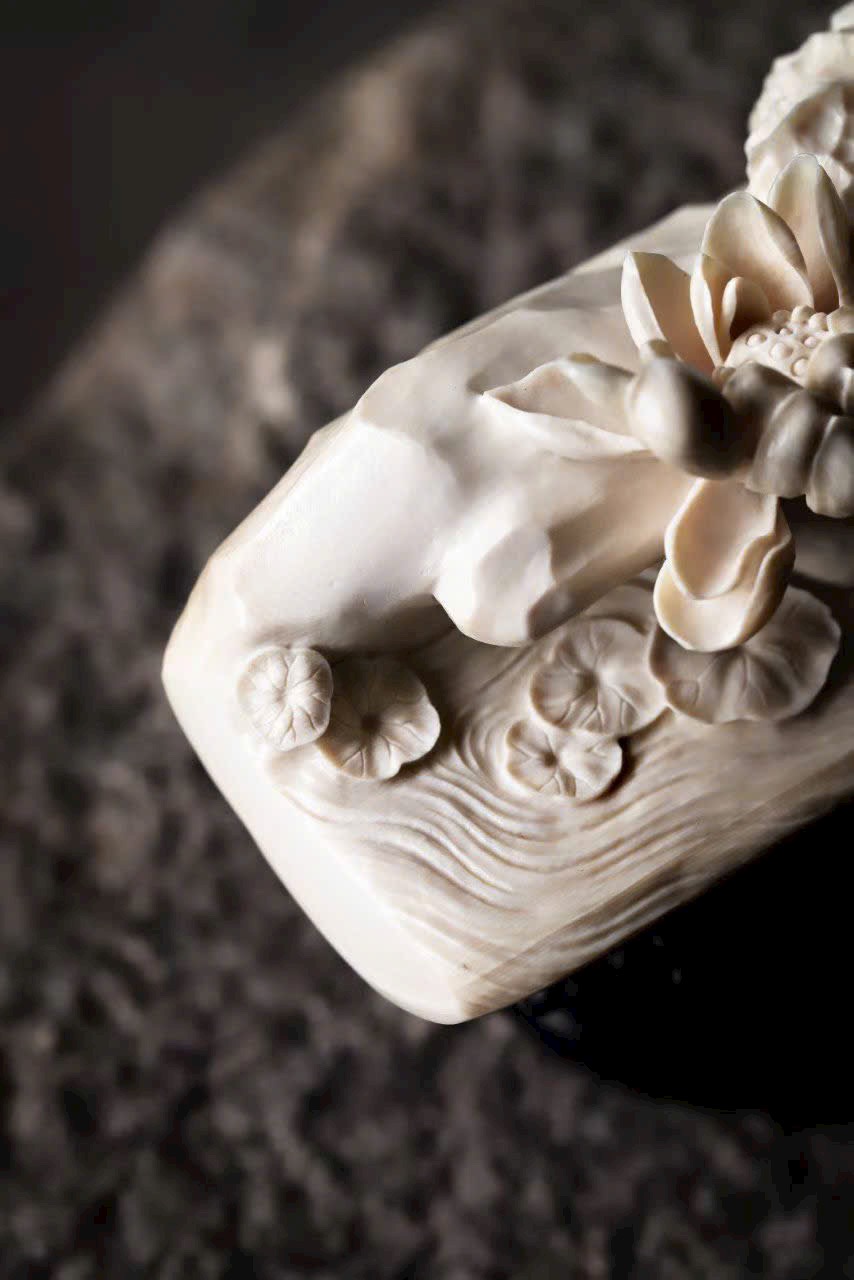 Đặt trên bàn trà hoặc bàn trưng bày, bức tượng hiện lên khung cảnh thiền tịnh, như gió nhẹ lay động lá sen.