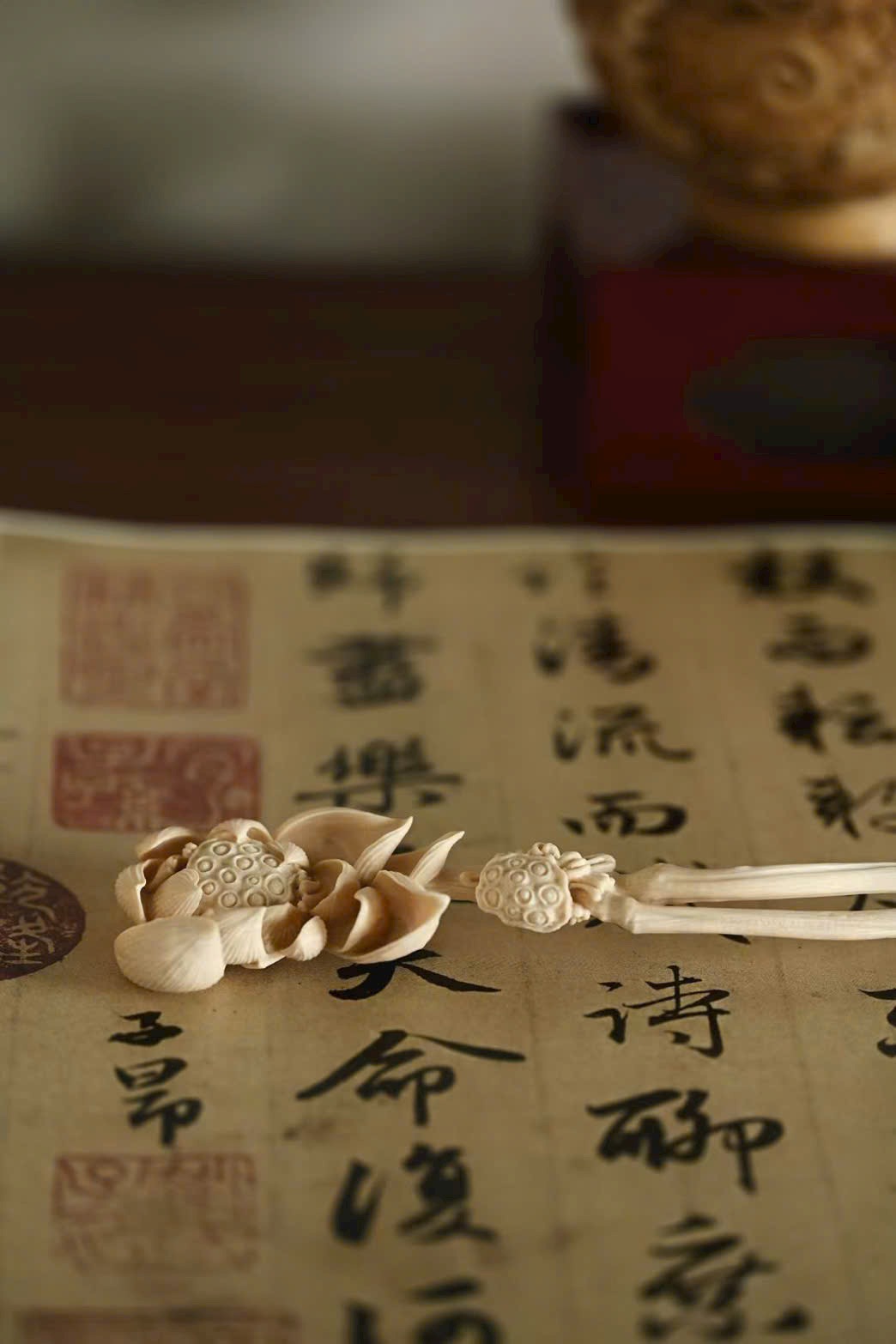 Chất liệu ấm mượt, hoa lá uyển chuyển, ẩn chứa trọn vẹn tâm ý người thợ. Hoa sen dáng vẻ mềm mại duyên dáng, cành nhánh đan xen, tràn đầy nét tươi mới. Đặt nơi án thư, tự khắc toát lên nhã vận.