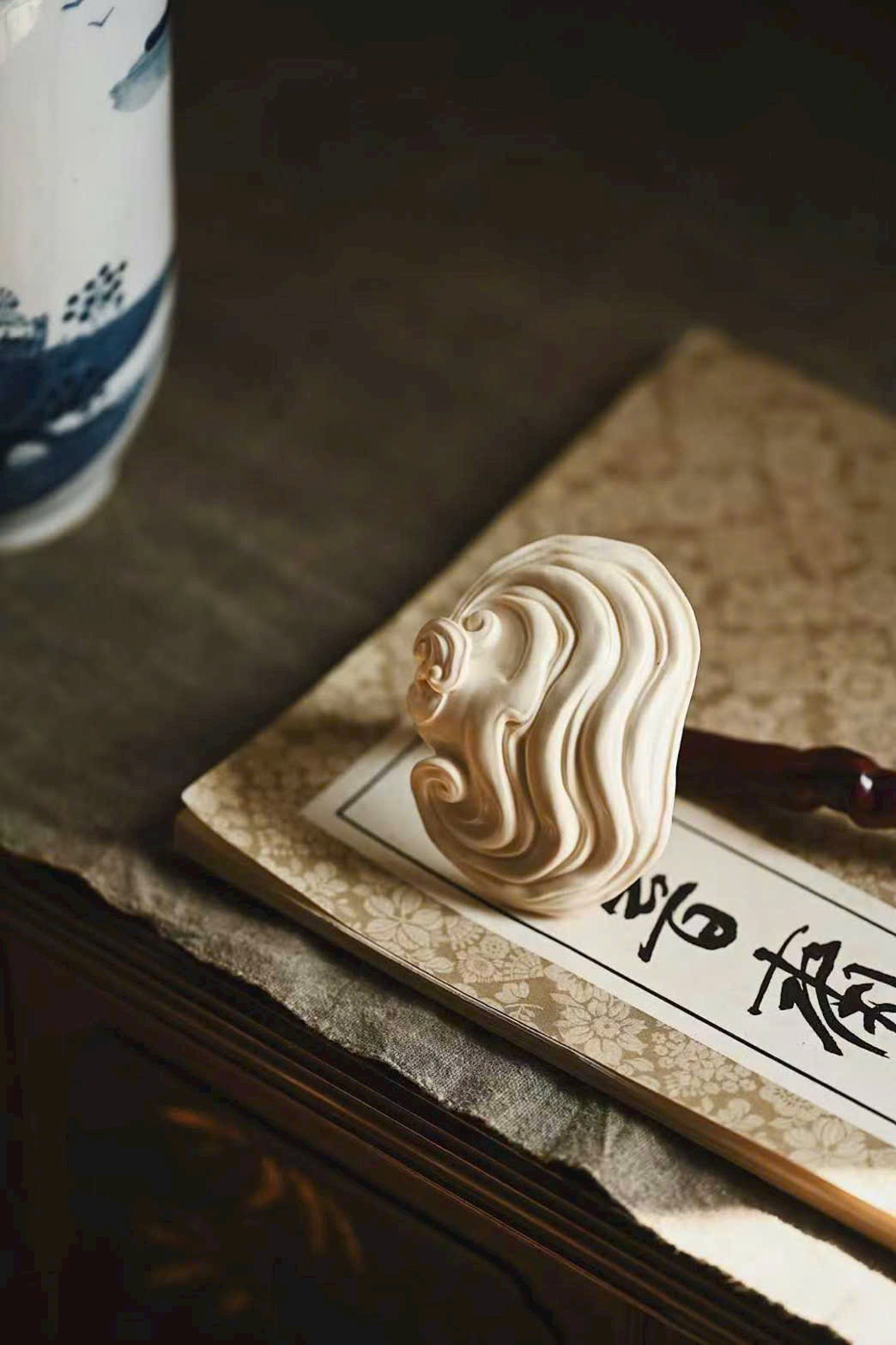 Hoàn toàn thủ công chạm khắc, đường nét uyển chuyển mềm mại, cấu trúc chặt chẽ hài hòa, toát lên vẻ cổ nhã. Dùng làm vật trưng bày hay cầm nắm thưởng ngoạn đều mang phong vị tao nhã, lại ẩn chứa ý nghĩa cát tường như ý.