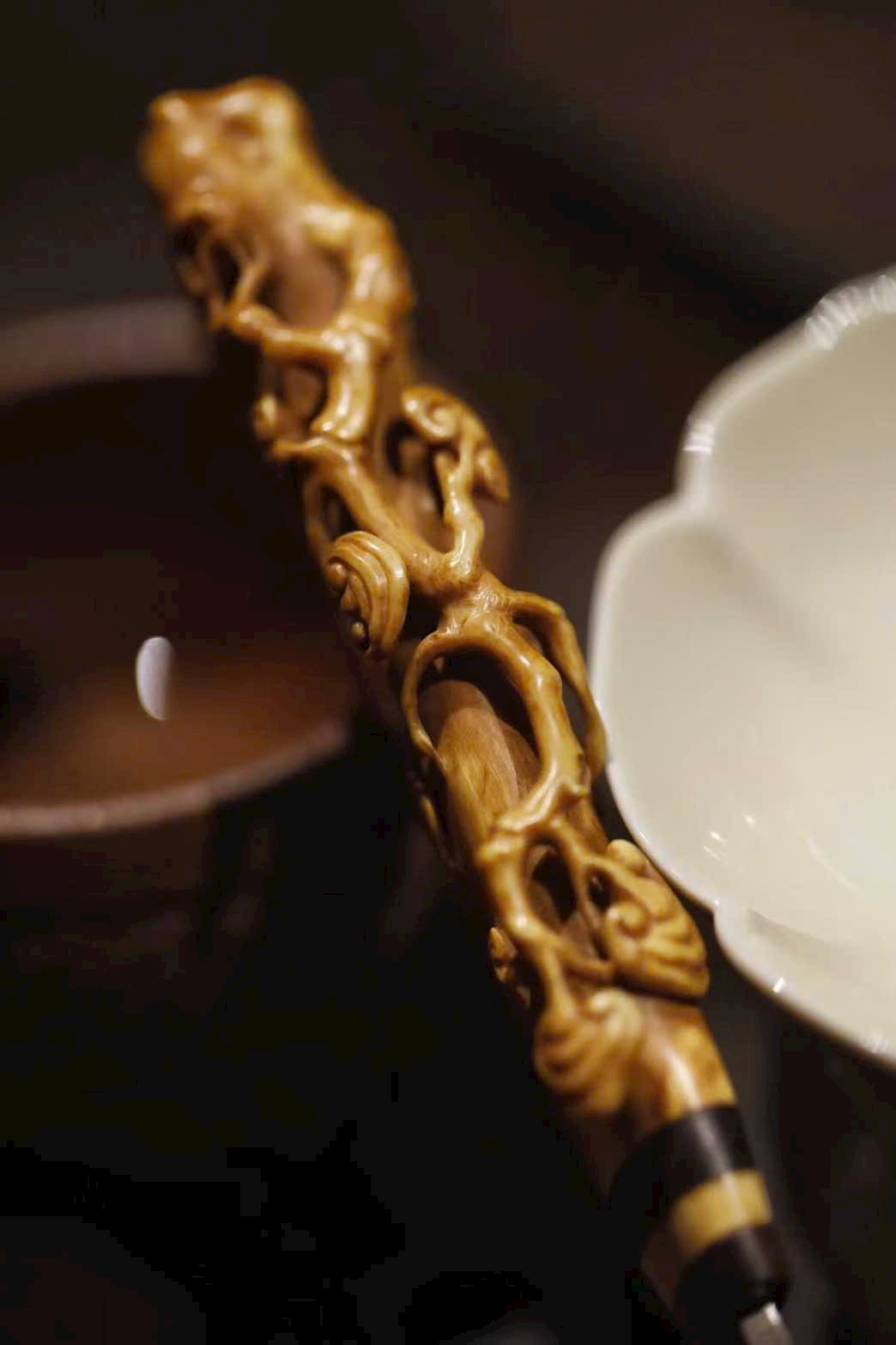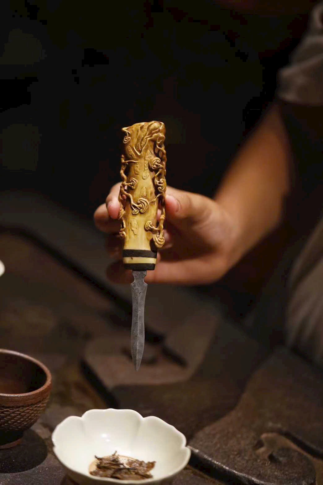Khi bày nơi trà án, dao trà không chỉ hữu dụng mà còn mang vẻ đẹp tao nhã, thể hiện tinh thần thủ công tinh xảo và mỹ học truyền thống Trung Hoa, ẩn chứa ý nghĩa cát tường, trường thọ như linh chi.