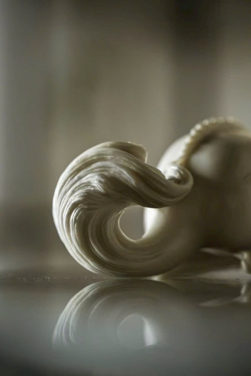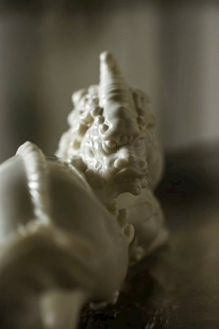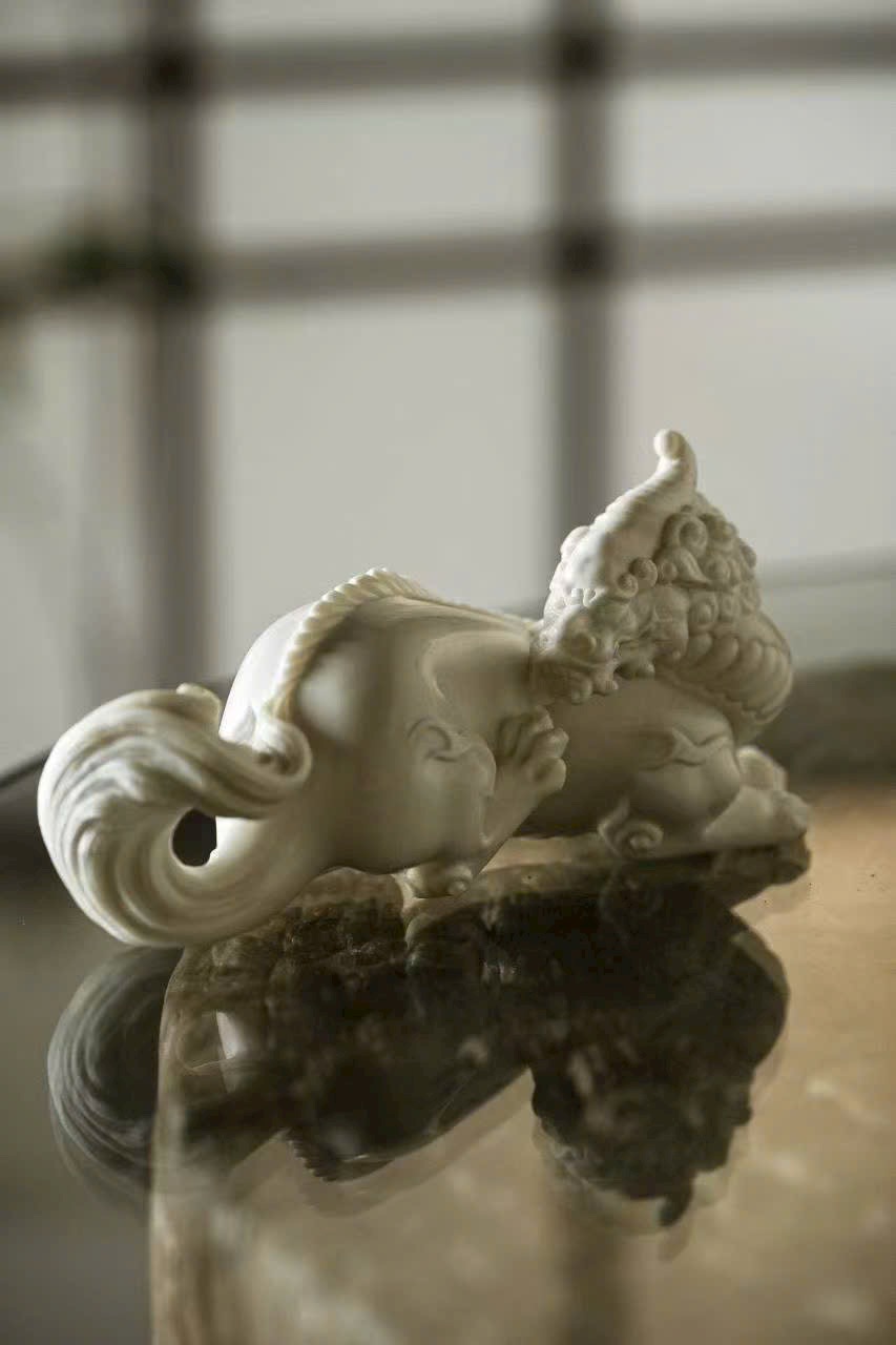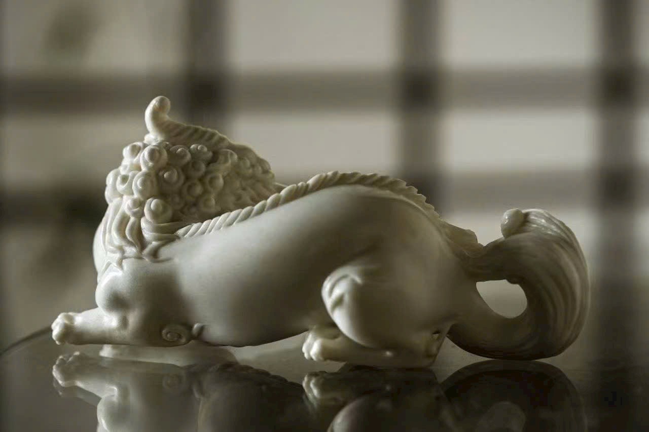 Đầu thú oai nghiêm, dáng nằm vững chãi, không giận mà vẫn toát khí uy quyền. Thân hình cân đối, khỏe mạnh, khoác lên ngọn lửa tượng trưng cho năng lượng và linh lực. Chất liệu trong sáng, tinh khiết – vừa có giá trị sưu tầm, vừa là vật phẩm trang trí tao nhã nơi bàn trà, án thư.