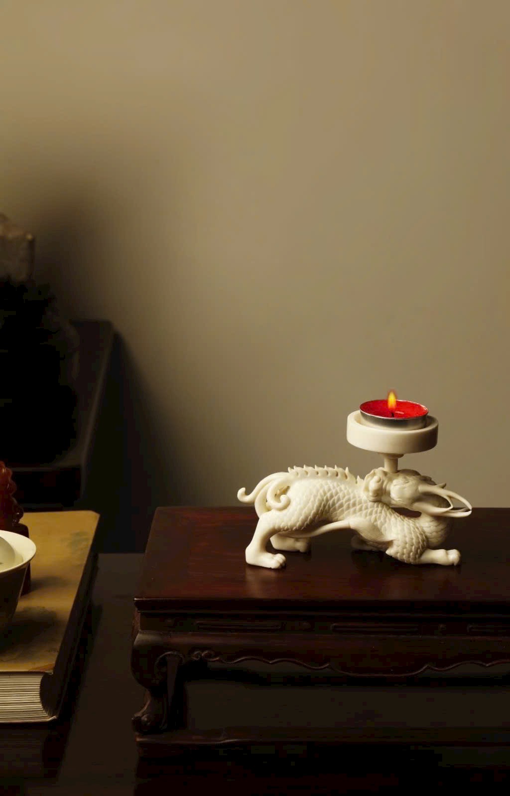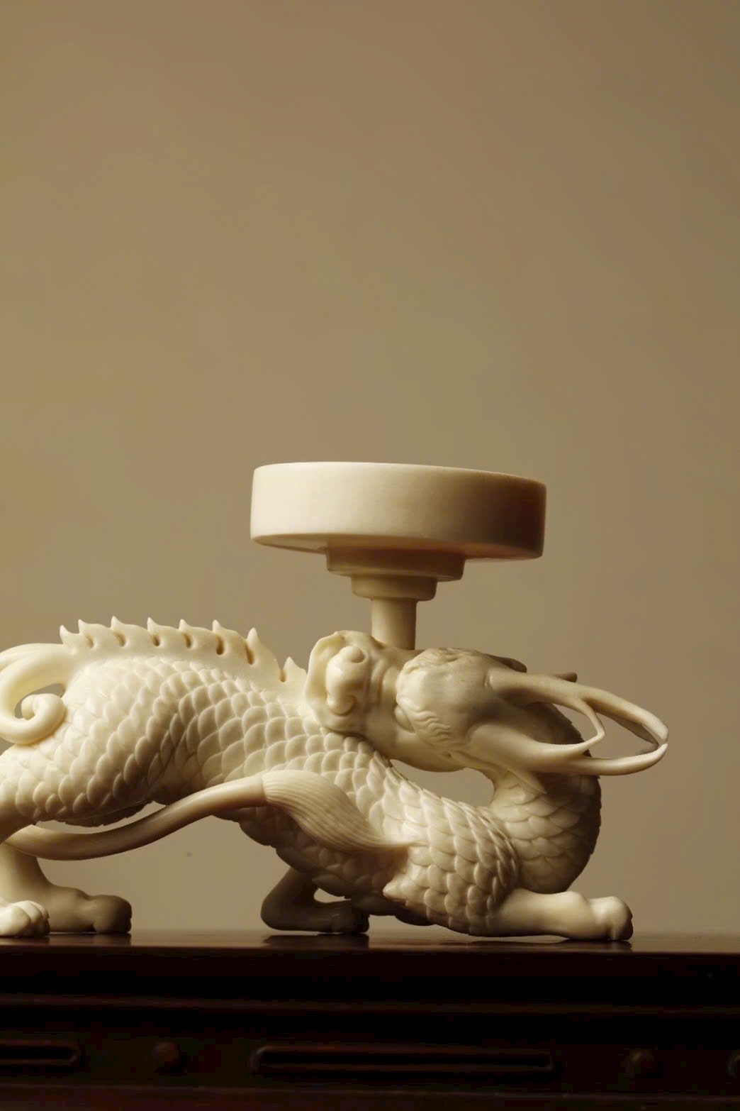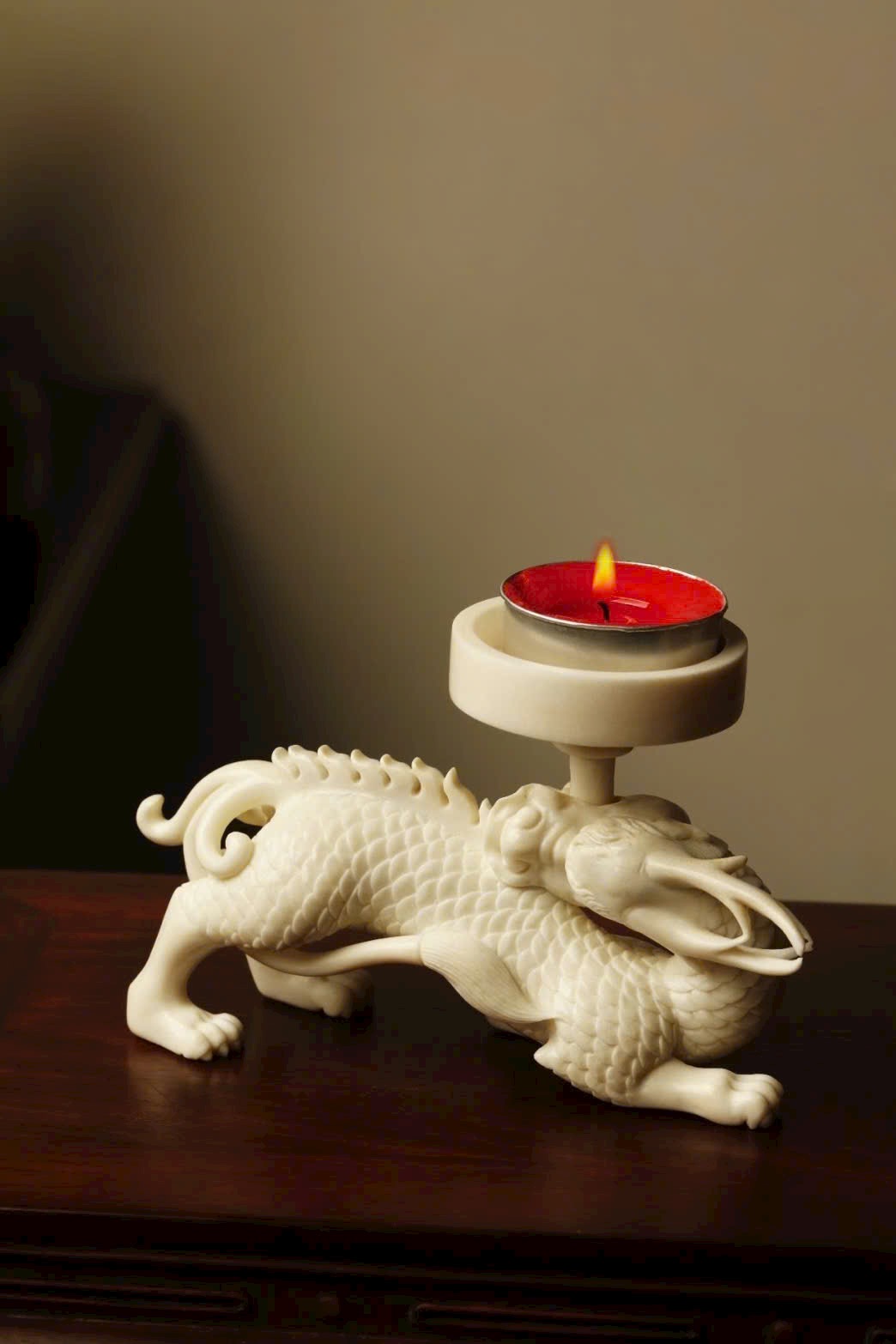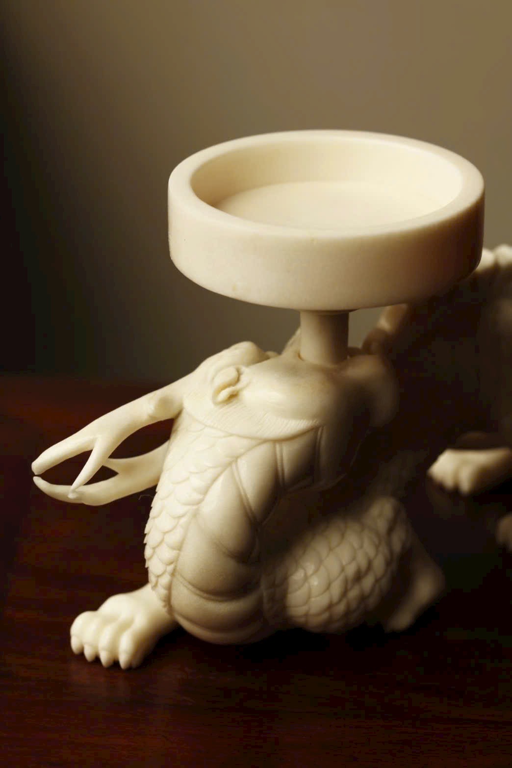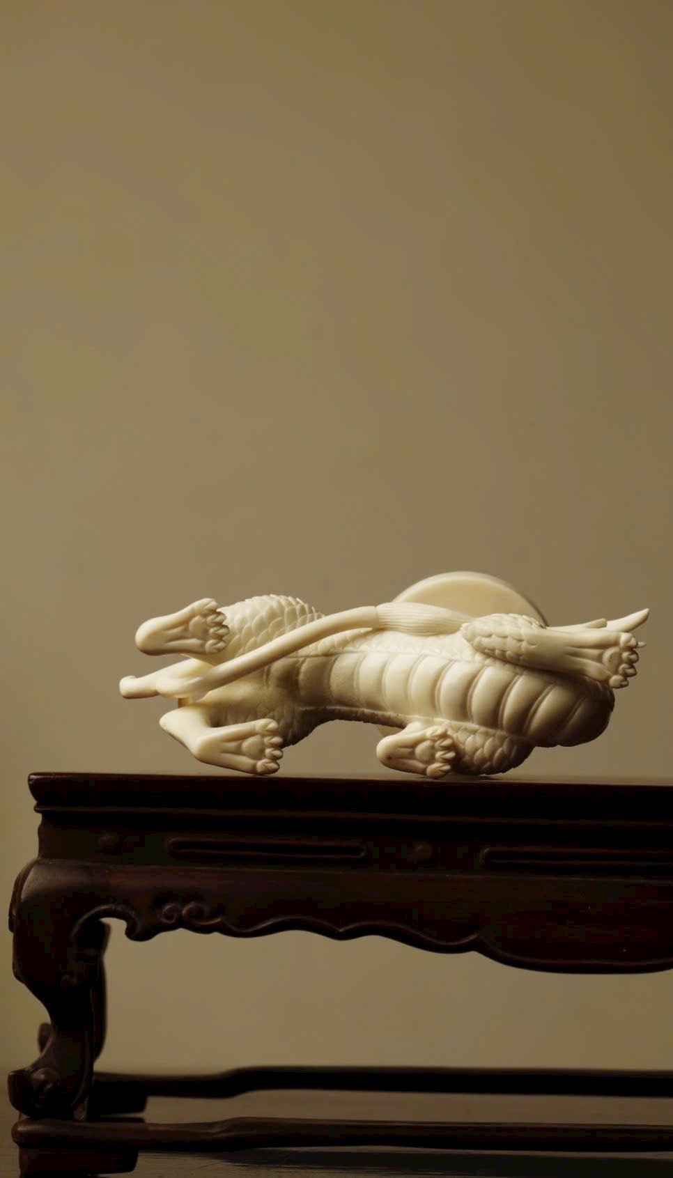 Toàn bộ được đục tay từ một khối sừng hươu nguyên, tạo hình liên mạch mượt mà, kỹ thuật điêu luyện, thần thái sinh động. Thích hợp bày bàn trà, kệ trầm, tạo không gian thanh nhã và trang nhã.