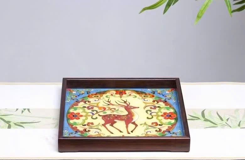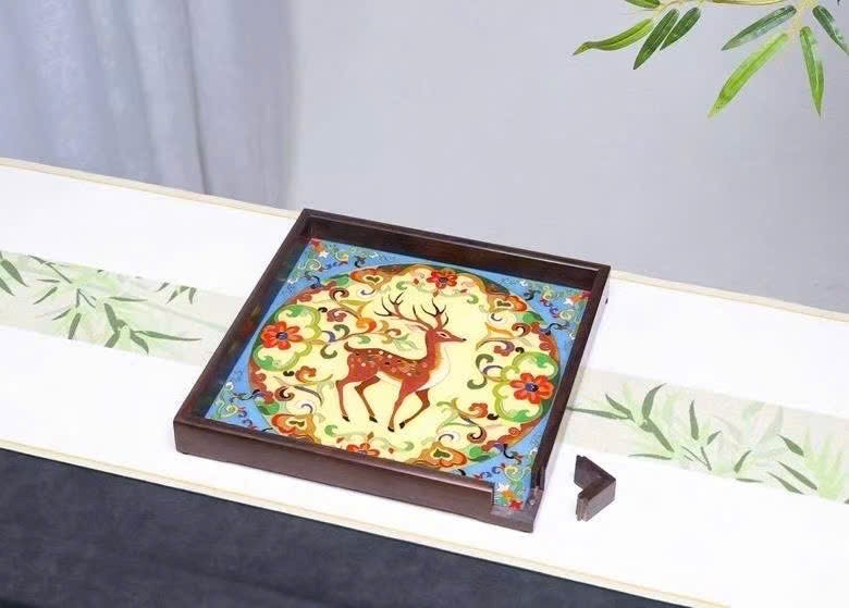 Đặc điểm: Chế tác tinh xảo từ gỗ trắc Lào theo kỹ thuật mộng ghép, dáng vuông vức với đường nét trơn tru. Có thể dùng làm khay văn phòng, vừa thanh nhã vừa trang nghiêm, kết hợp giá trị thưởng ngoạn và thực dụng.