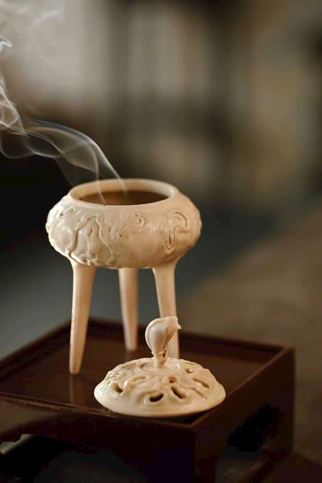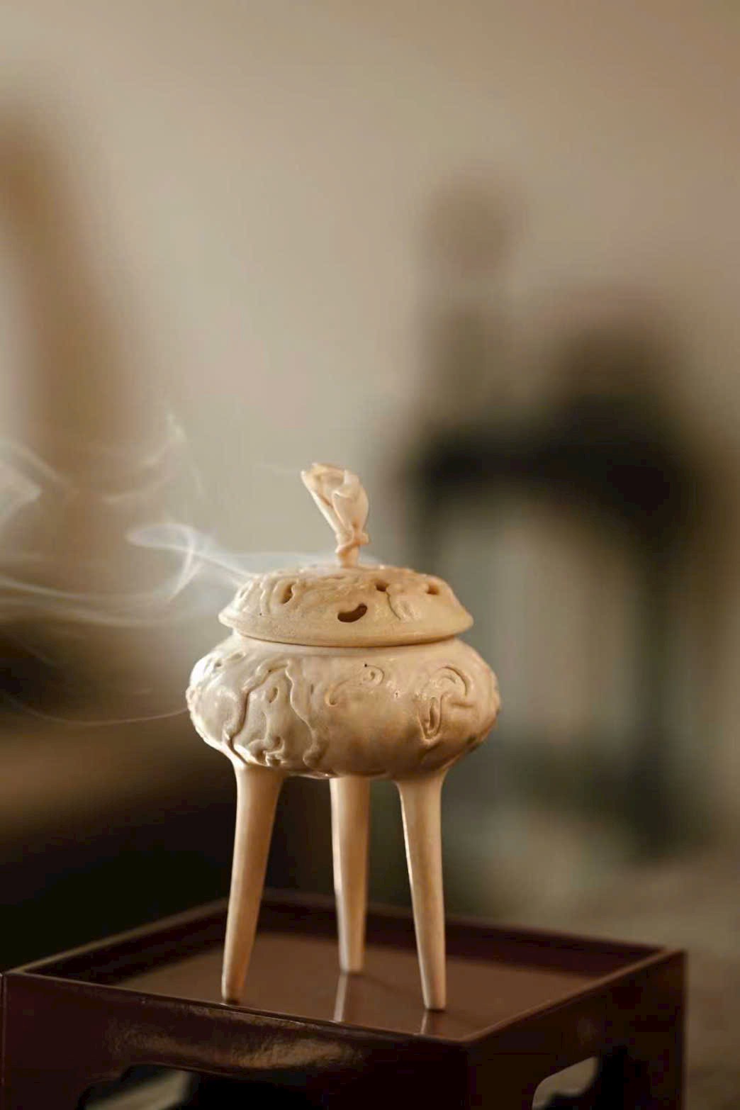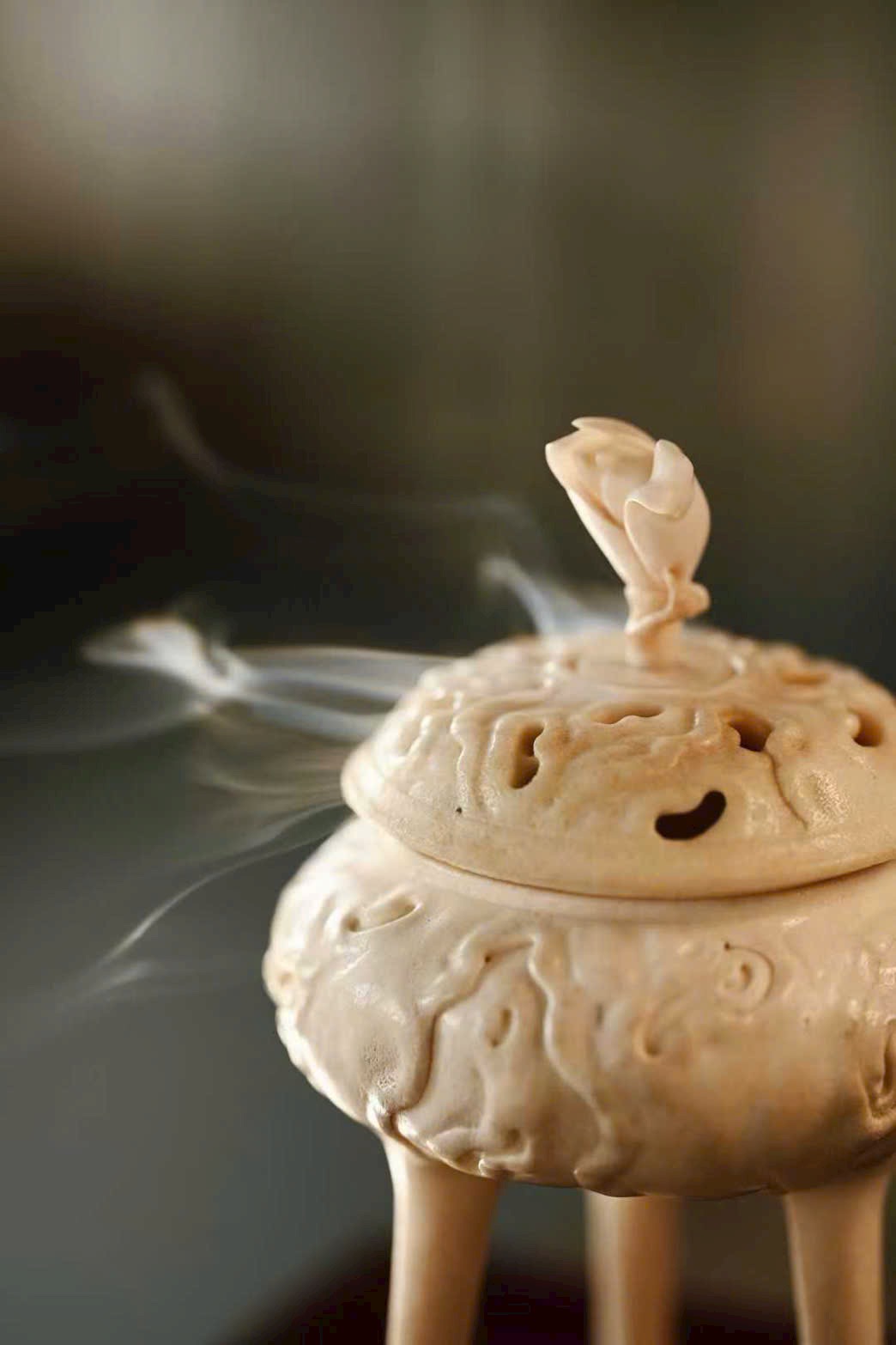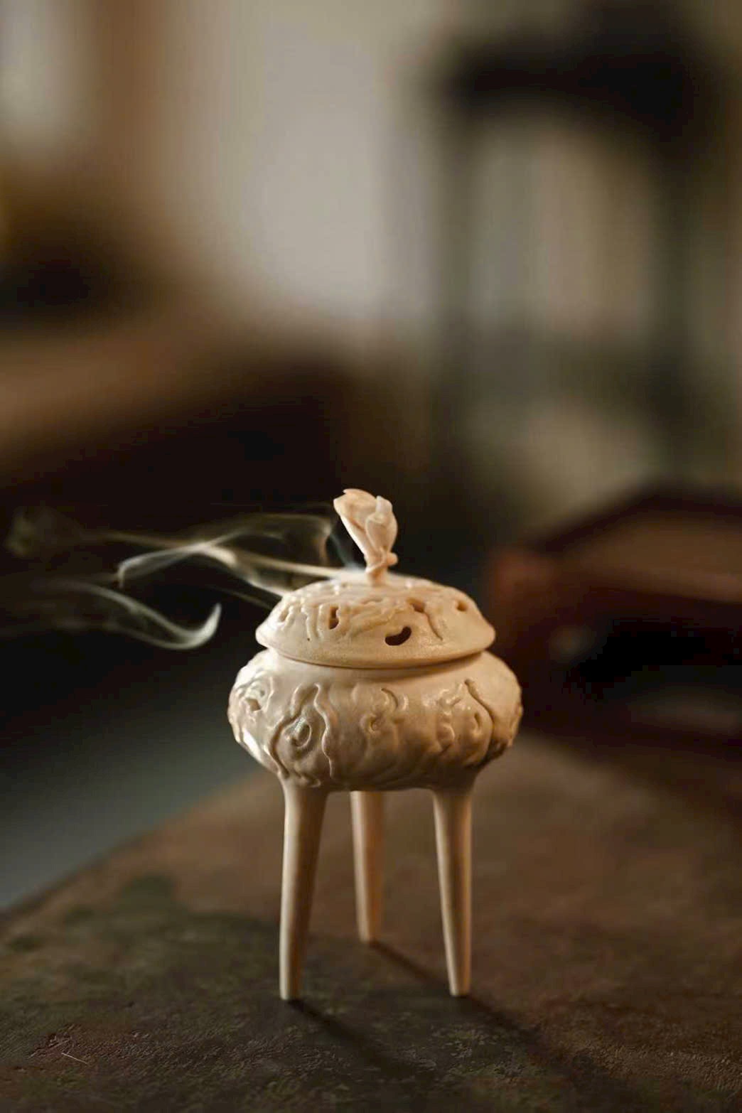 Điêu khắc sinh động, thân dưới đỡ bằng ba chân, hình dáng giản đơn mà có thần vận. Khi đốt hương, làn khói mảnh bay lên, cuộn xoáy rồi bốc cao, quấn quýt không dứt, vừa thực vừa hư, tựa như chốn tiên cảnh.