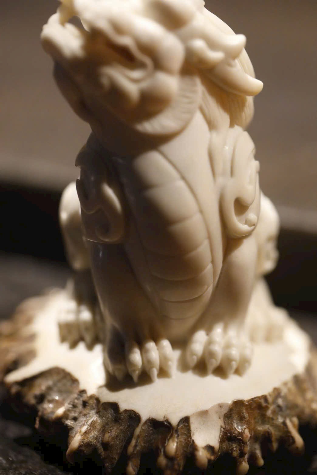 • Chất liệu: Sừng hươu khắc hình Tỳ Hưu