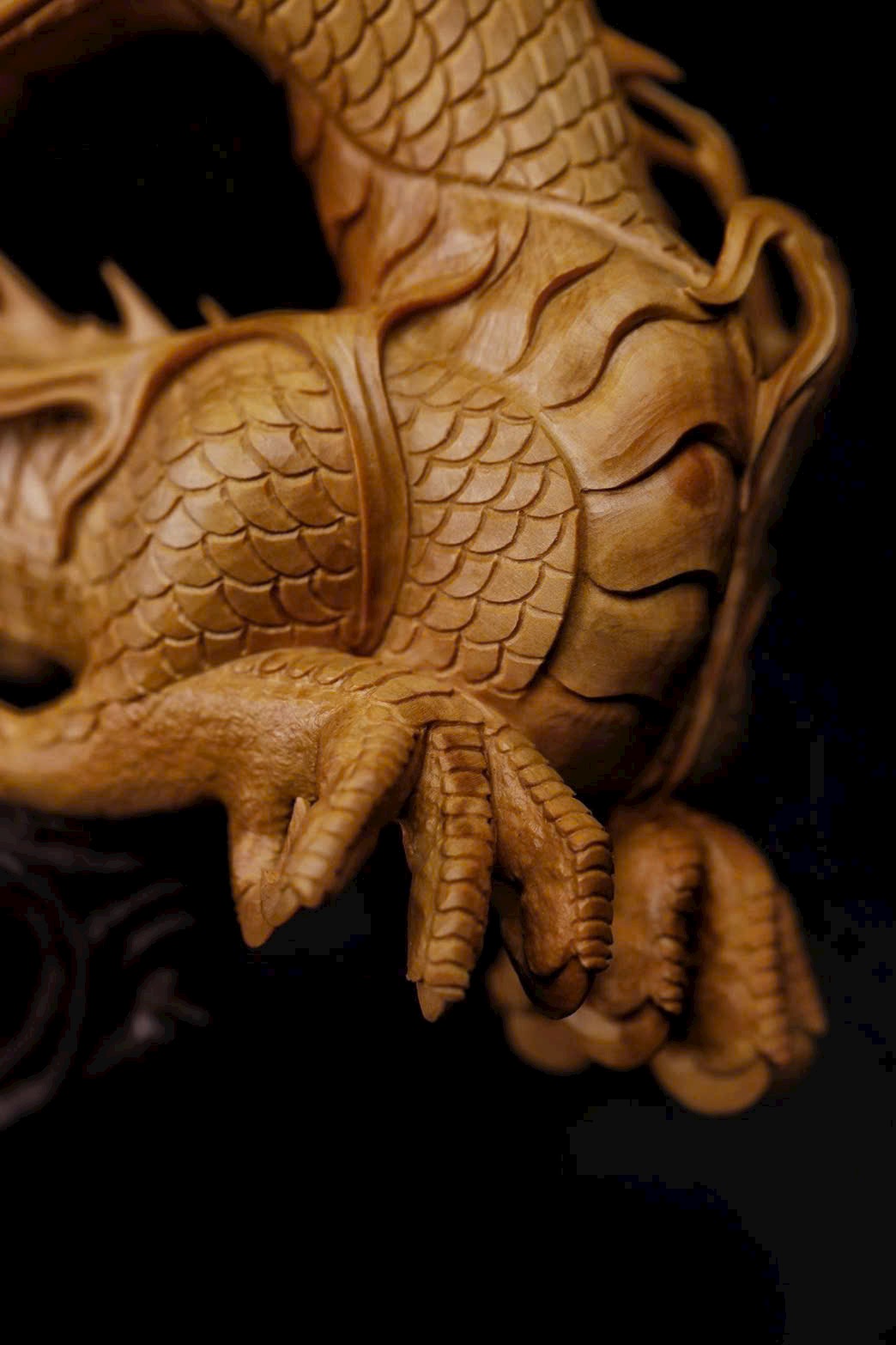 Chất liệu: Hoàng dương mộc nguyên khối, chạm khắc thủ công kỹ thuật khoét rỗng