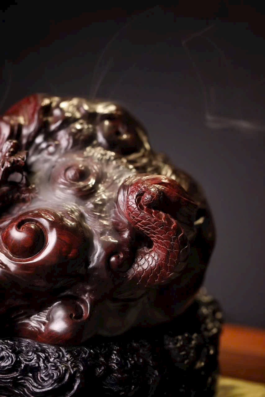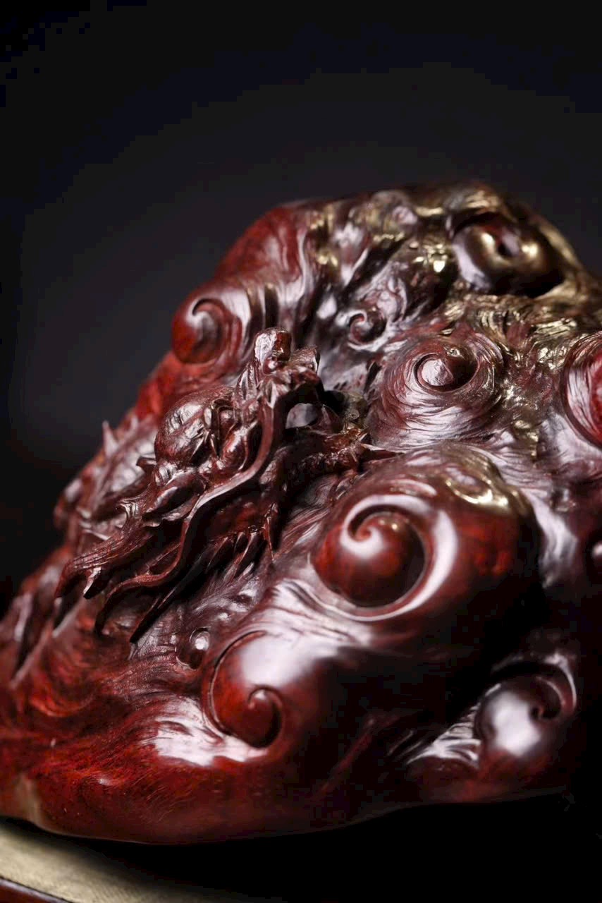 Chế tác nguyên khối, điêu khắc xuyên suốt, tạo hình đơn giản nhưng khí thế trang nghiêm. Đường dao dứt khoát, nét chạm sắc sảo, khắc họa hình tượng long hưng cường tráng và uy nghiêm, thần thái sinh động