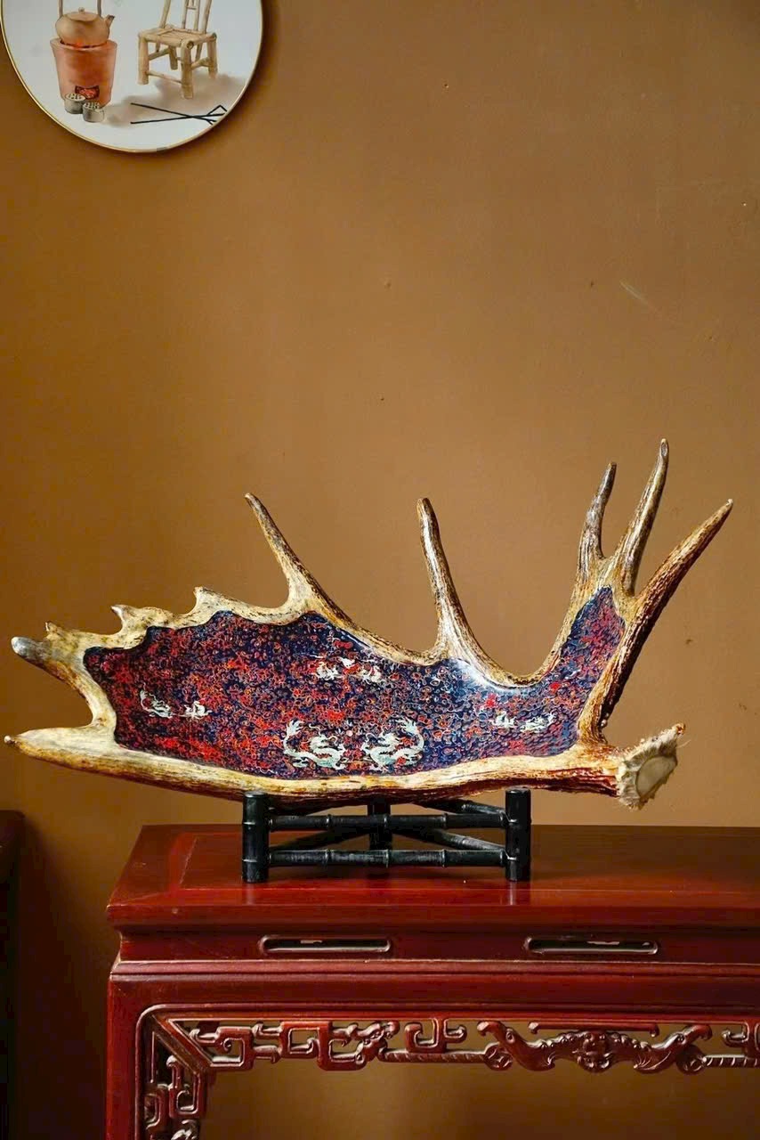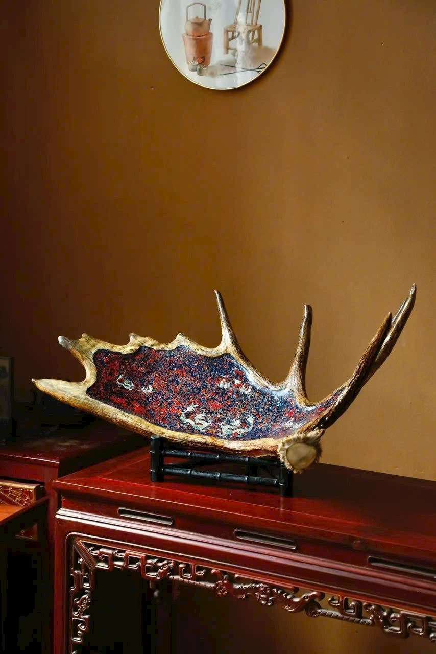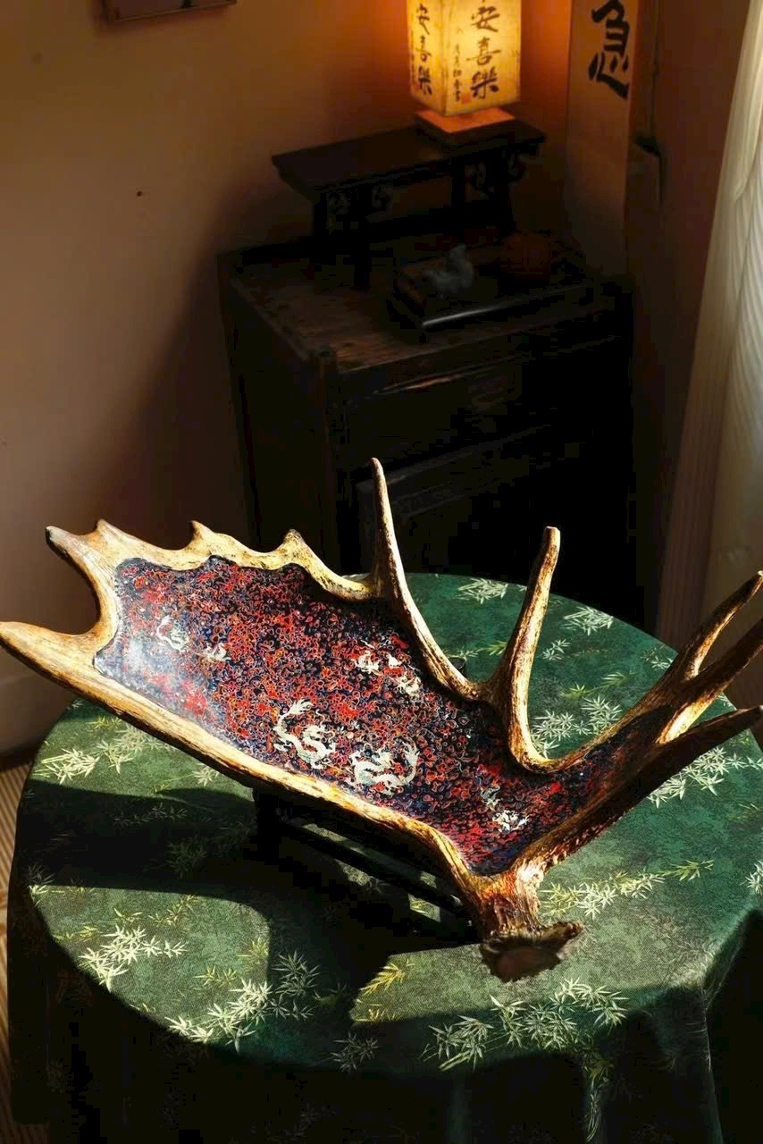 🌿 Đĩa trái cây cỡ lớn “Long Phụng Trình Tường” bằng sơn mài sừng hươu