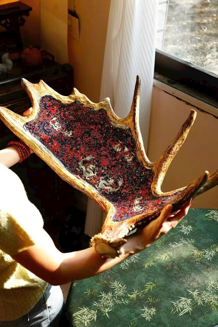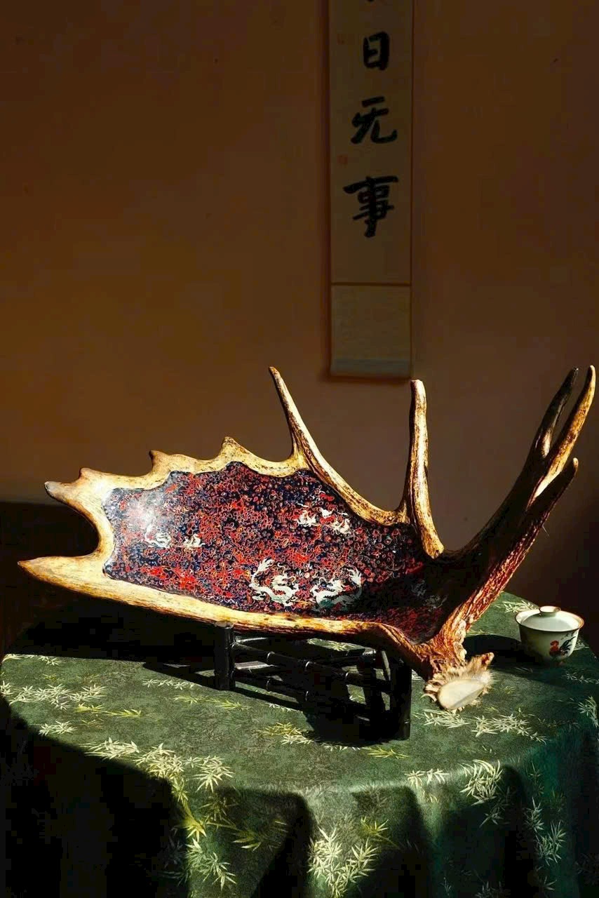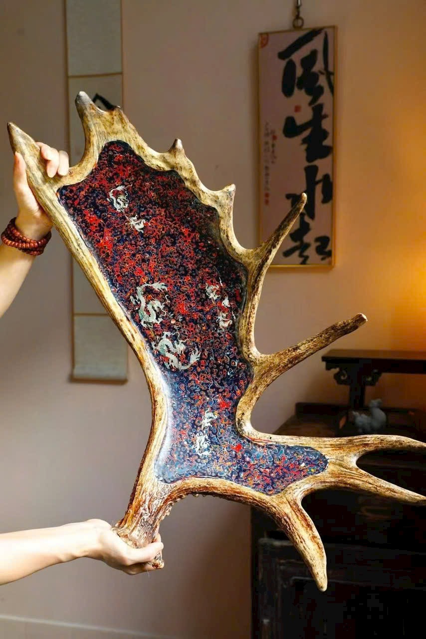 🌿 Đĩa trái cây cỡ lớn “Long Phụng Trình Tường” bằng sơn mài sừng hươu