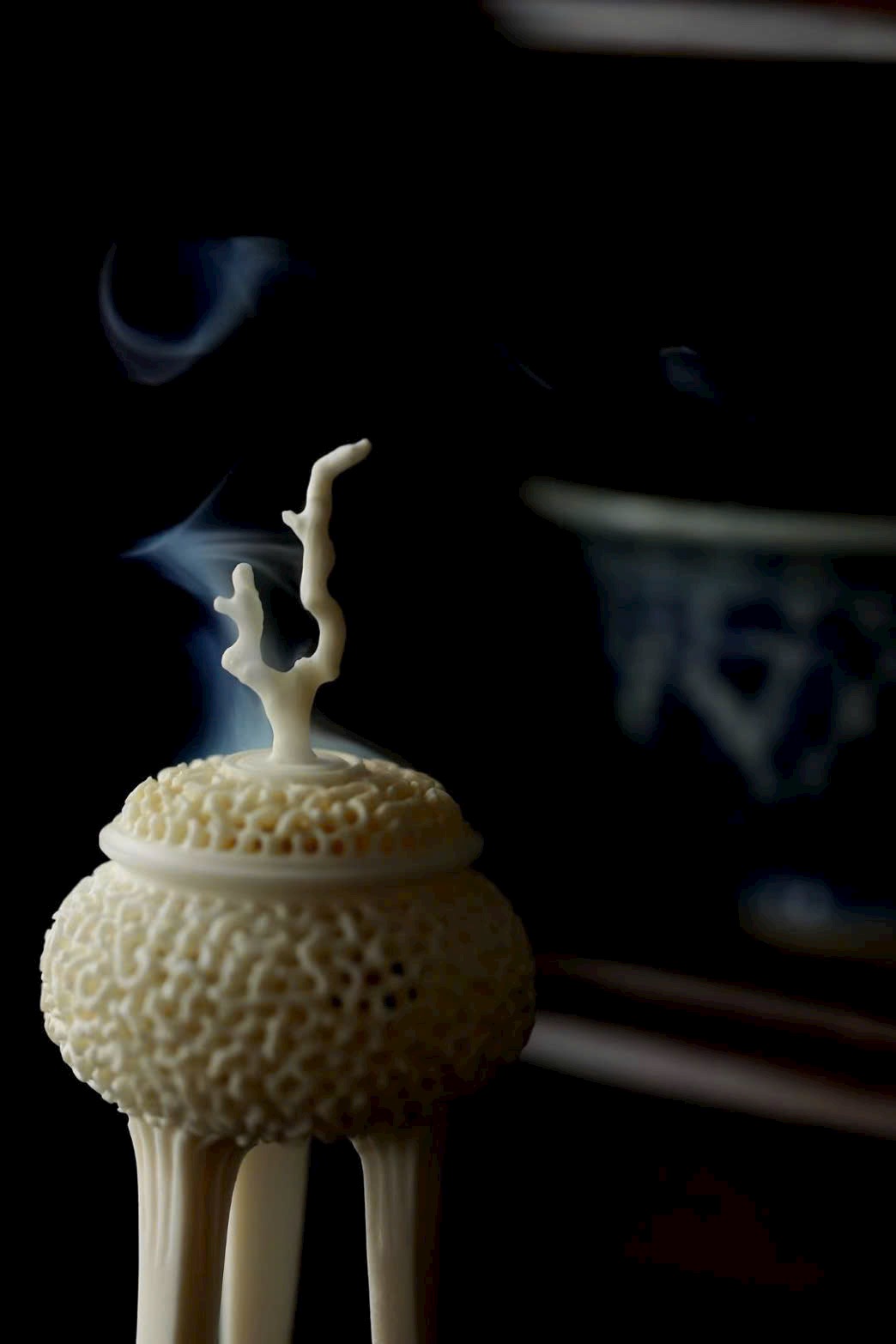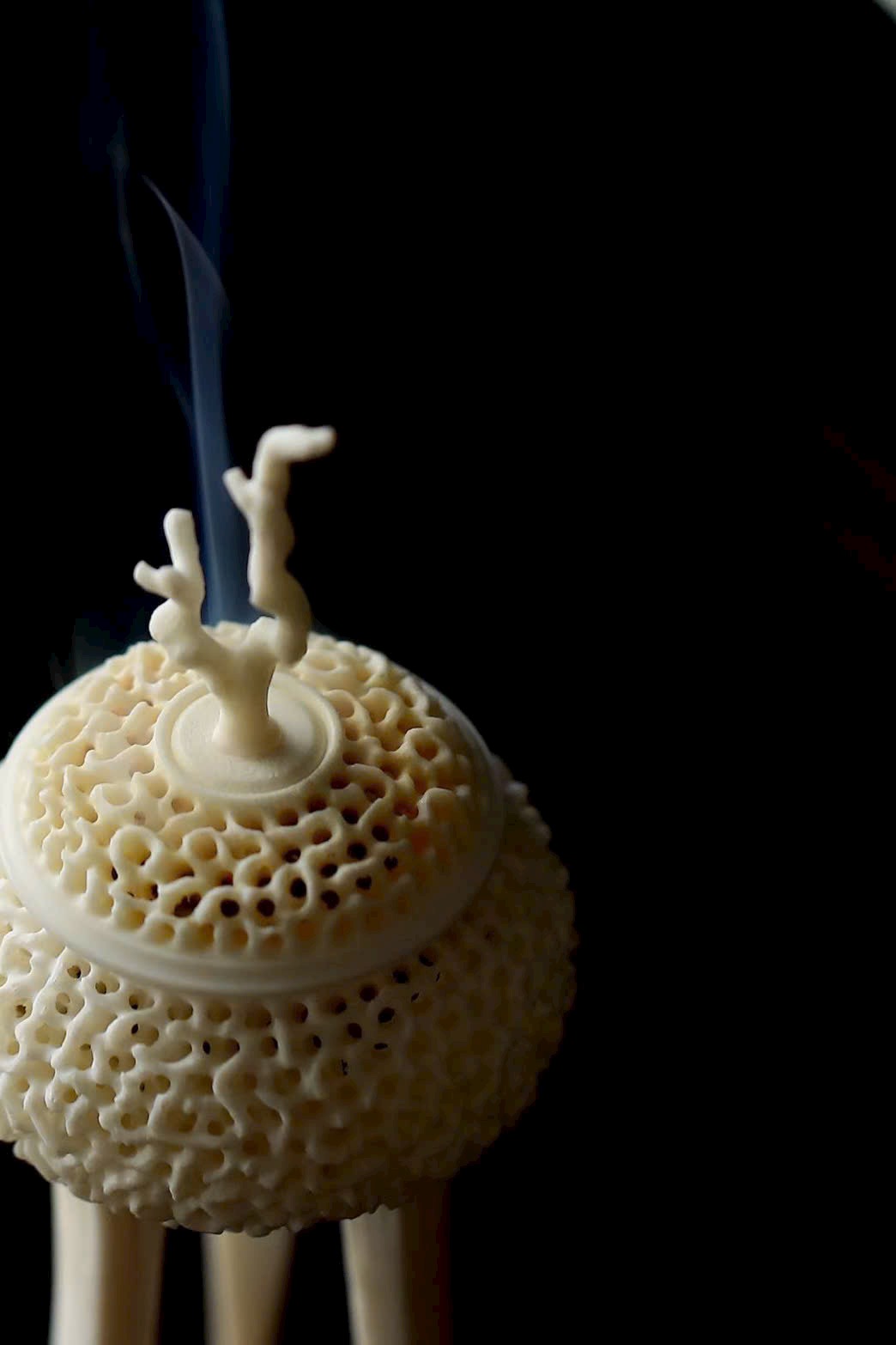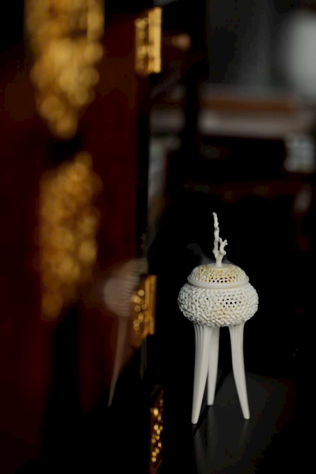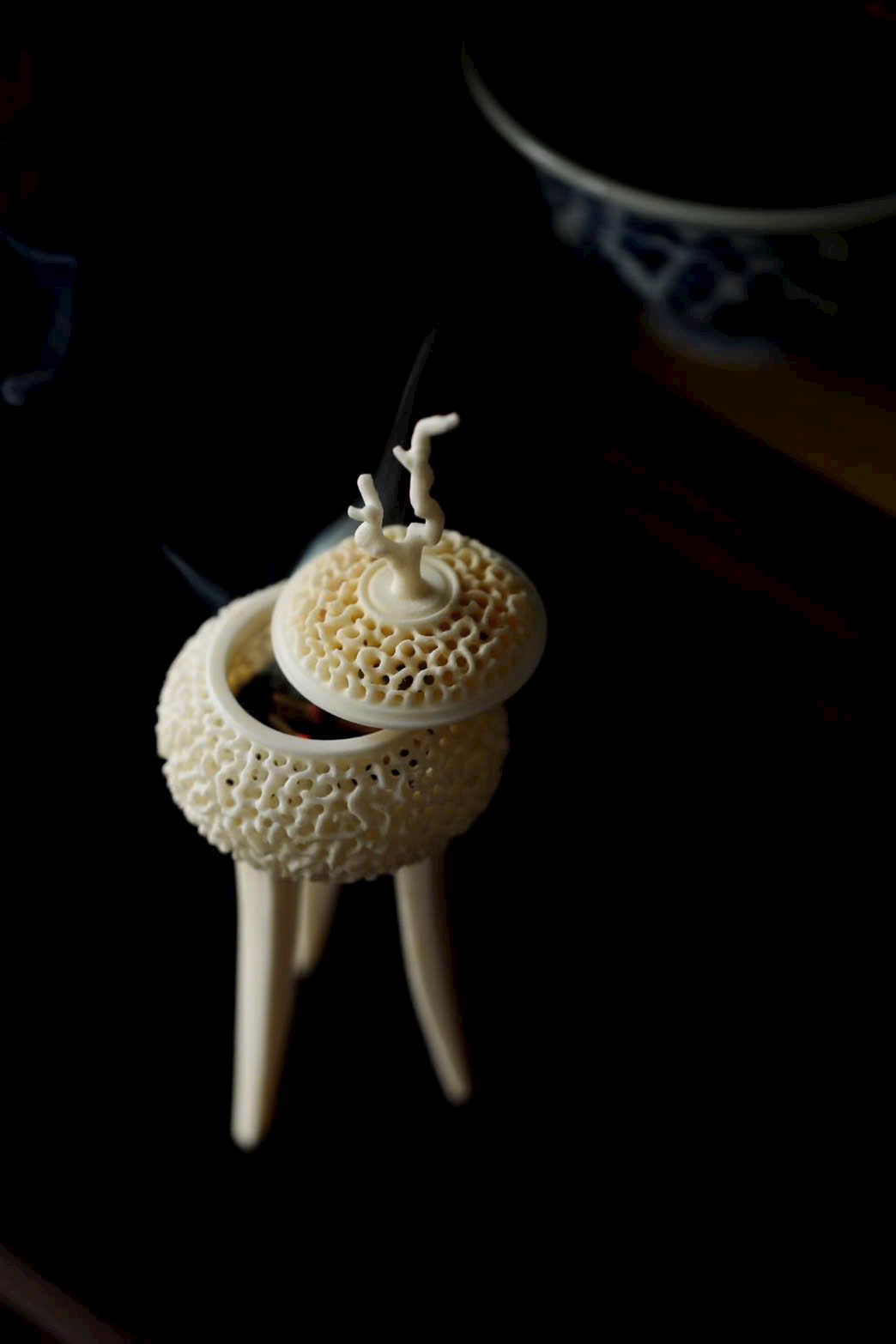 Thiết kế ba chân vững chãi, chạm khắc thông phong tinh vi, toàn thân điêu khắc dày đặc nhưng hài hòa, khói hương bảng lảng, gợi nên cảnh giới tĩnh lặng, rũ bỏ bụi trần.