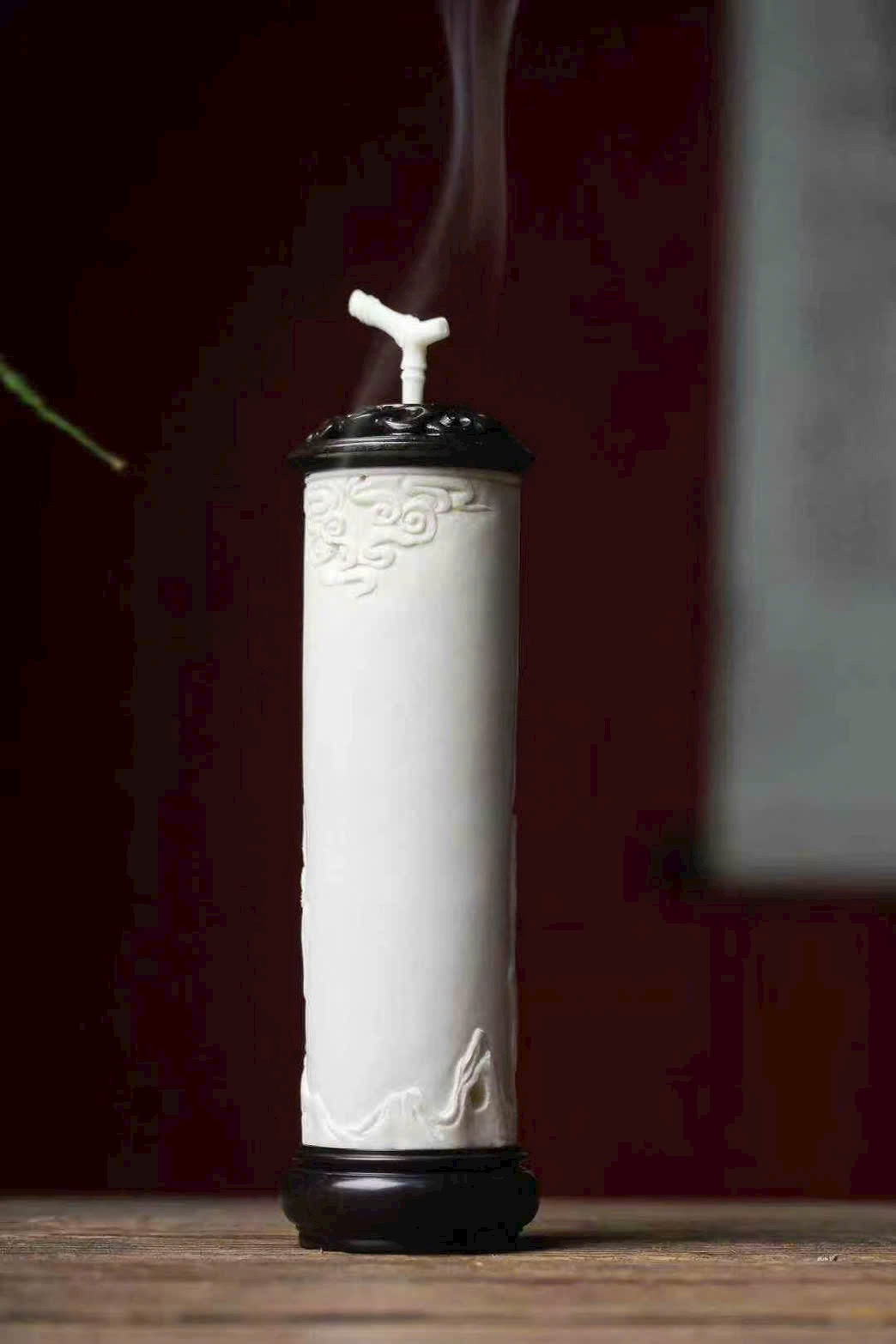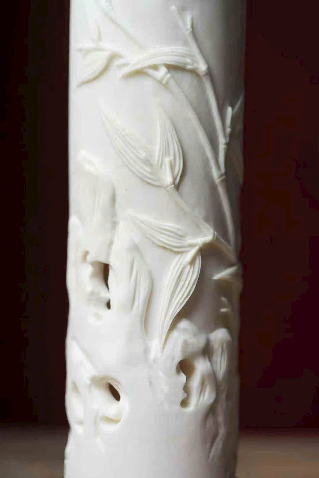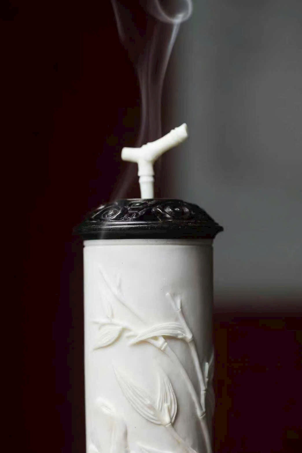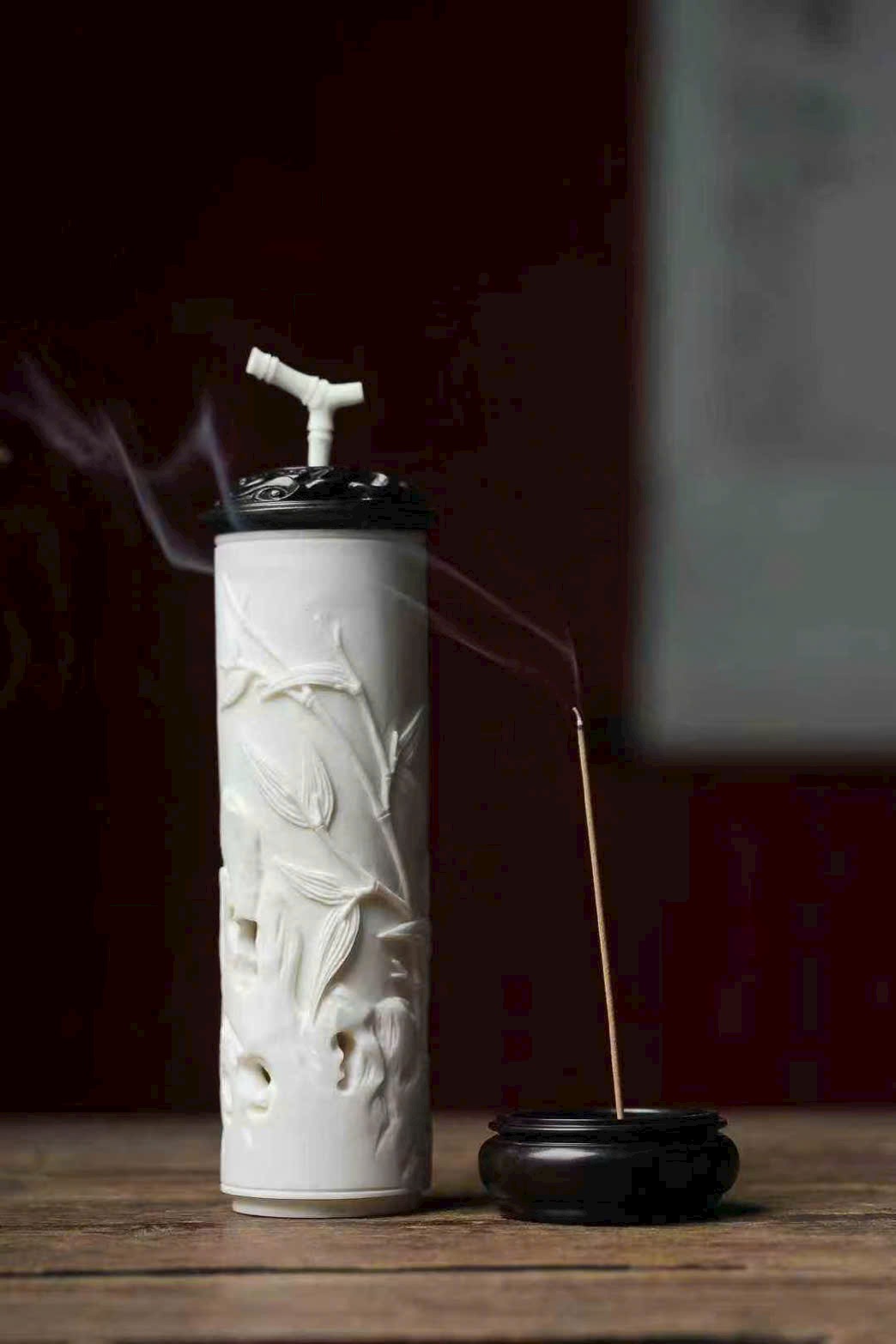 Nguyên khối gạc hươu tạo hình, bề mặt cong nổi khắc phù điêu, chạm họa tiết trúc ngọc “từng đốt vươn cao”. Bố cục thoáng đạt, thanh nhã tao nhã, ẩn chứa ý nghĩa từng bước thăng tiến, cát tường như ý, là nhã vật trong hương sự.
