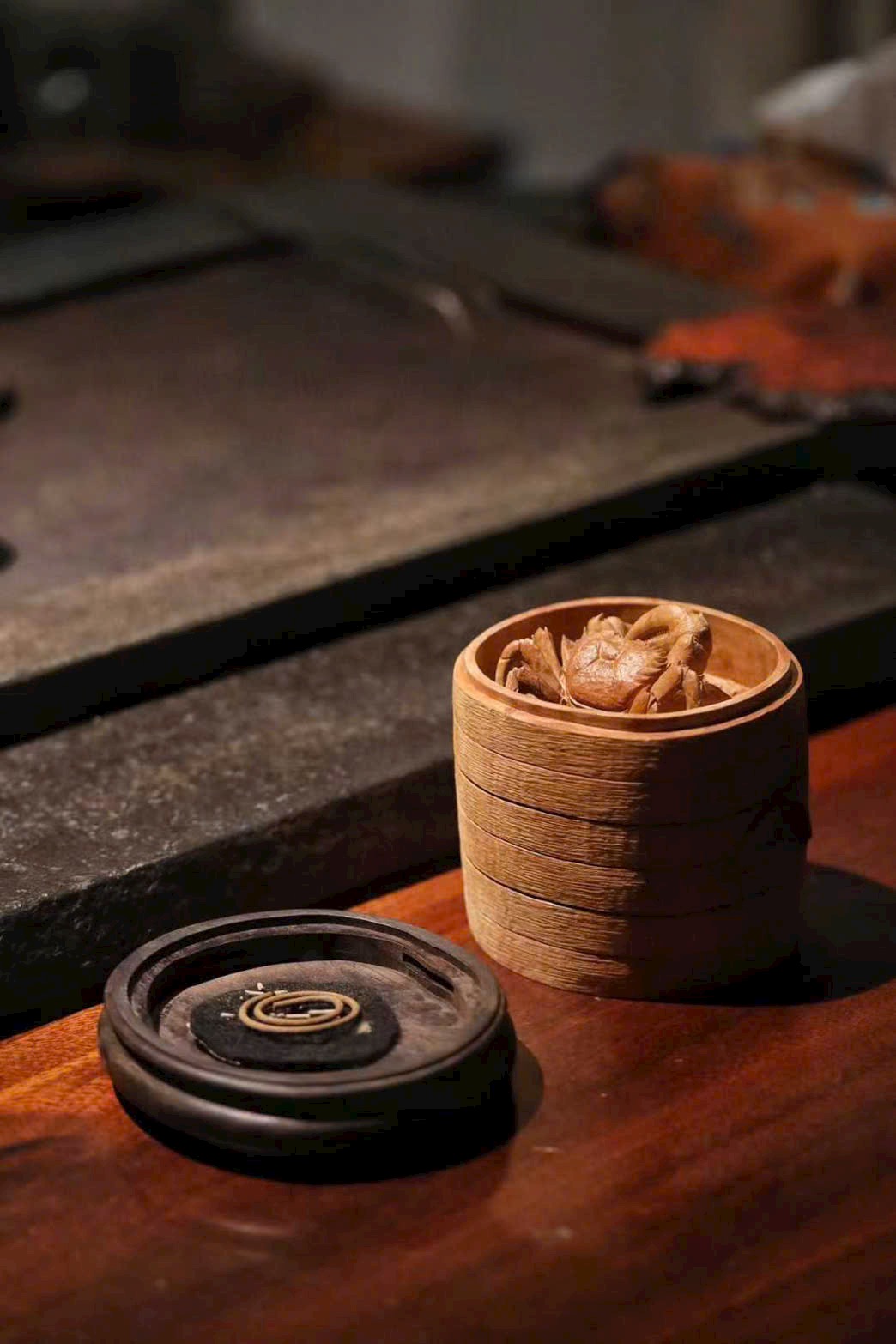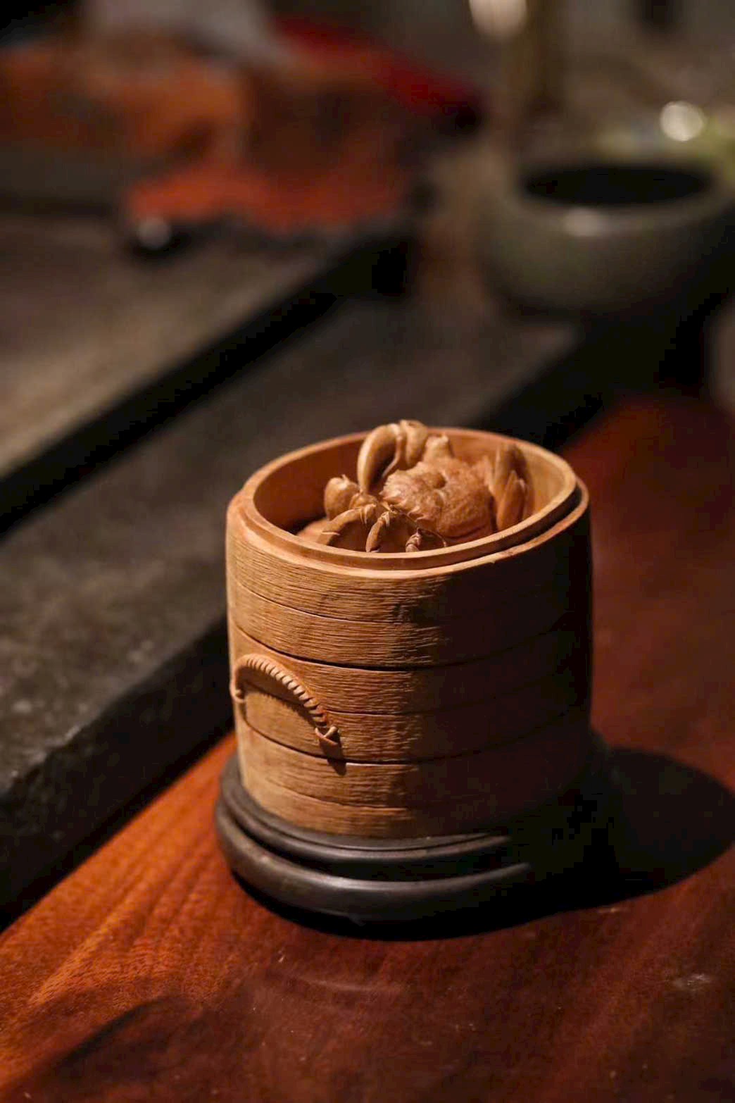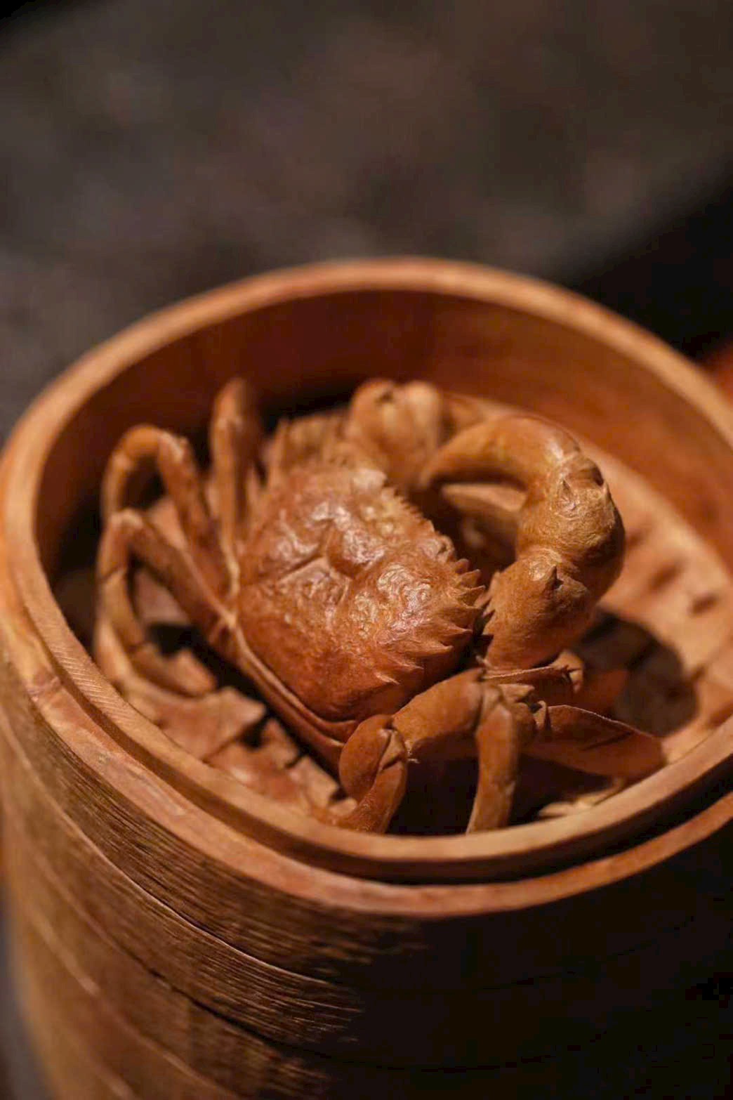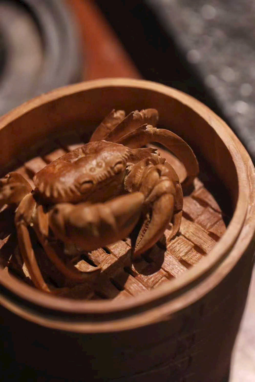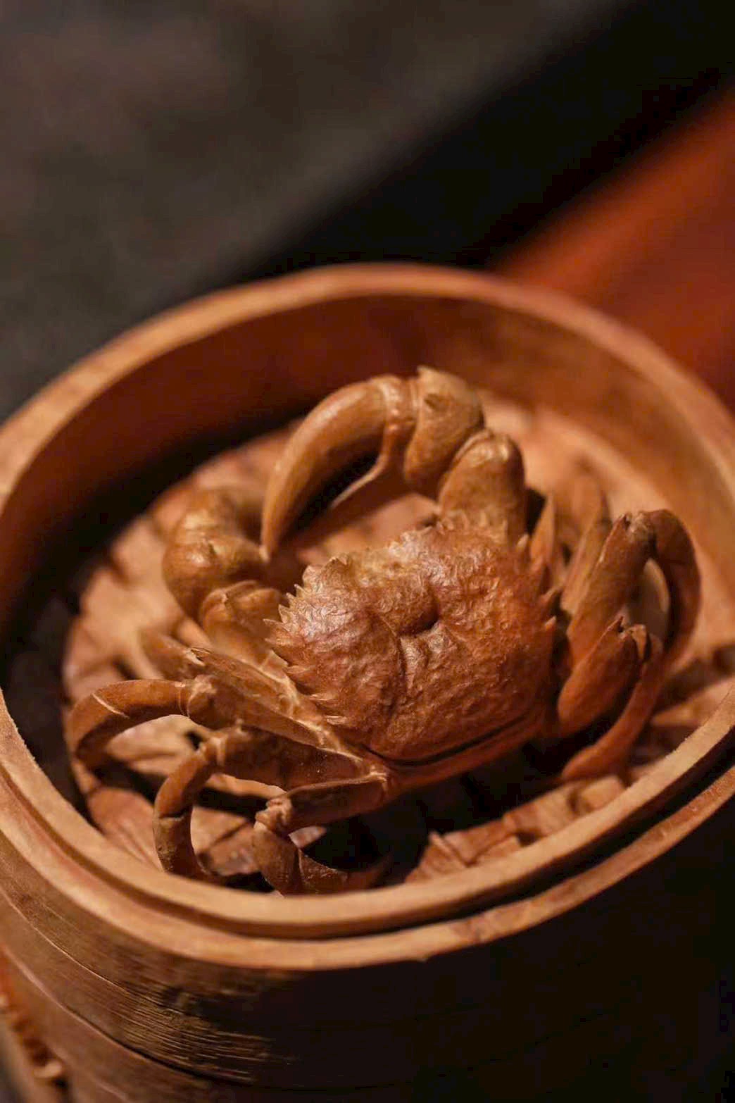 Chạm rỗng từ gỗ đàn hương ấn độ, tạo hình cua với tám chân – biểu trưng chiêu tài bốn phương, phú quý khắp nơi.