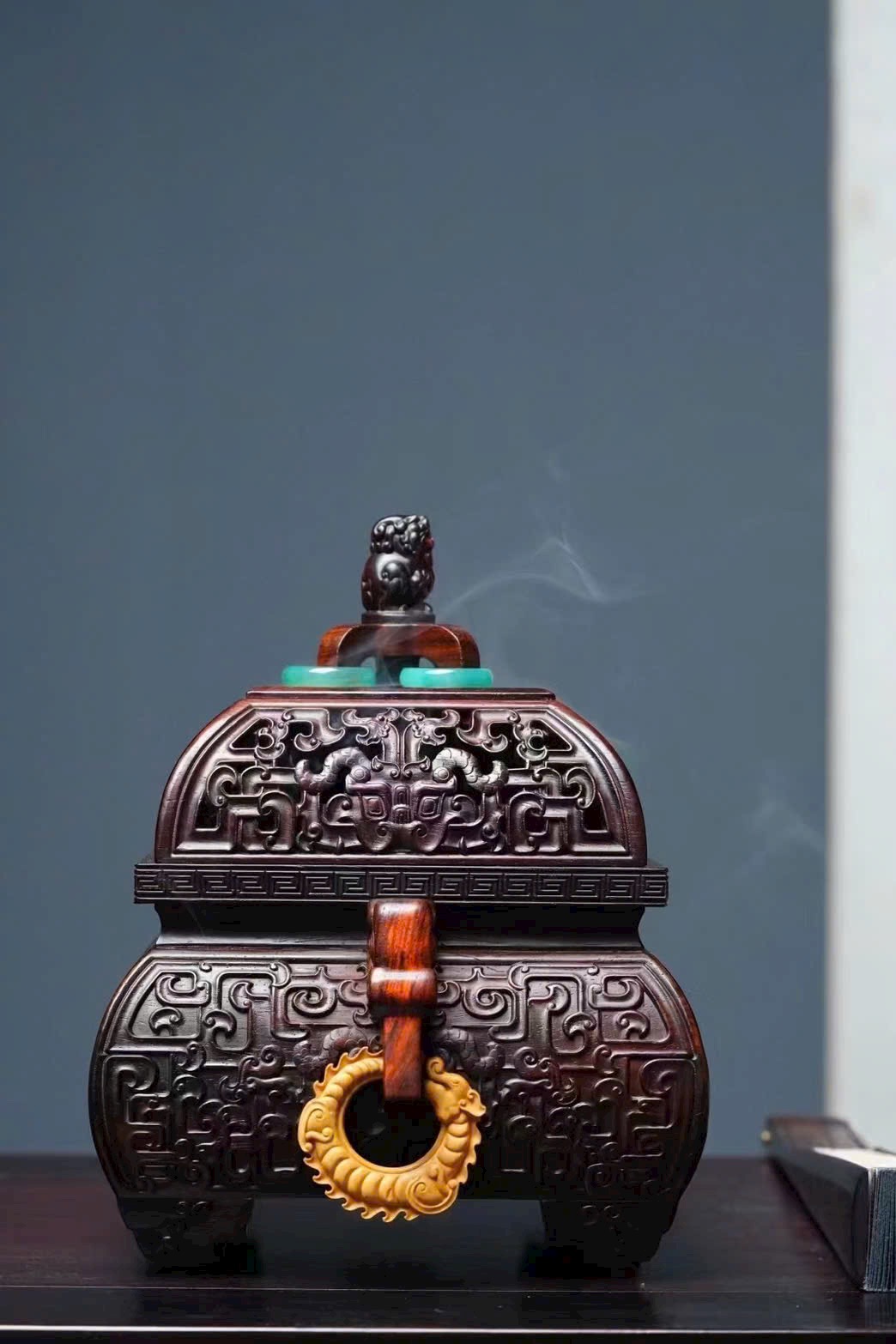 Chế tác từ gỗ trắc, dáng lư trang nhã, khí chất trầm ổn, thích hợp trưng bày thư phòng hoặc dùng làm đồ sưu tầm cổ điển.