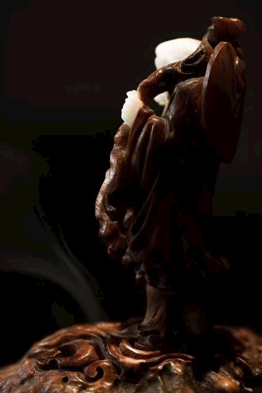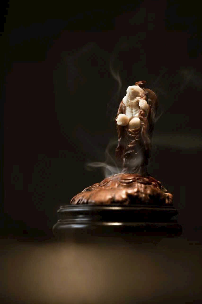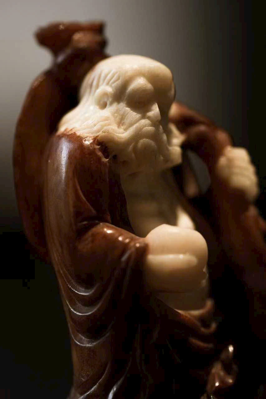 Tác phẩm thủ công toàn bộ, dùng một khối sừng hươu nguyên liệu để tạc thành, hình dáng cổ mộc độc đáo. Phong vận mang tinh thần hòa – tĩnh – thanh – tịch, như Đạt Ma an nhiên giữa núi đá và dòng suối, pháp duyên từ cảnh mà sinh.