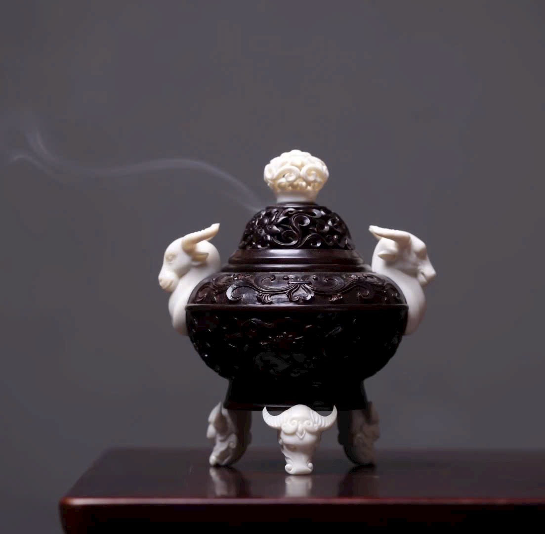 🌿 Sừng Hươu + Tiểu diệp tử đàn | Lư hương đầu trâu ba chân